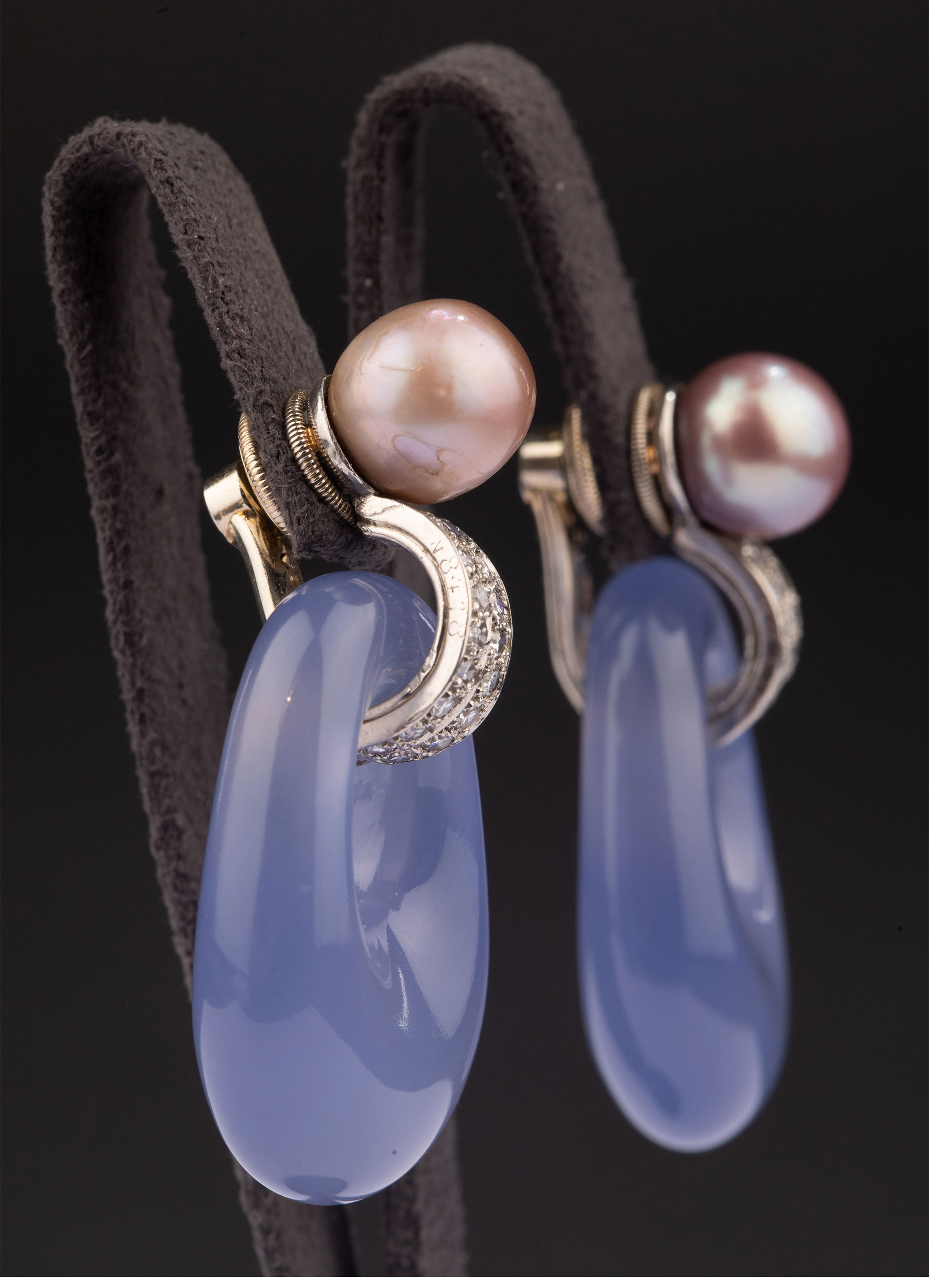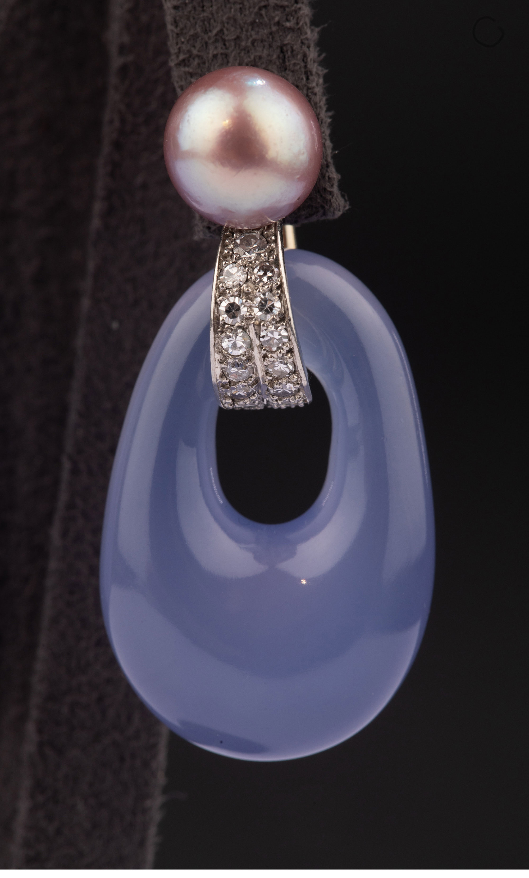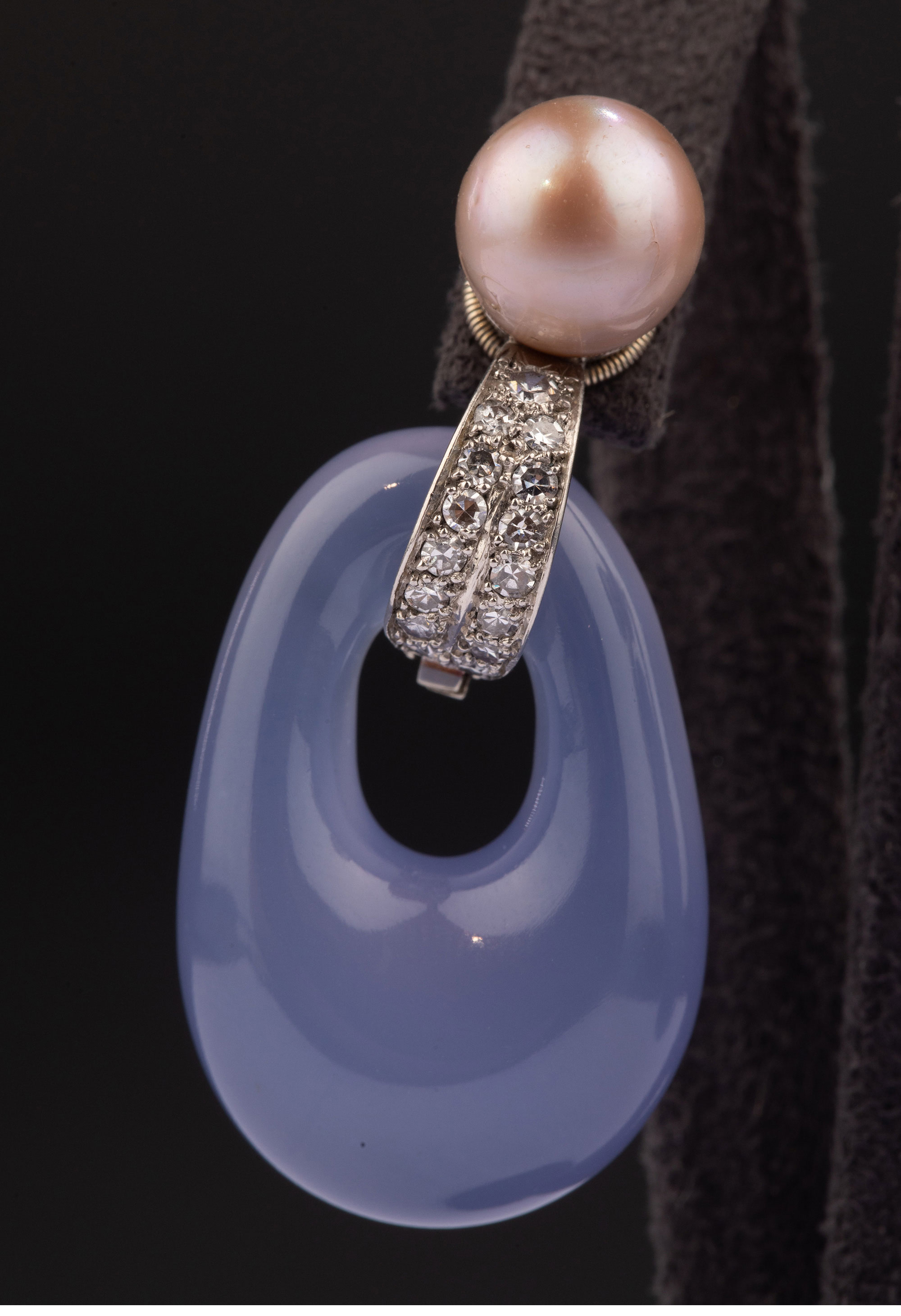 材质:天然海水珍珠,玉髓,钻石,铂金