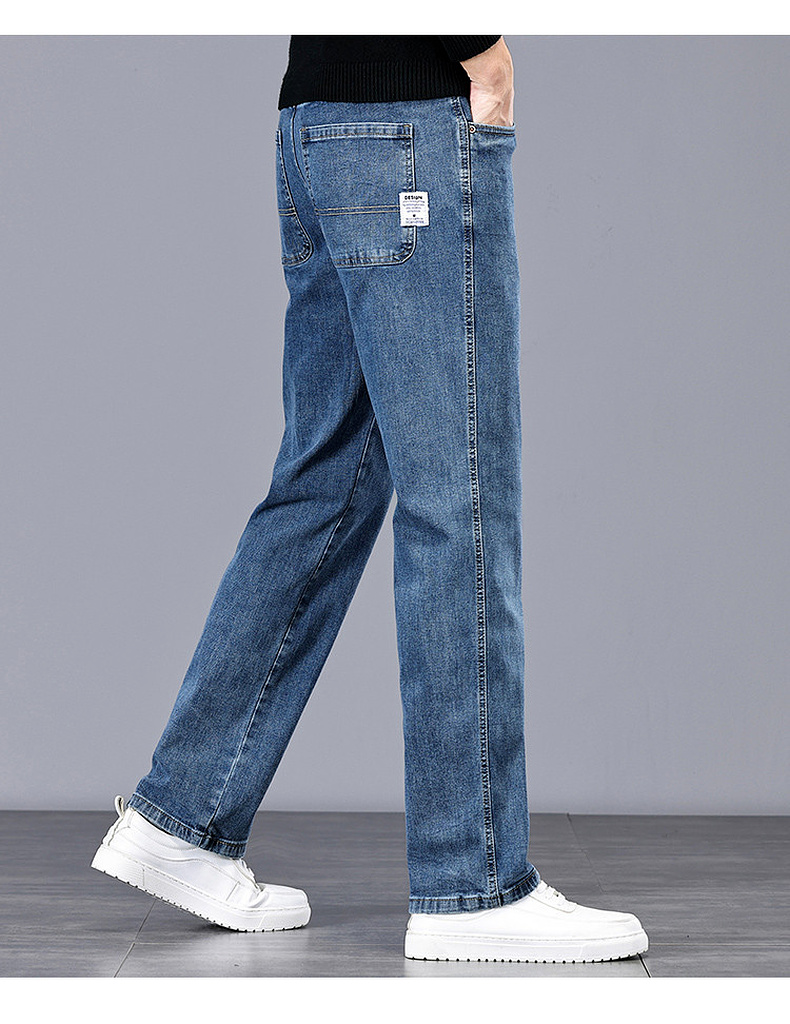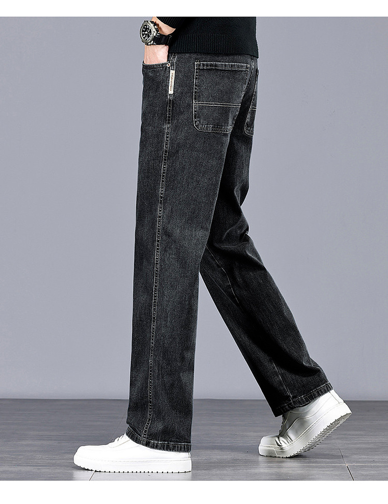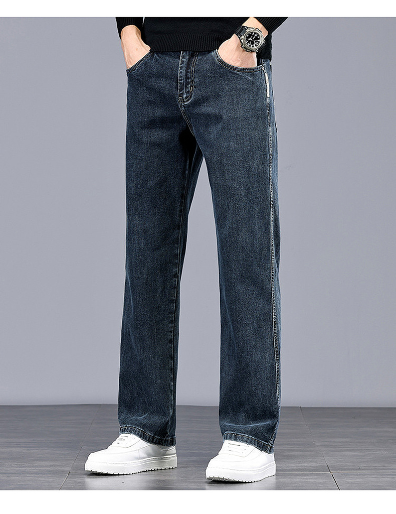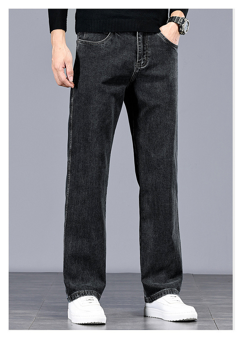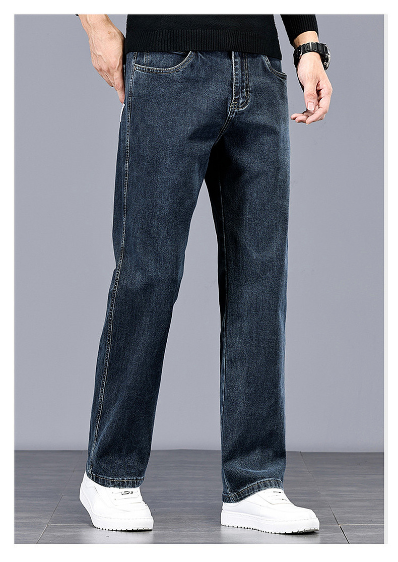 圣得西2025秋季棉质弹力宽松直筒牛仔裤男士弹力裤子时尚休闲裤