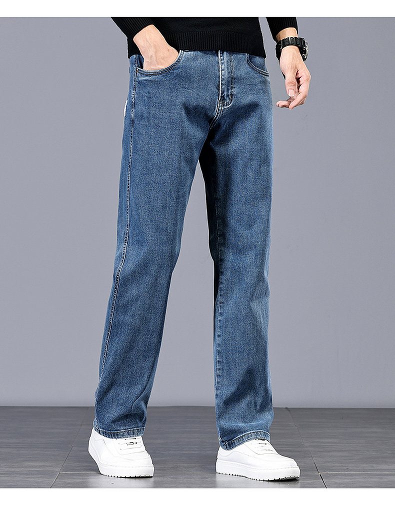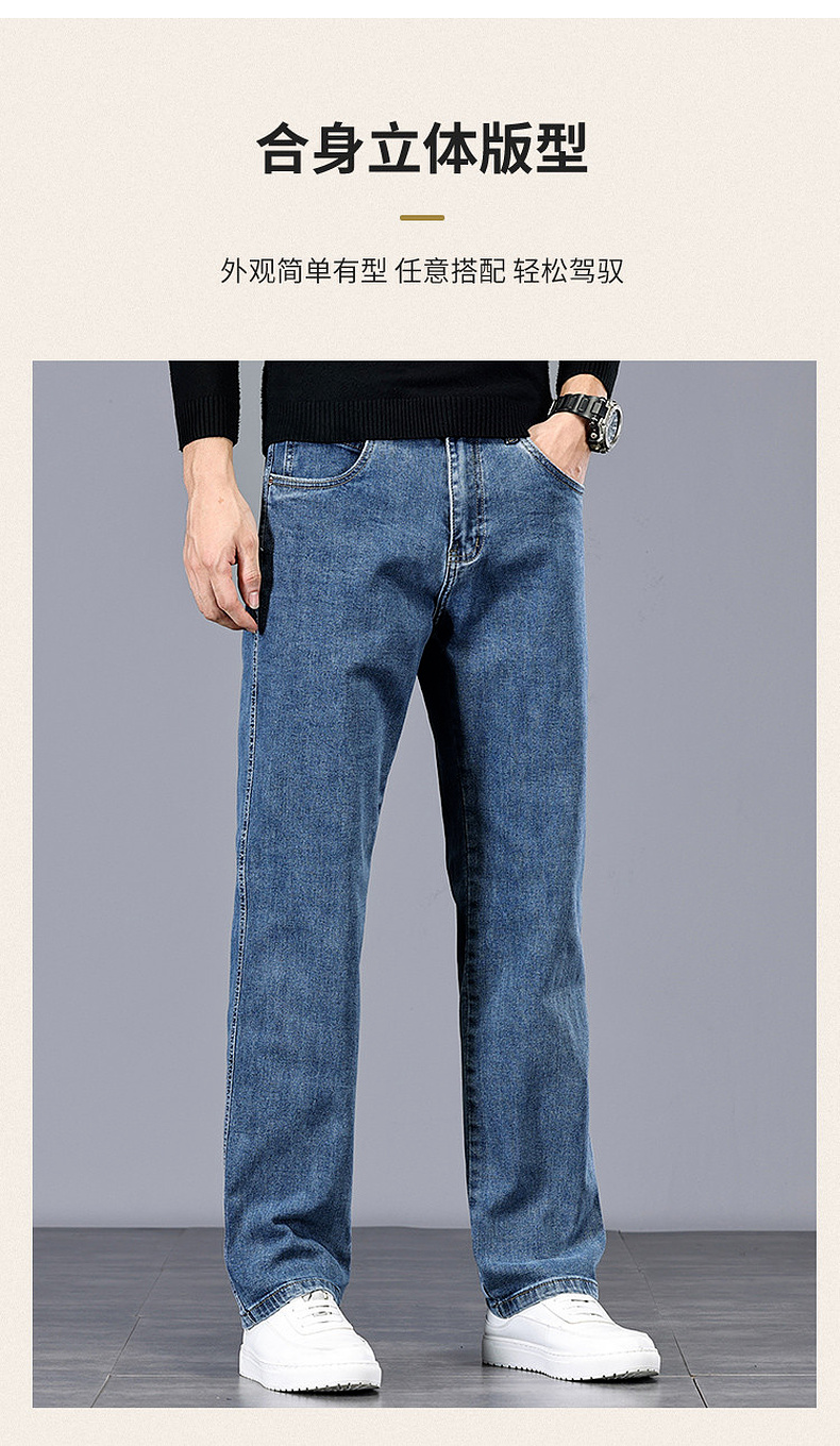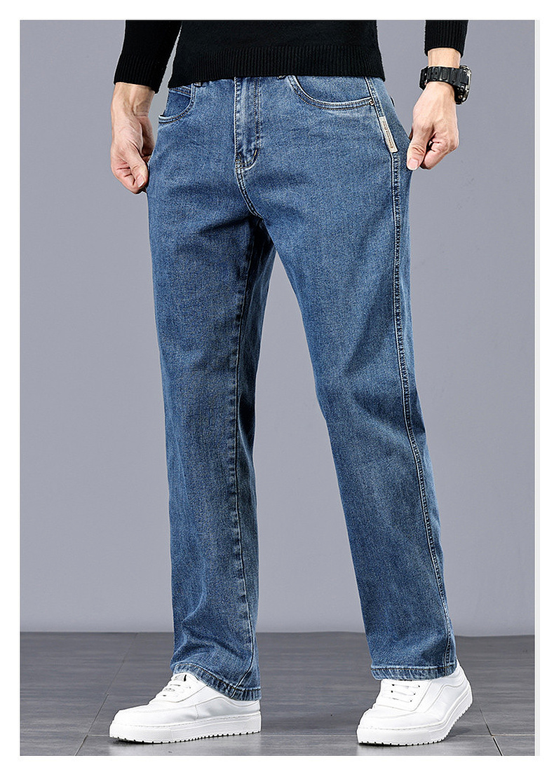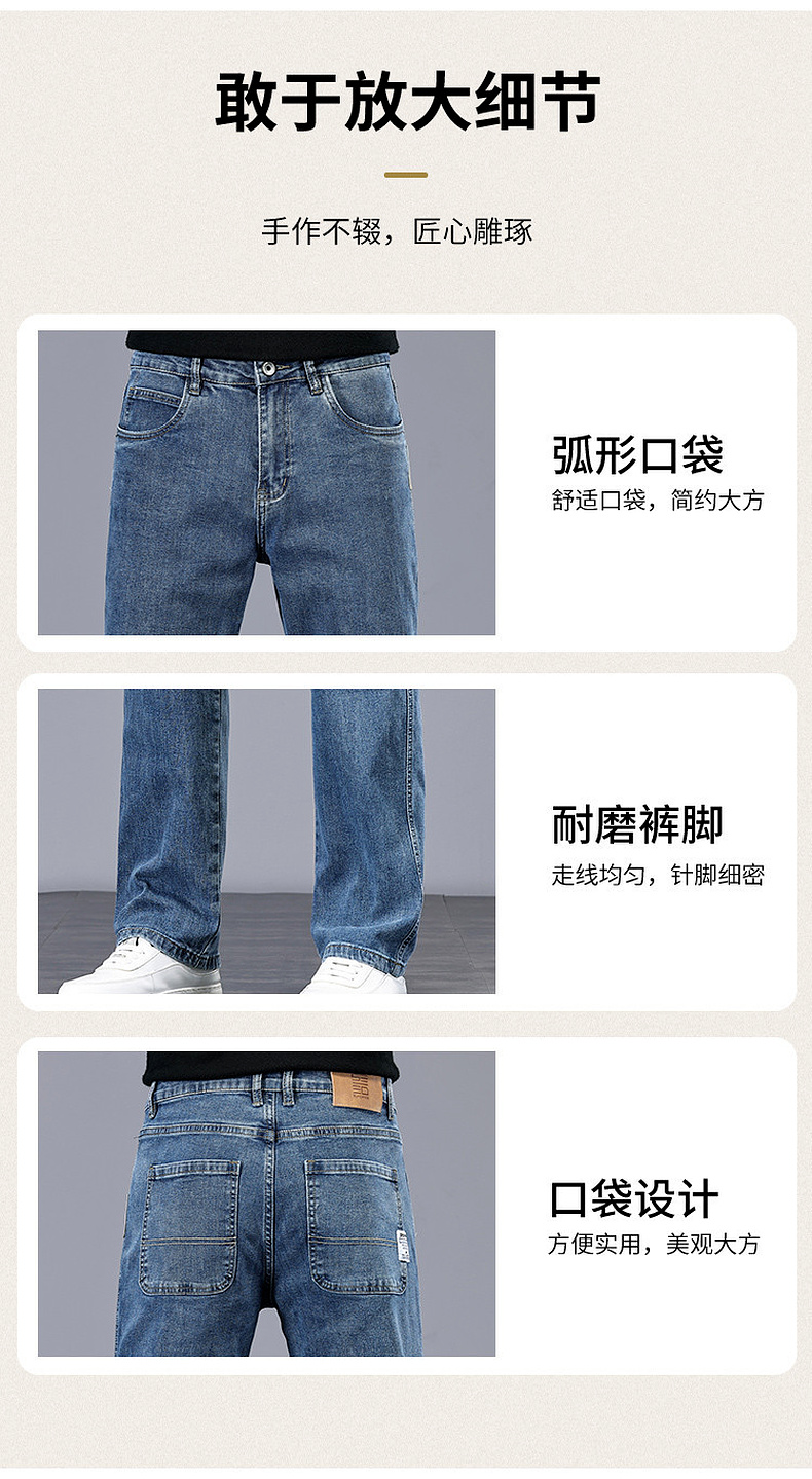 圣得西2025秋季棉质弹力宽松直筒牛仔裤男士弹力裤子时尚休闲裤