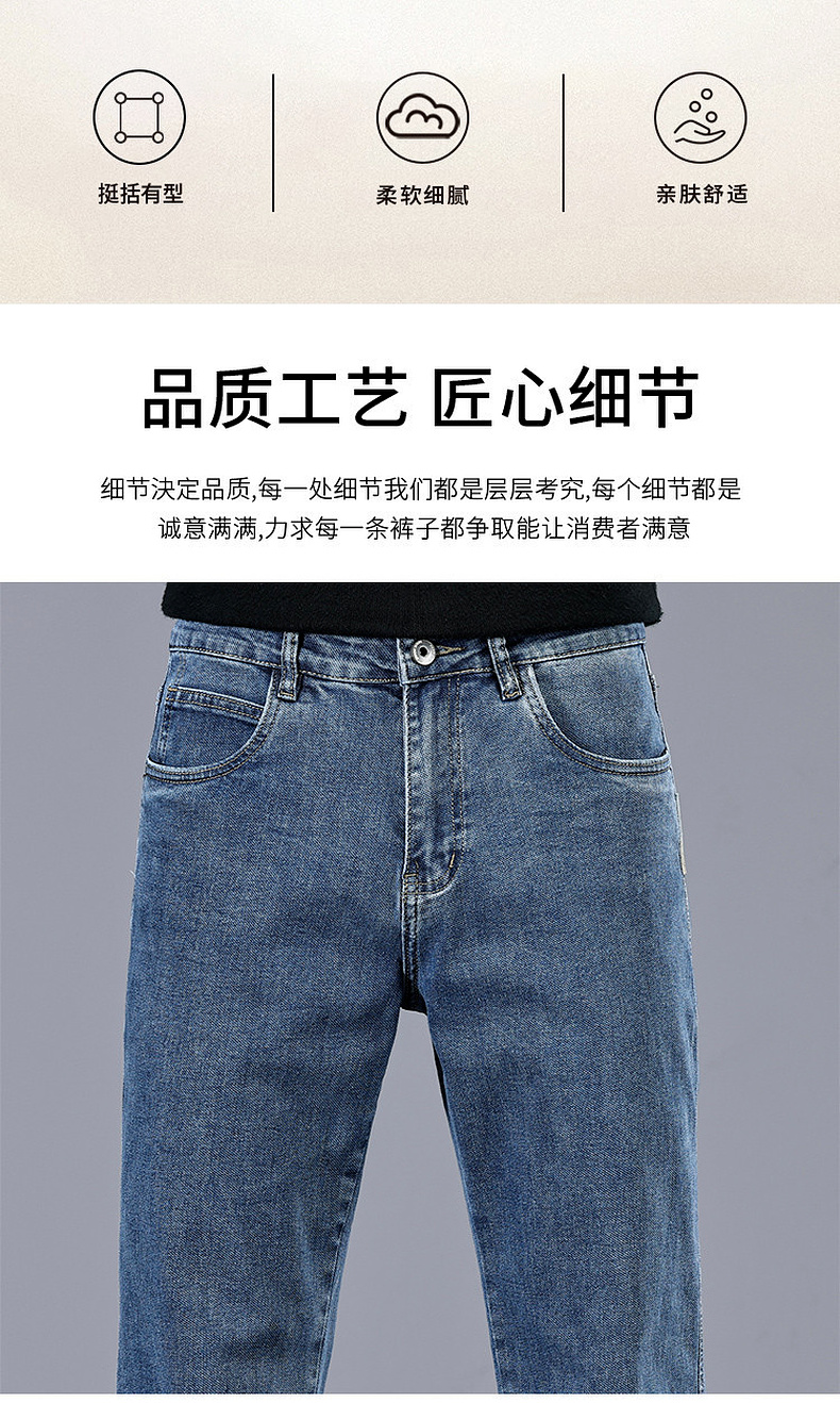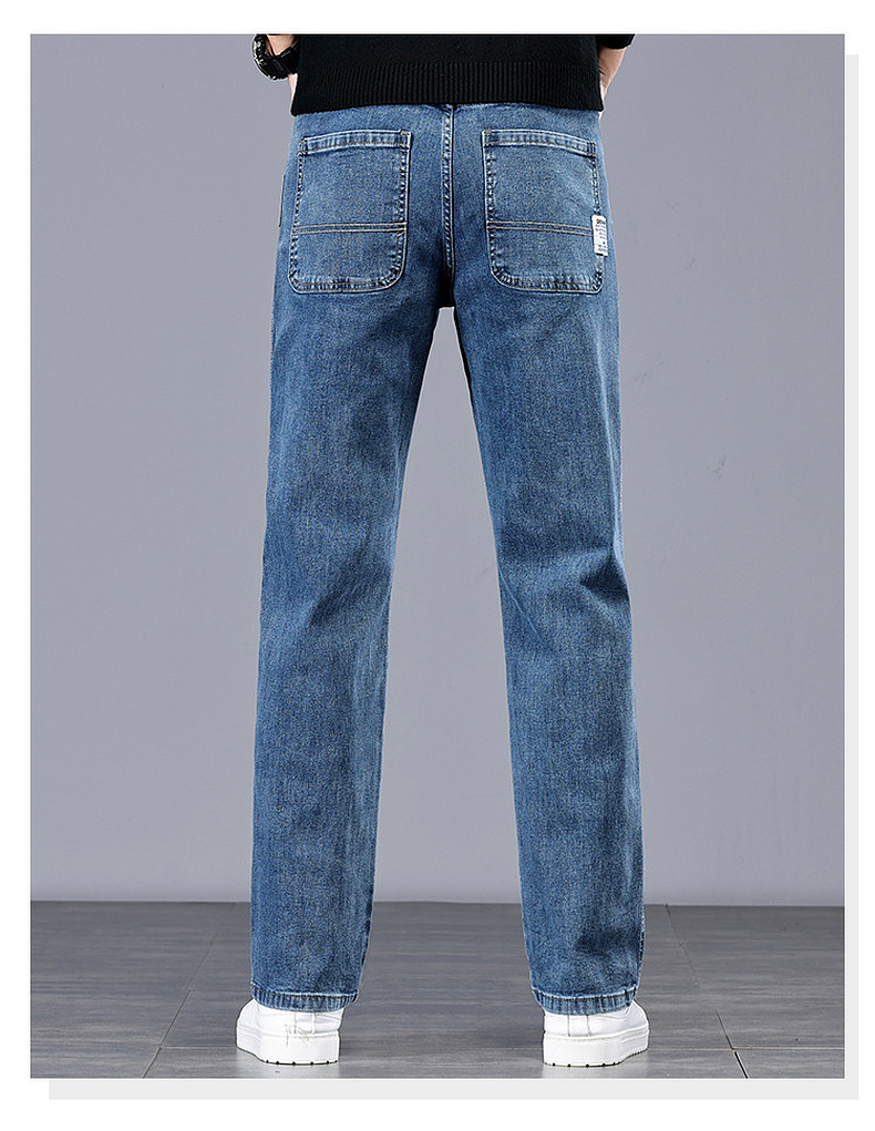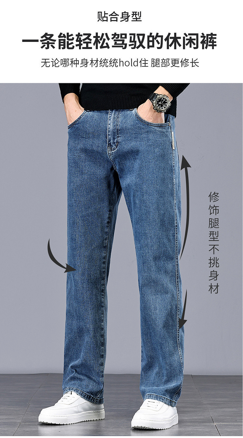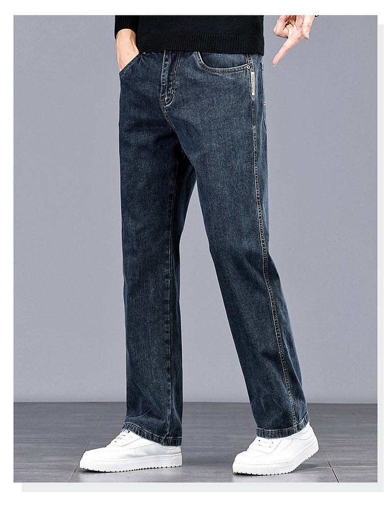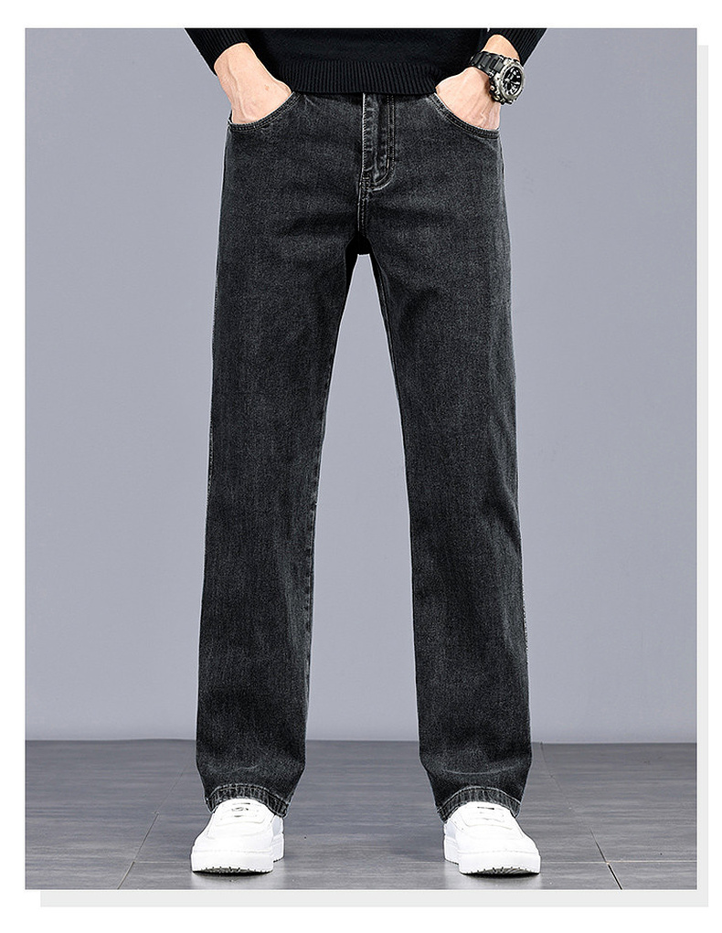 圣得西2025秋季棉质弹力宽松直筒牛仔裤男士弹力裤子时尚休闲裤