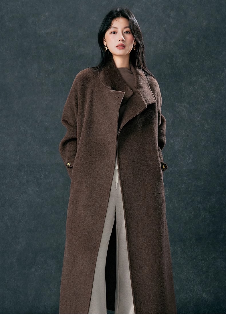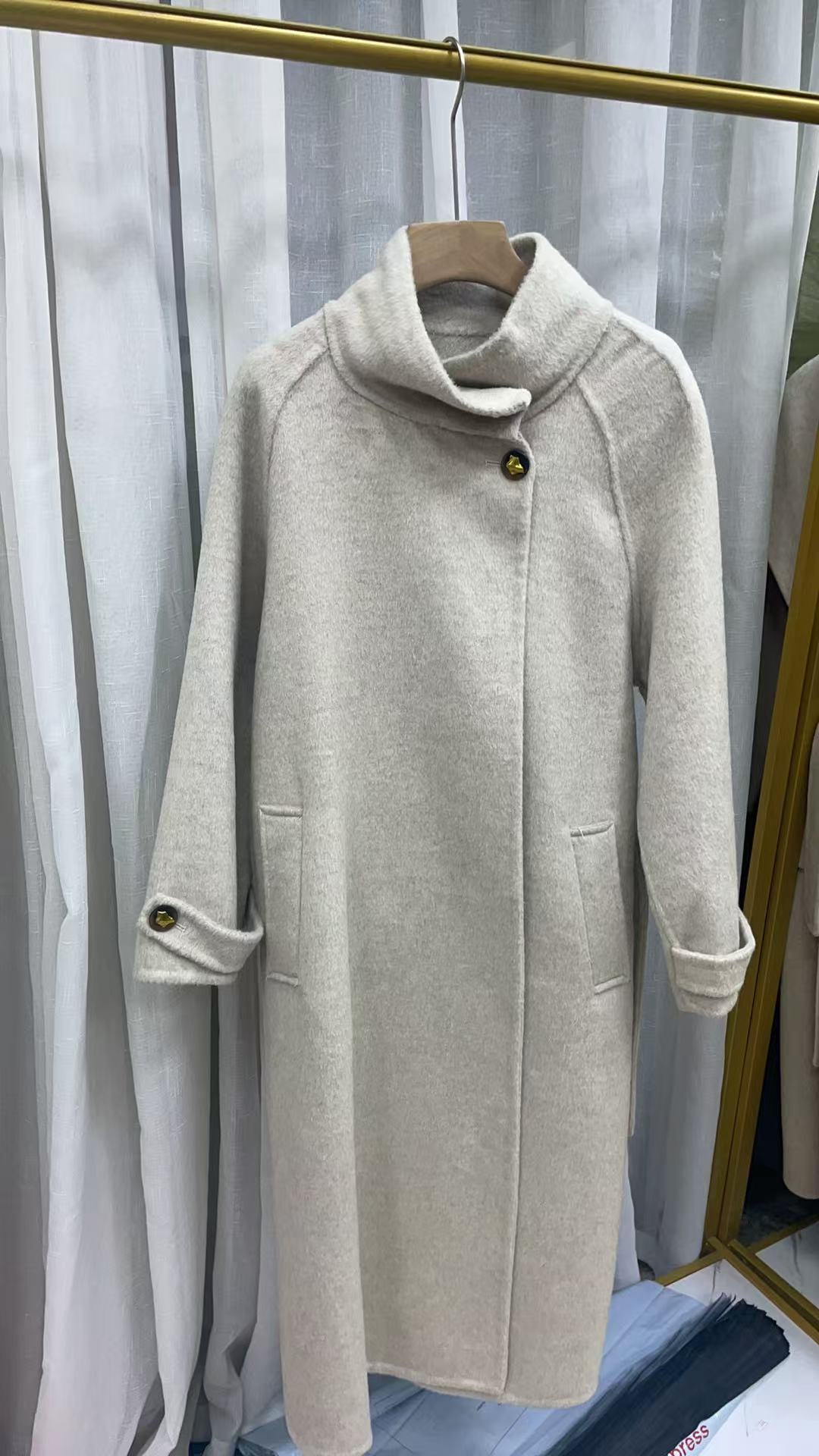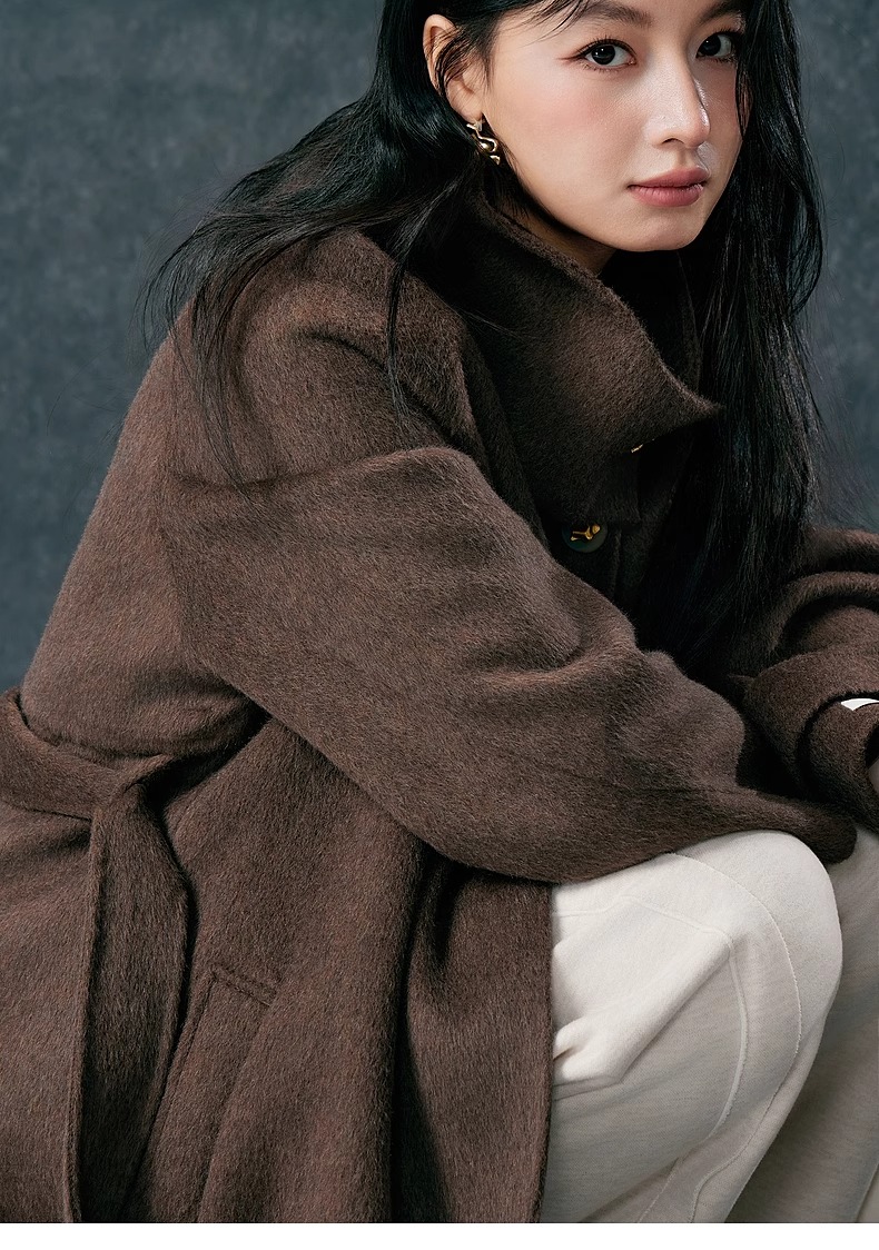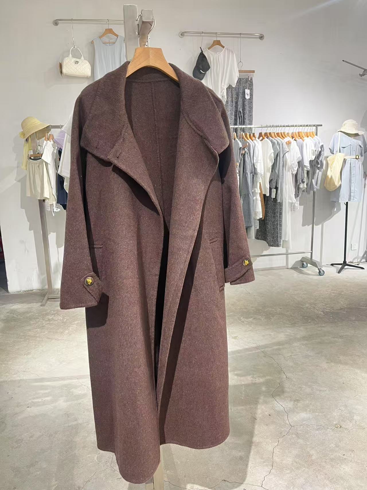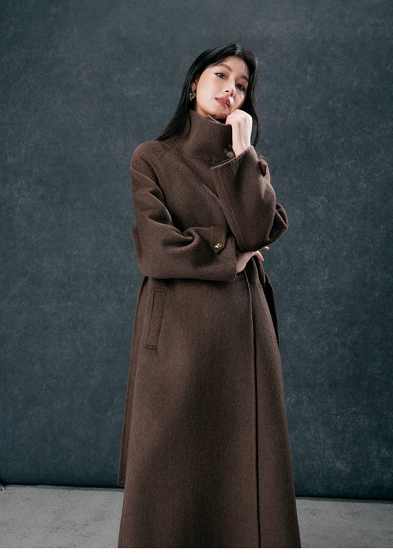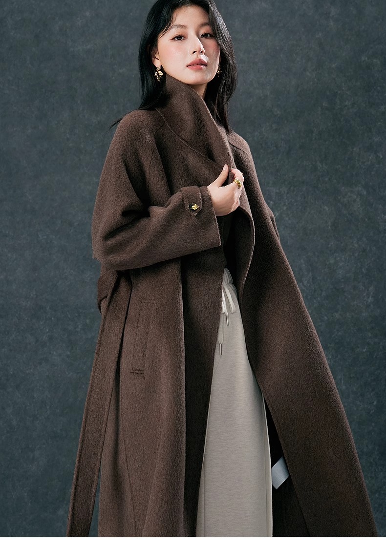 【YW】无忧购立领收腰系带毛呢外套长款绵羊毛双面呢8801水晶扣(截单后3-5天发货)