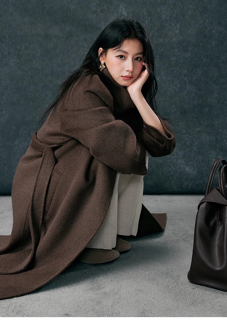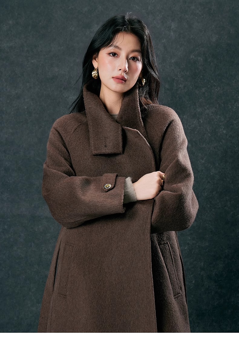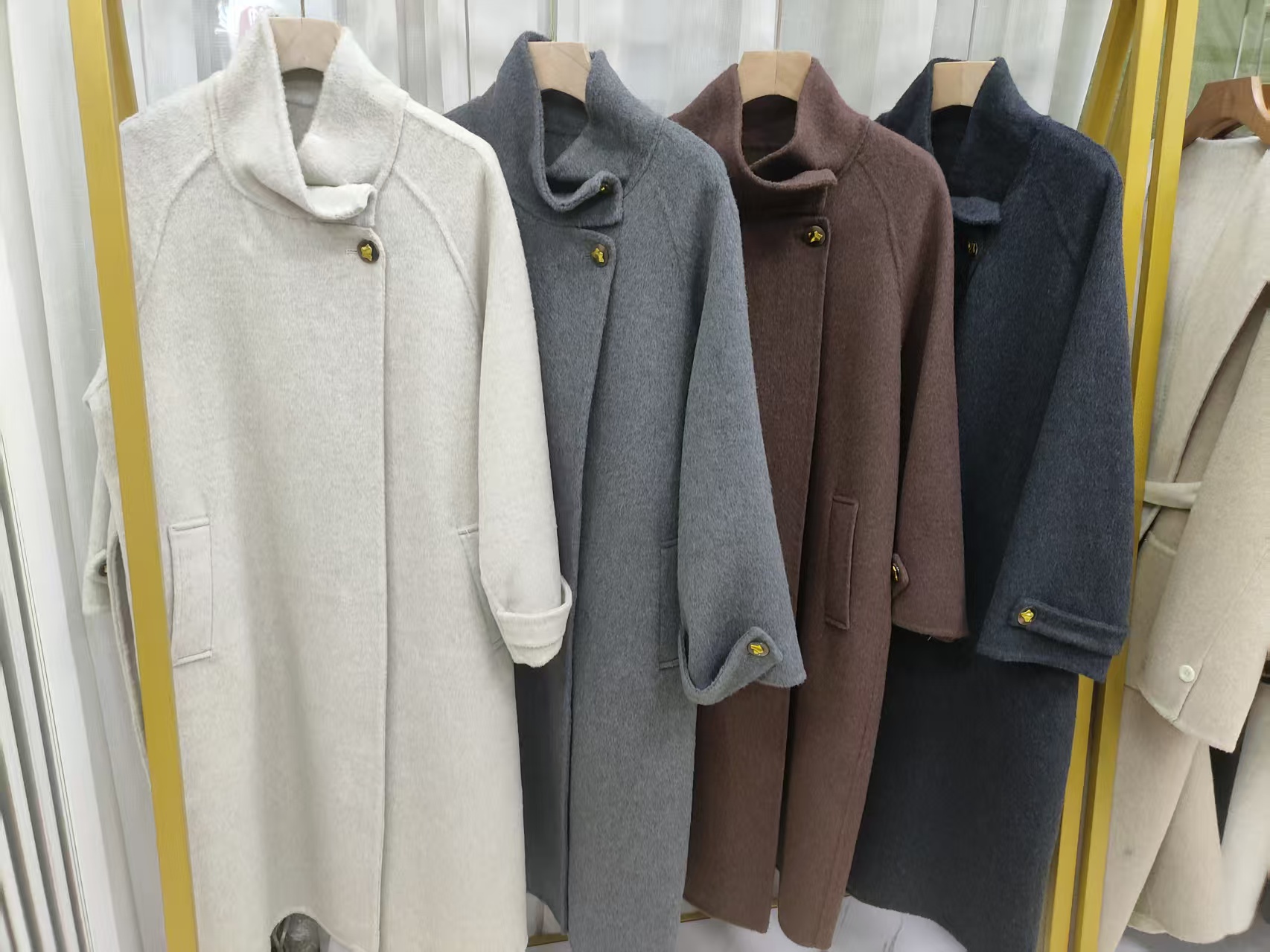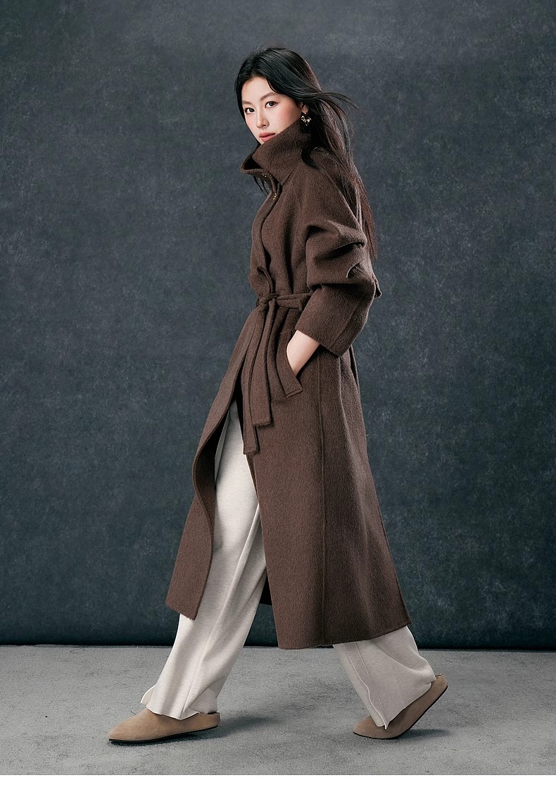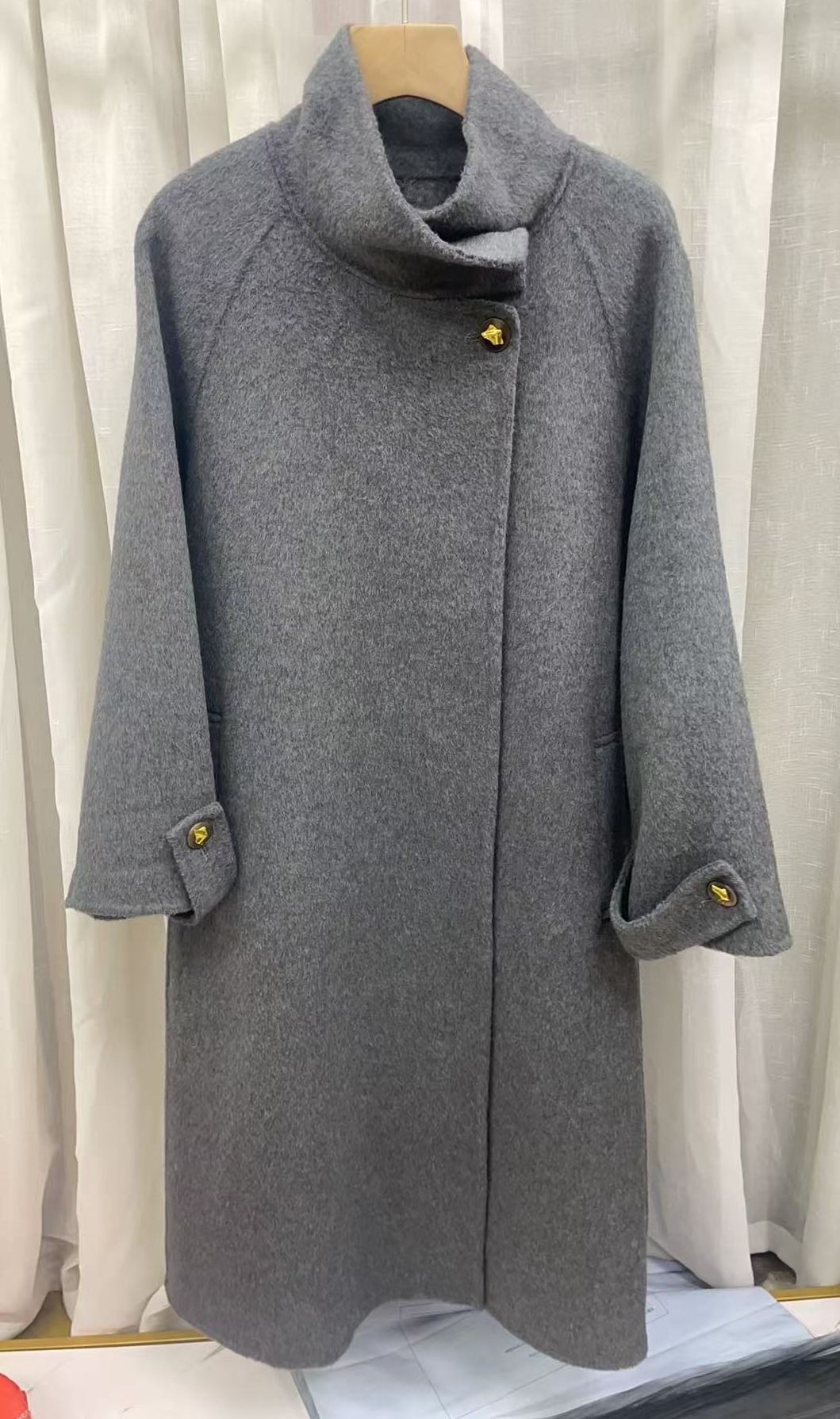 【YW】无忧购立领收腰系带毛呢外套长款绵羊毛双面呢8801水晶扣(截单后3-5天发货)