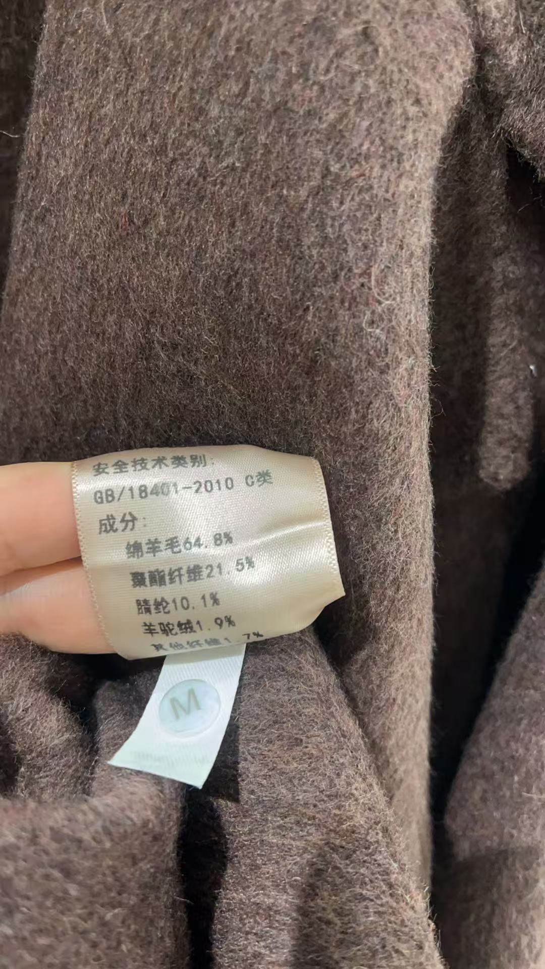 面料:64.8%绵羊毛 21.5%聚酯纤维 10.1%腈纶 1.9%羊驼绒 1.7%其他纤维