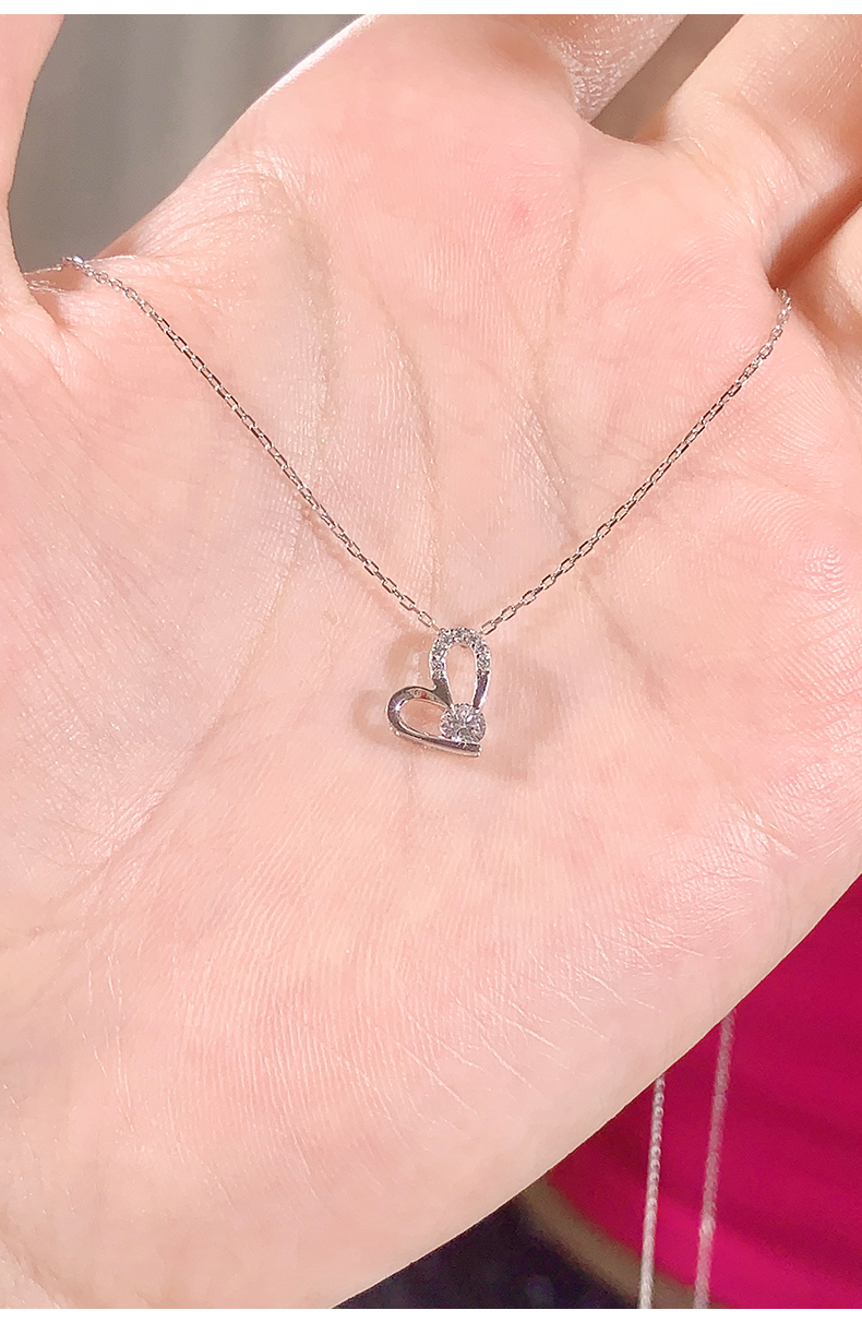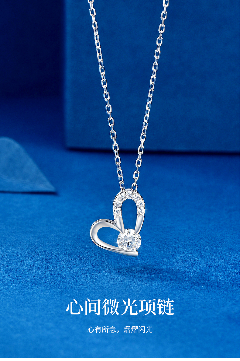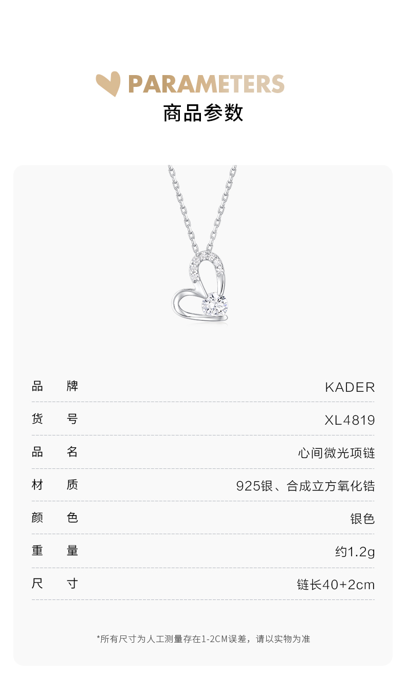 卡蒂罗/KADER 心间微光项链 满钻镶嵌大颗锆石闪耀爱心百搭锁骨链 璀璨吸睛优雅温柔小众设计吊坠 925银