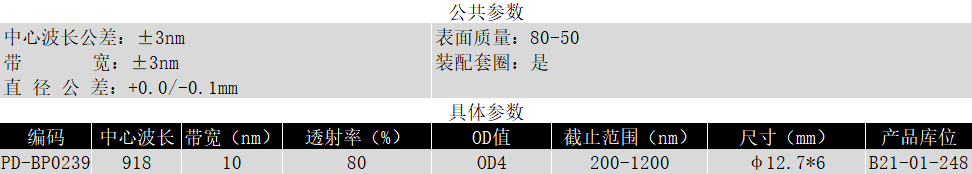 BP918/10K OD4@200-1200 T>80% Φ12.7*6 带通滤光片 (带套圈)