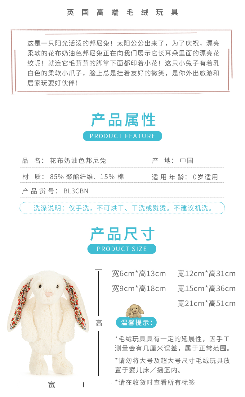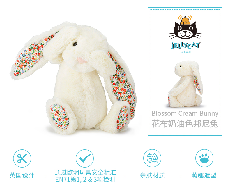 Jellycat 花耳朵系列 邦尼兔 白色