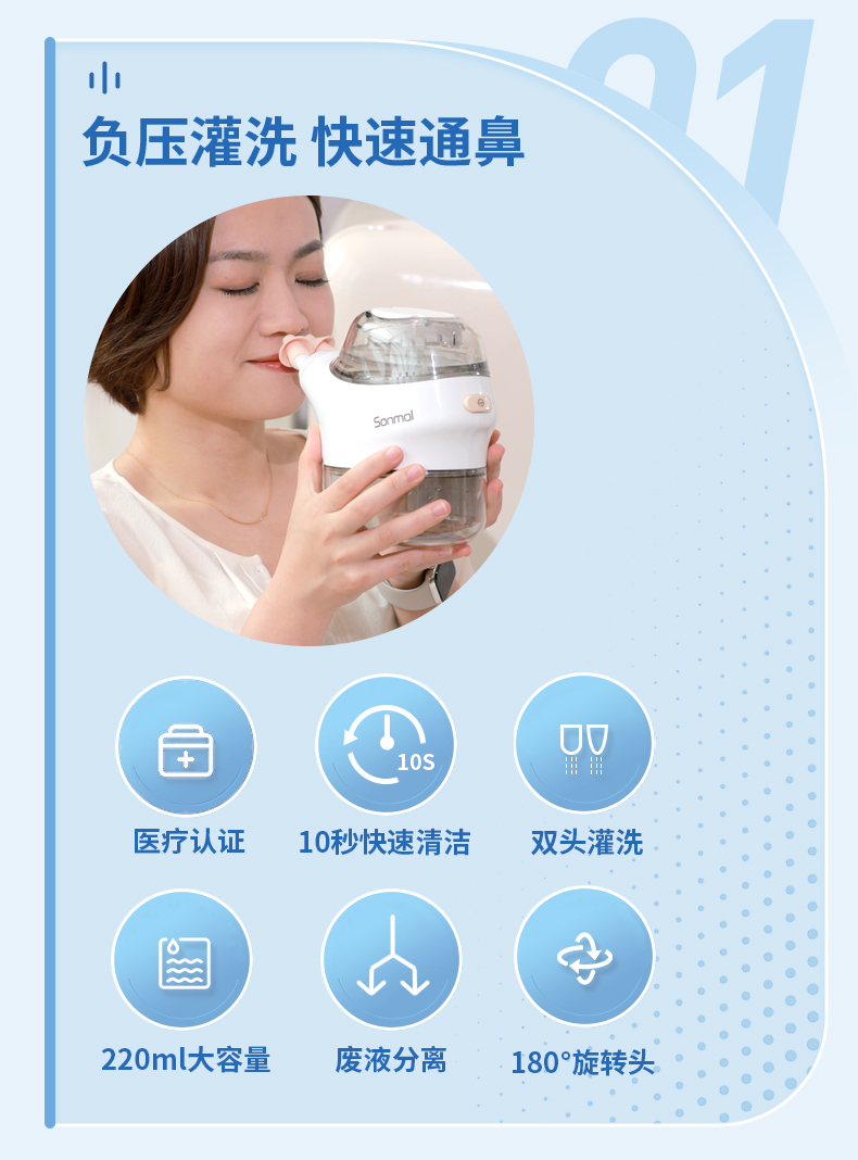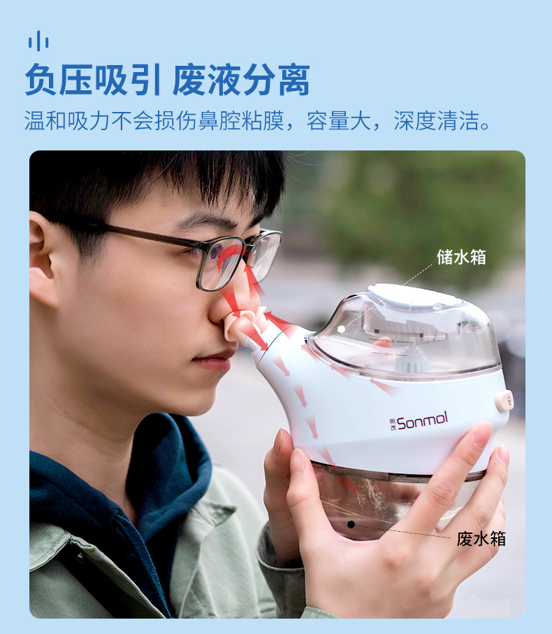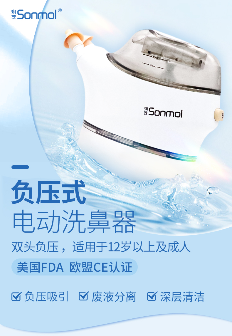 【换季好物】朔茂Sonmol 负压式洗鼻器电动洗鼻器 家用鼻腔冲洗器 双头灌洗 成人鼻炎