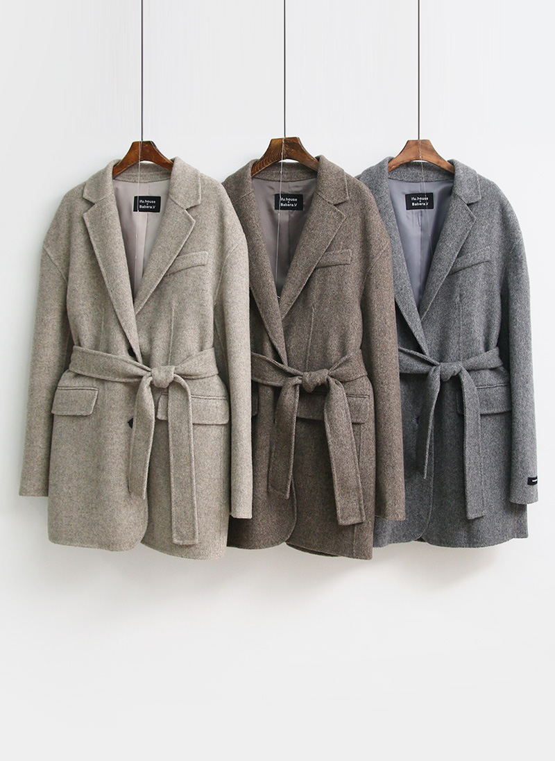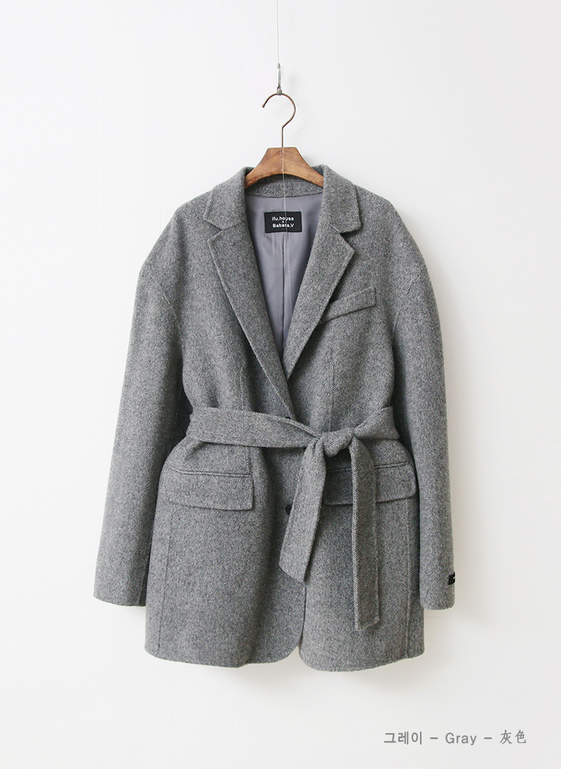 MORETHANBETTER 羊毛90手工制作人字形半外套腰带JPY带授权招加盟代理