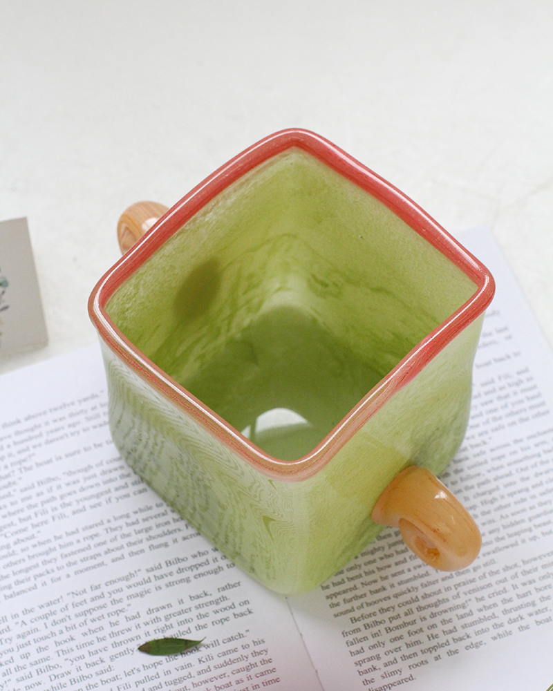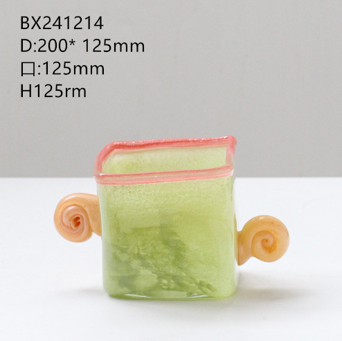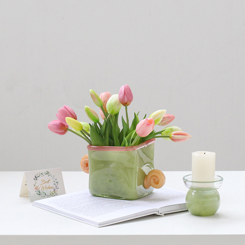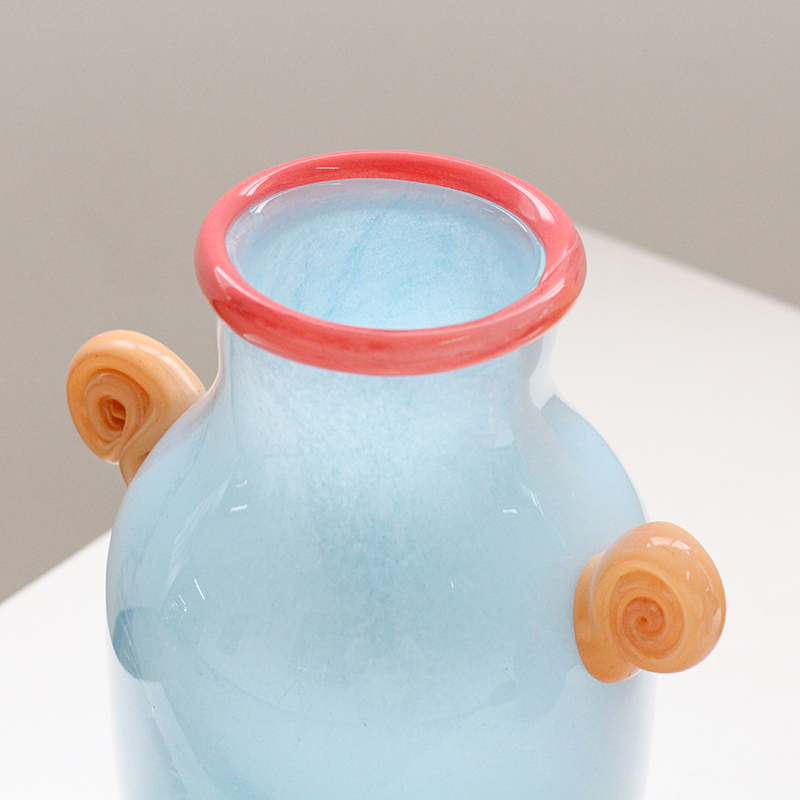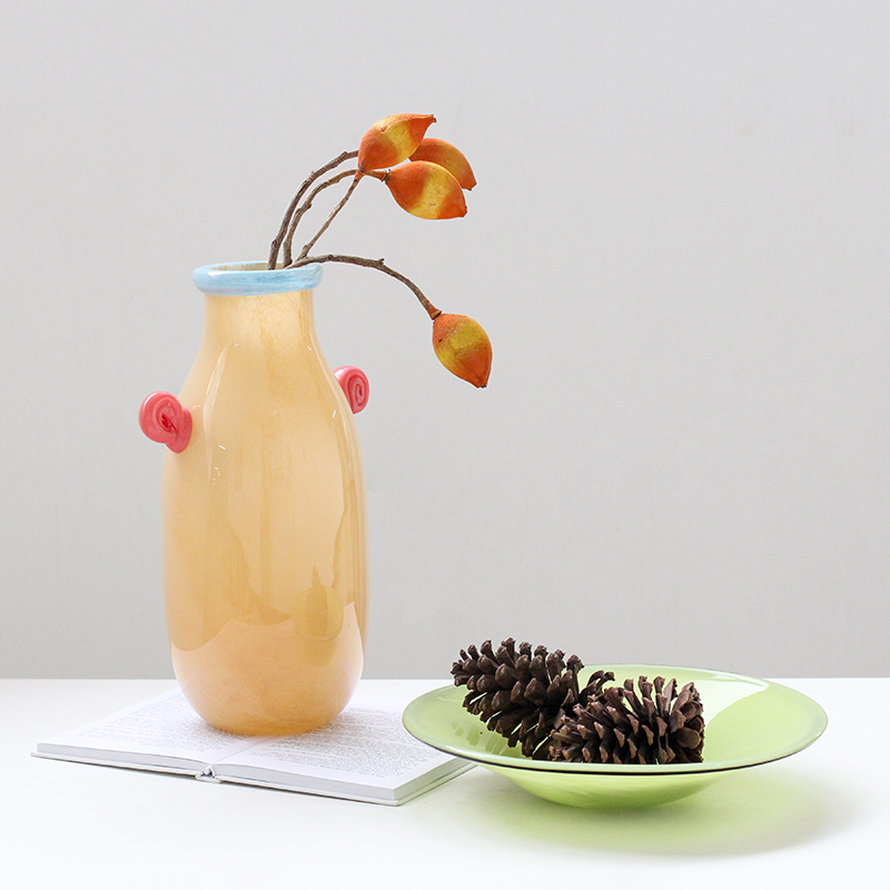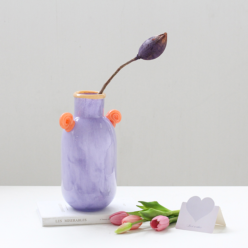 北欧创意双耳糖果色手工可爱花瓶鲜花餐桌电视柜多巴胺装饰玻璃瓶