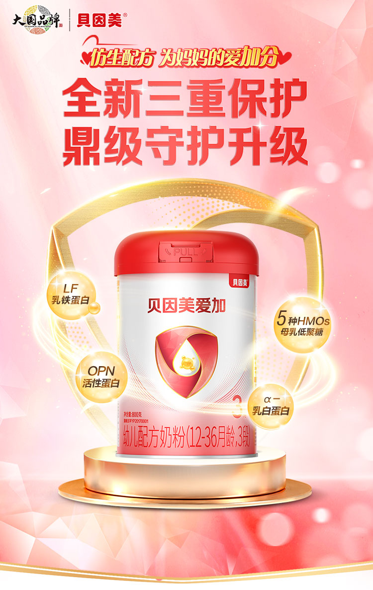 【贝因美】爱加幼儿配方奶粉3段800克 仿生配方