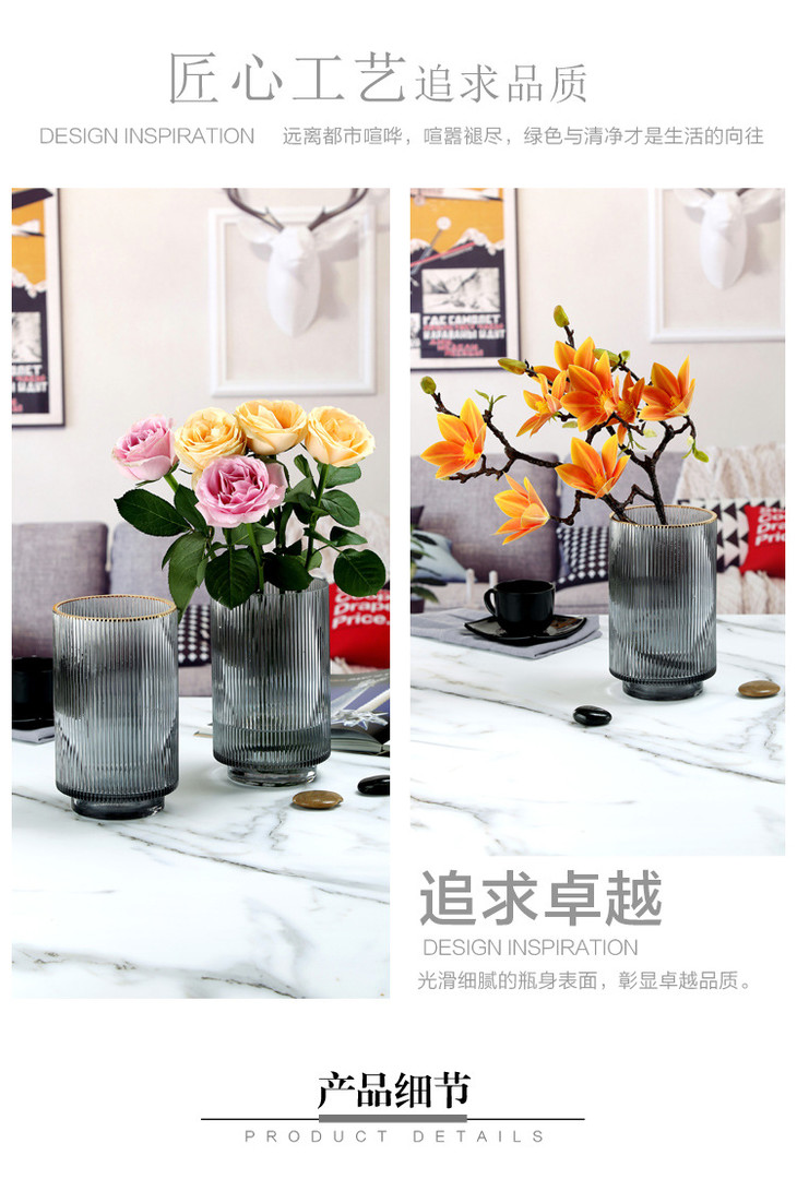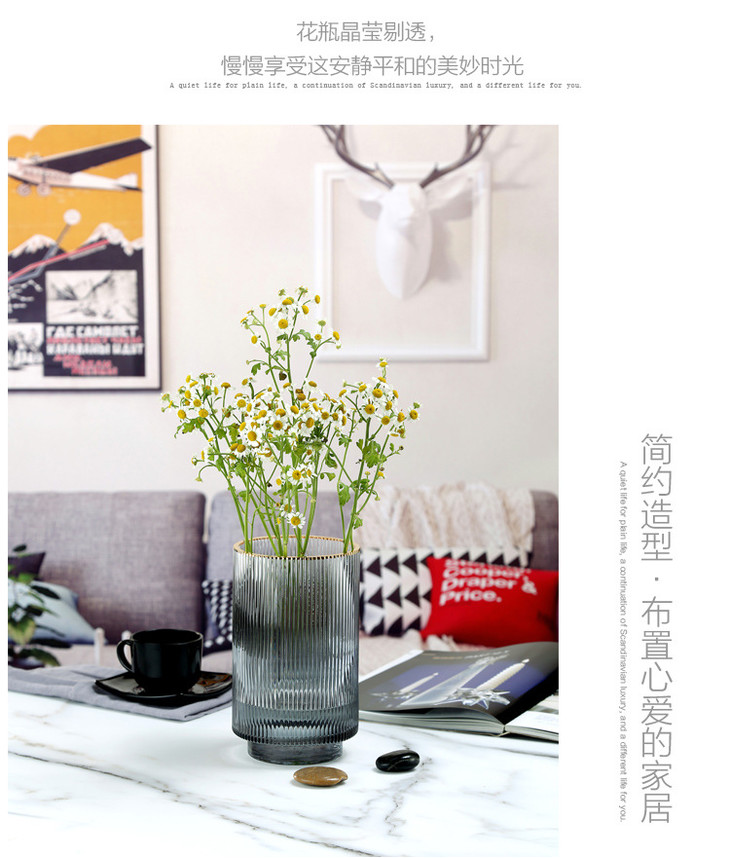 北欧轻奢描金竖纹玻璃花瓶-1220竖条