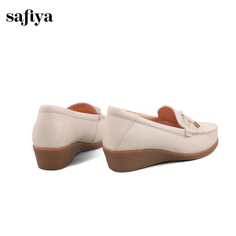 Safiya/索菲娅2024秋新款真皮蝴蝶结镂空浅口休闲防滑平底单鞋 SF43111402