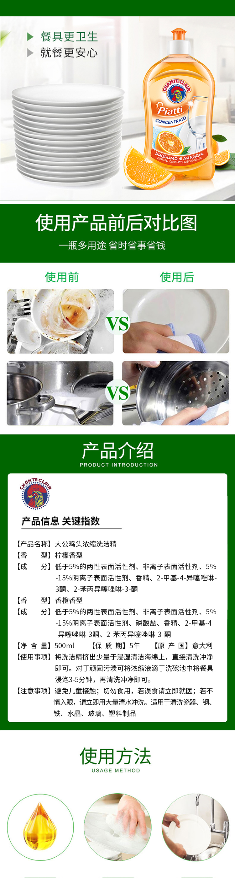 意大利进口大公鸡头浓缩洗洁精500ml【多香型】