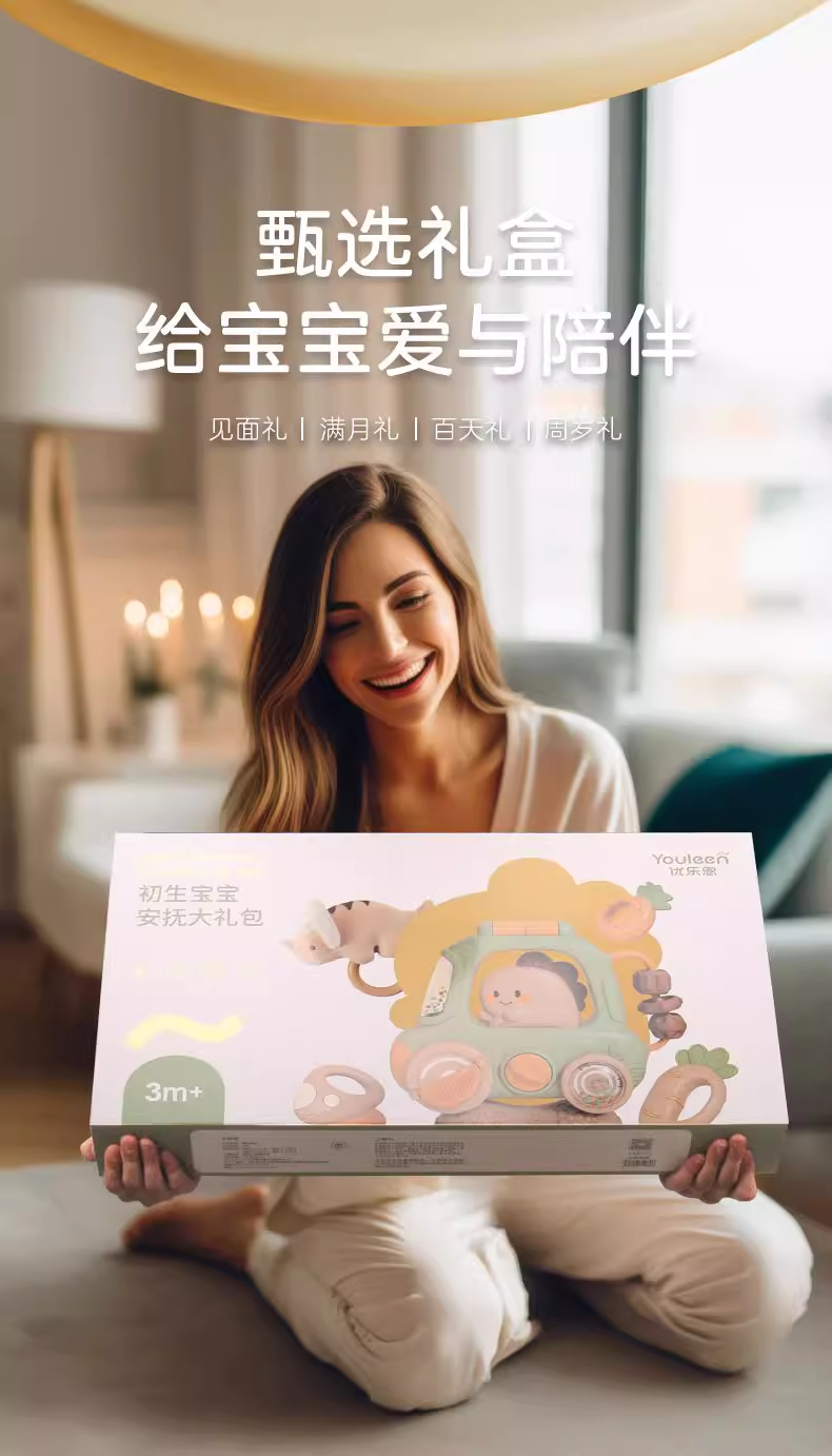 优乐恩新生儿礼盒婴儿玩具满月礼盒0-1岁安抚宝宝玩具礼物套装