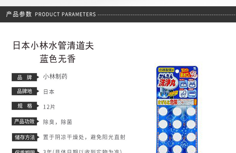 KOBAYASHI/小林制药 浴厕厨房排水管清洁丸 12粒JPY带授权招加盟代理
