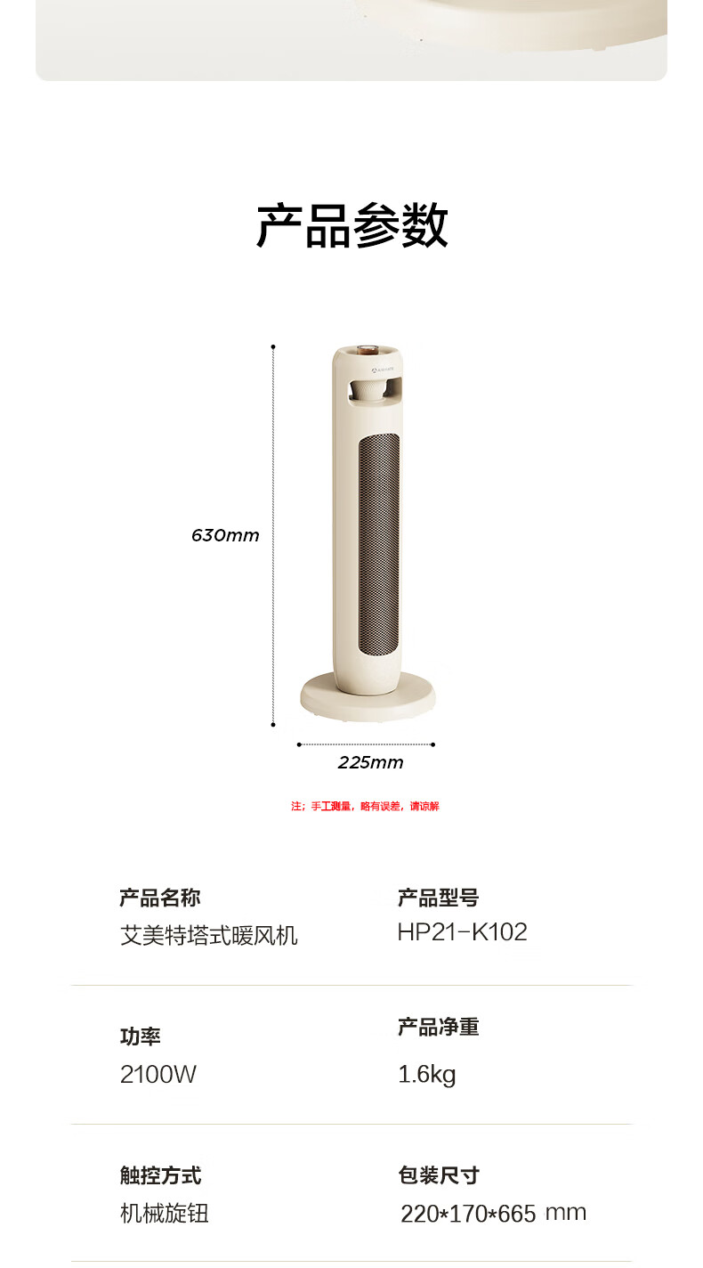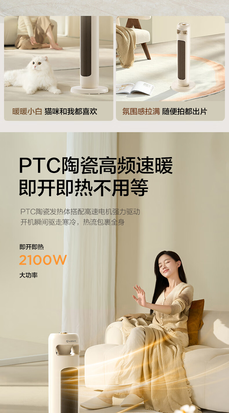 【分仓直发包邮】艾美特AIRMATE石墨烯塔式暖风机HP21-K102
