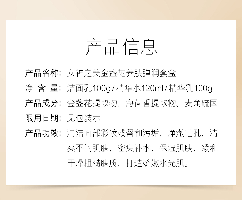【女神之美 金盏花护肤套盒】金盏花精华水+金盏花精华乳+金盏花洁面乳 发明成分专利 紧实润颜