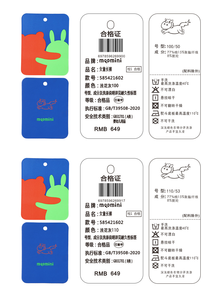 【90-140】【MQDmini】女童春秋运动长裤