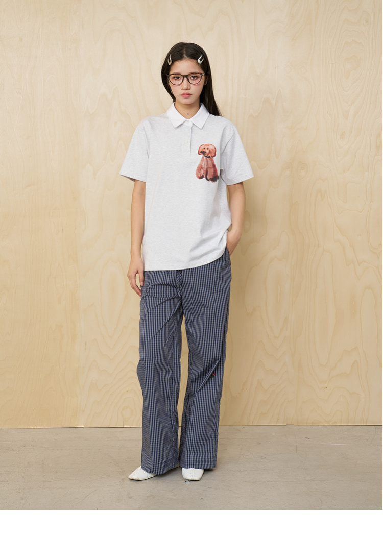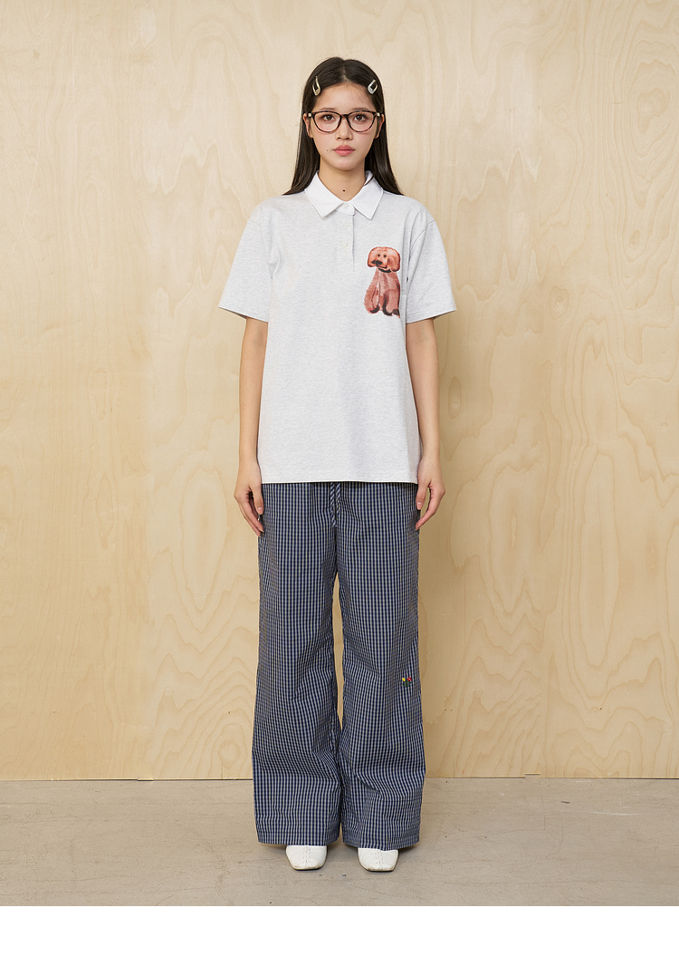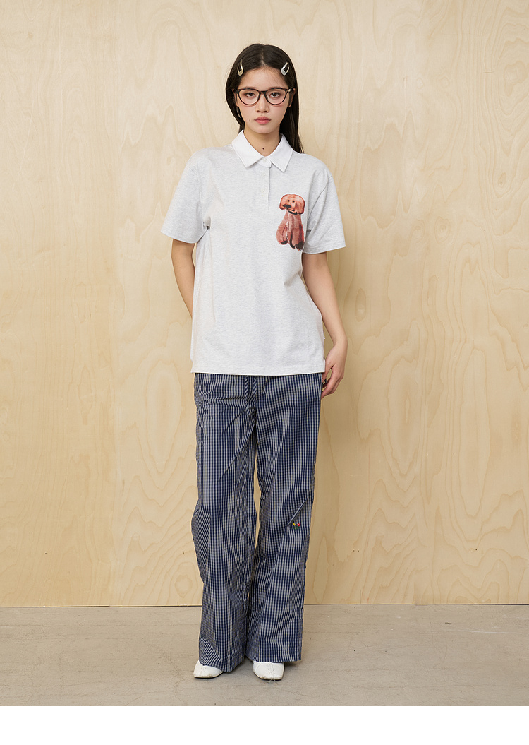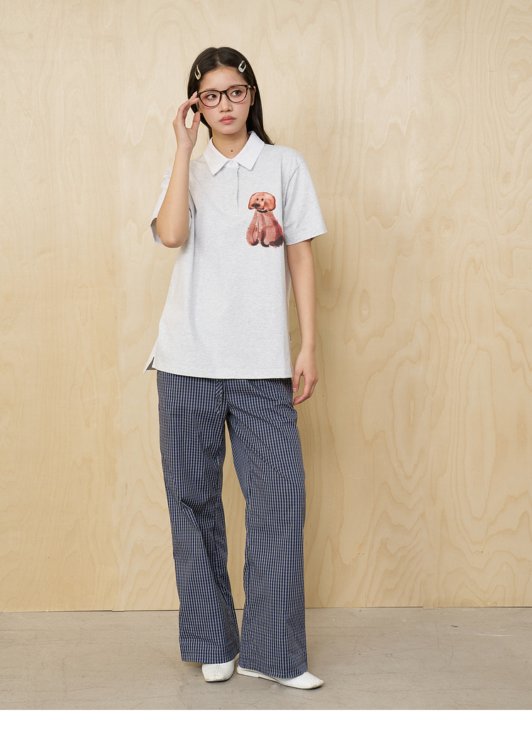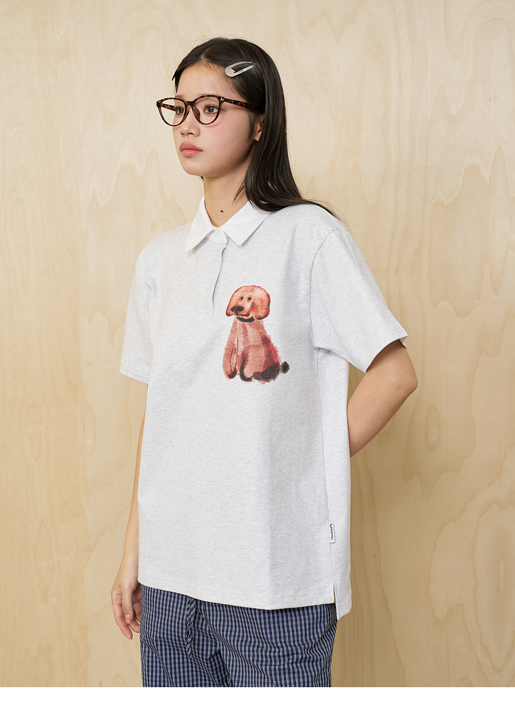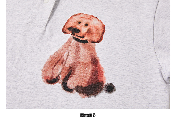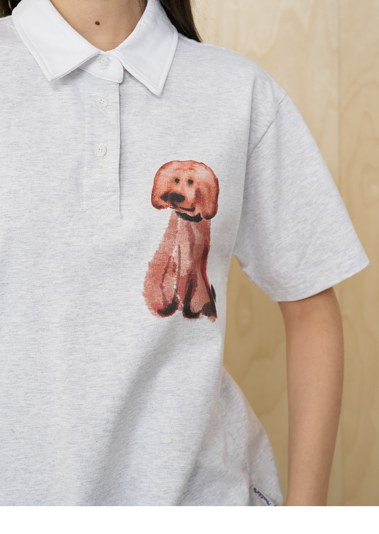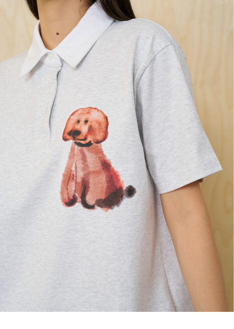 MoodLikeMe/MPL2505/水彩画印花毛绒小狗短袖polo衫
