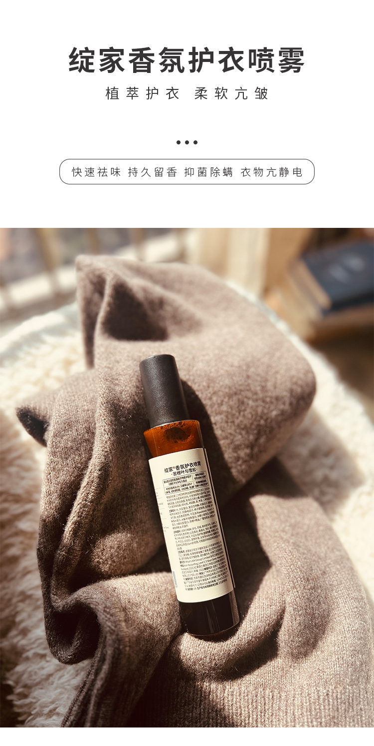 【活动商品,不退不换】植萃护衣 柔软亢皱 绽家香氛护衣喷雾 快速祛味 持久留香 抑菌除螨 衣物亢静电
