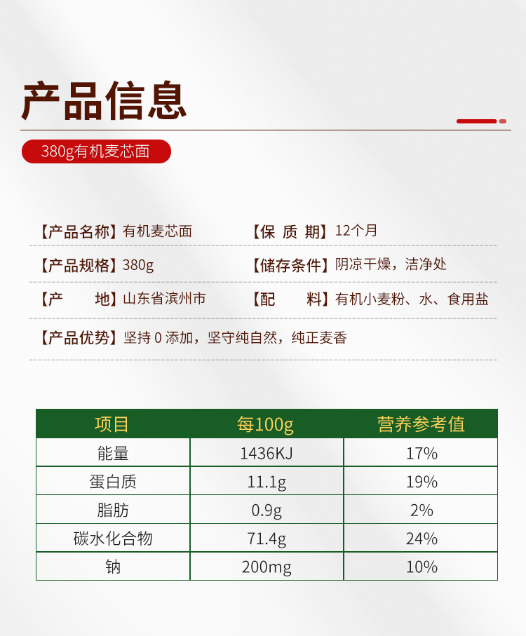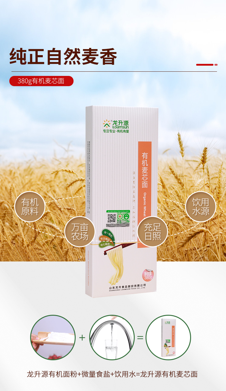 龙升源有机麦芯面380g/盒