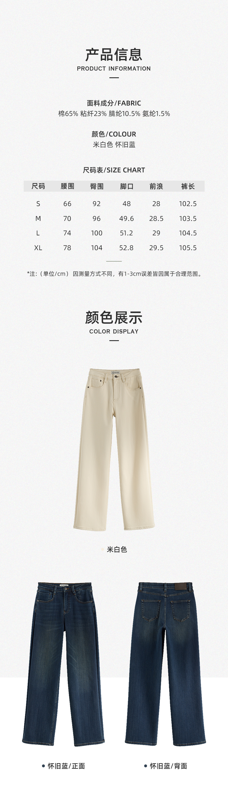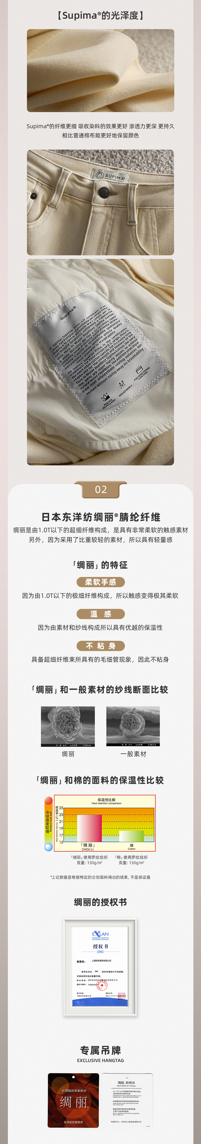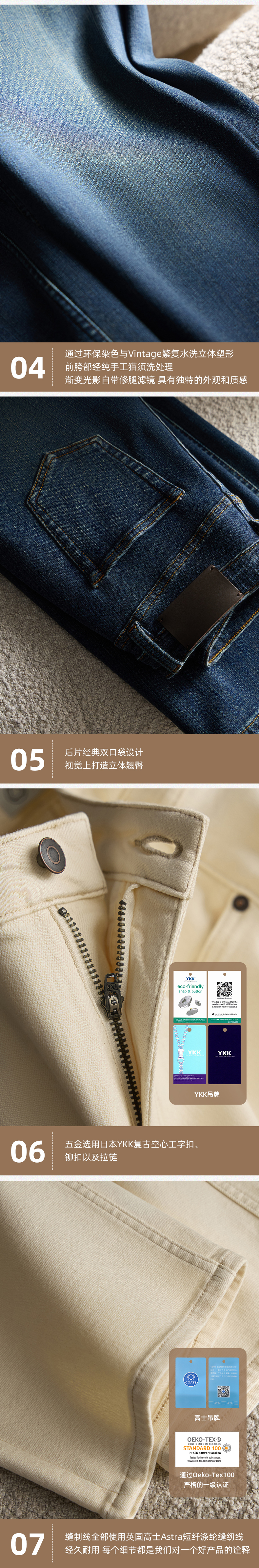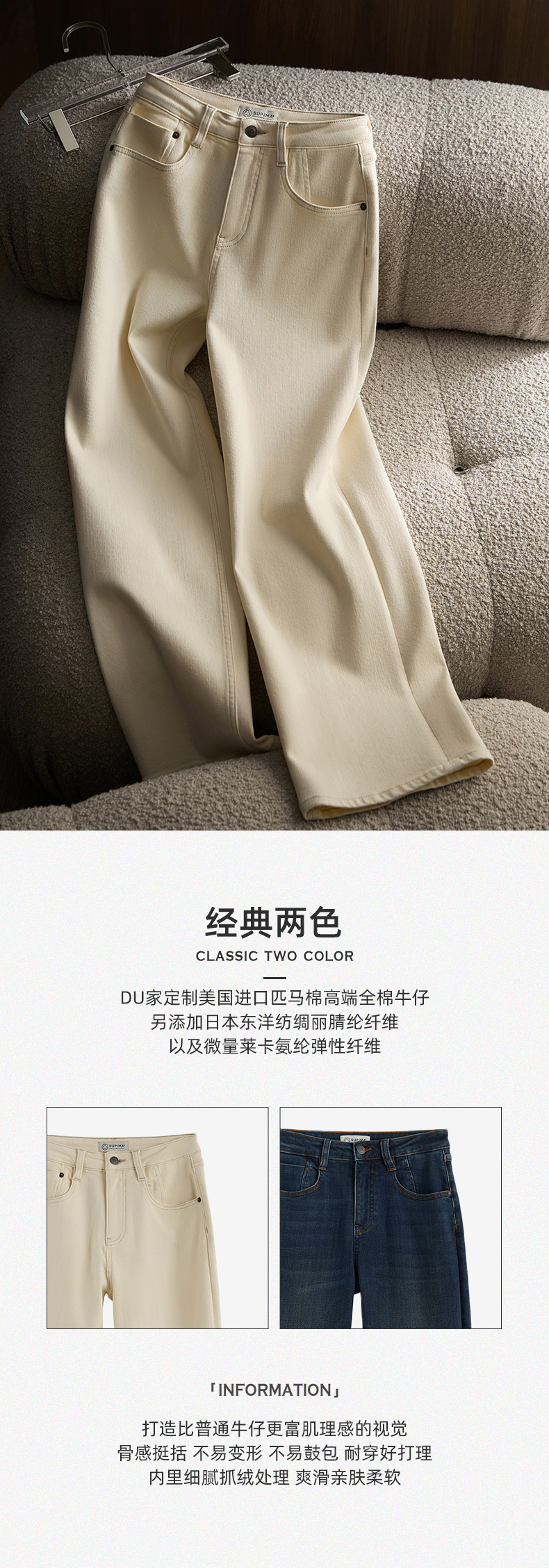 匹马棉科技发热直筒水洗牛仔裤 2927 东洋纺绸丽腈纶+莱卡纤维 骨感挺括,不易变形不易鼓包;内里细腻抓绒处理,亲肤柔软;高腰直筒裤型
