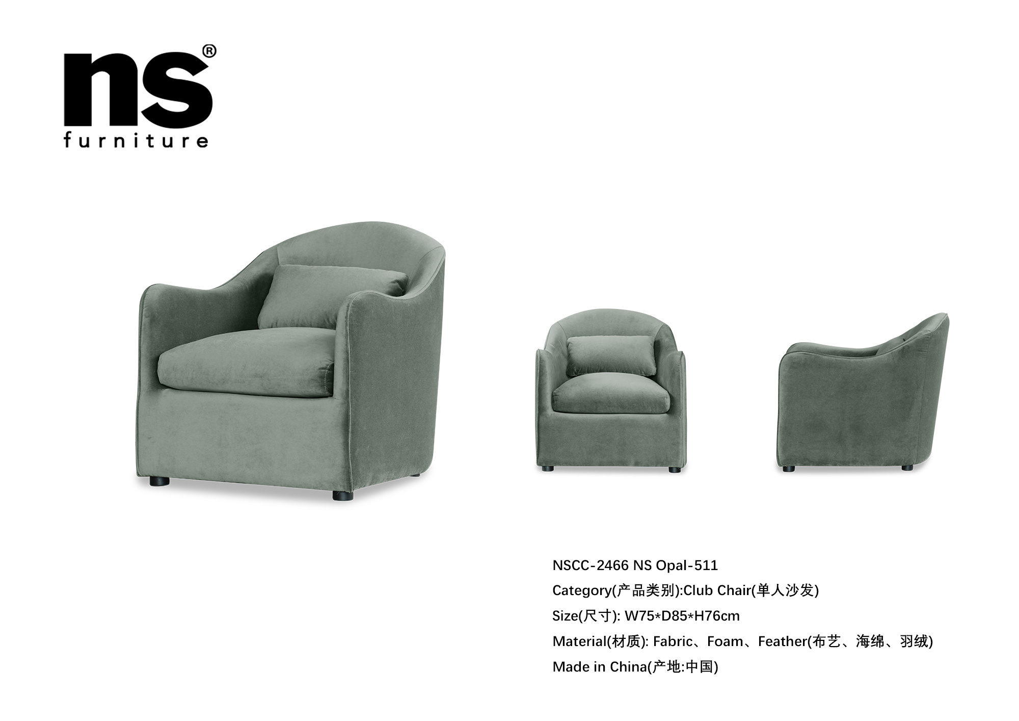 NS家居nsfurniture布艺软包单人沙发NSCC-2466
