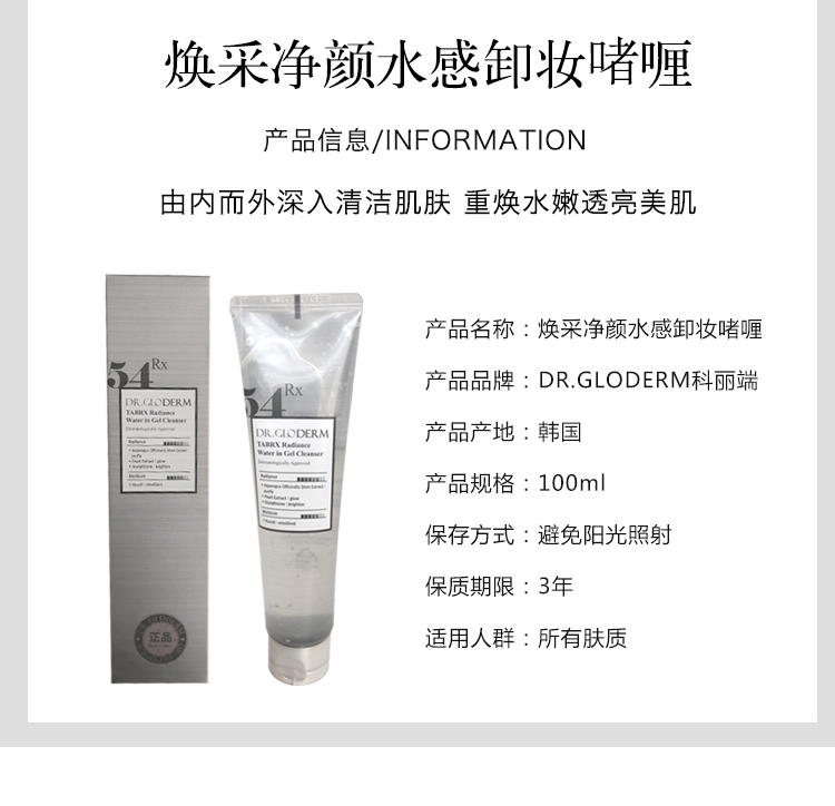 【一般贸易】·DR.GLODERM科丽端焕采净颜水感卸妆洁面啫喱洗面奶100ml