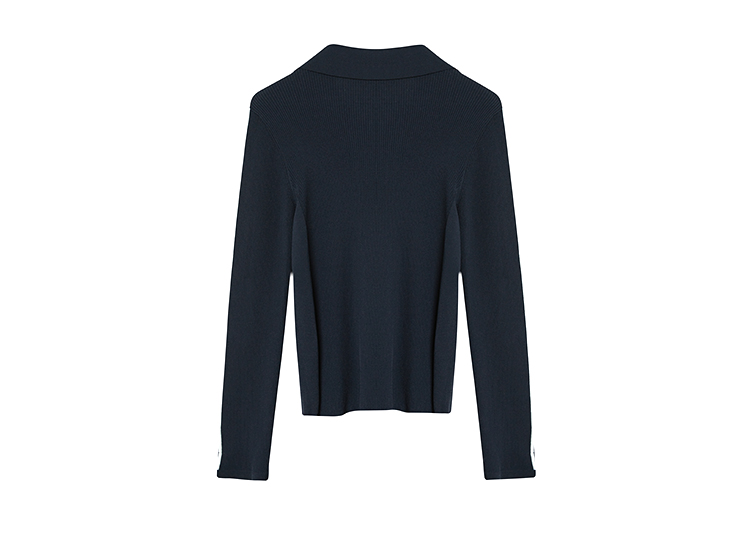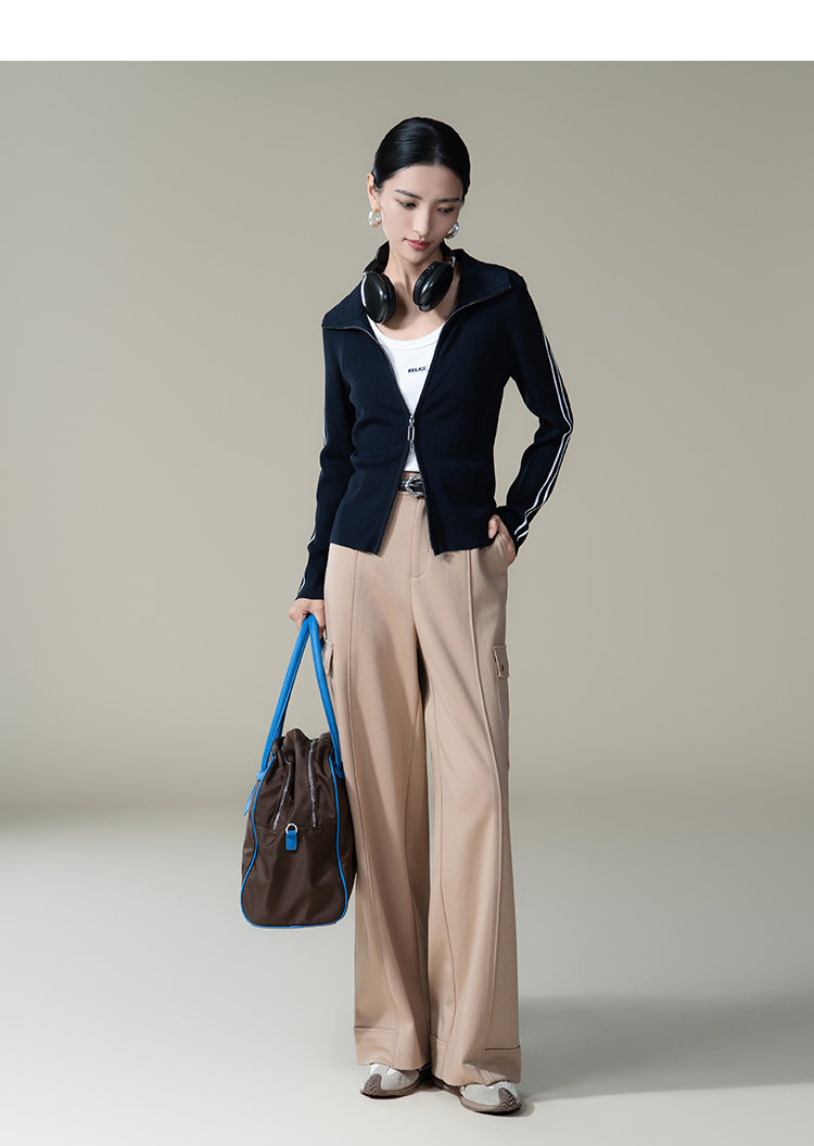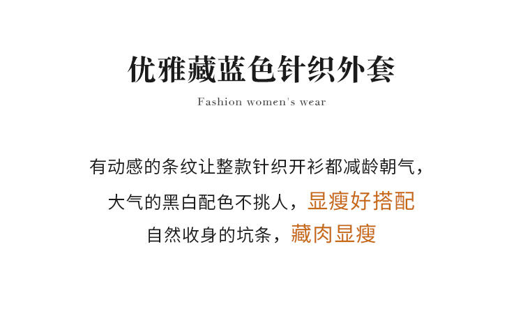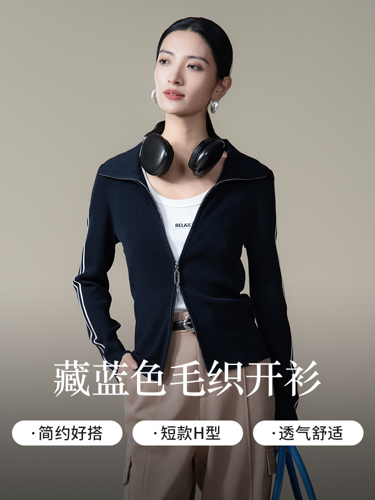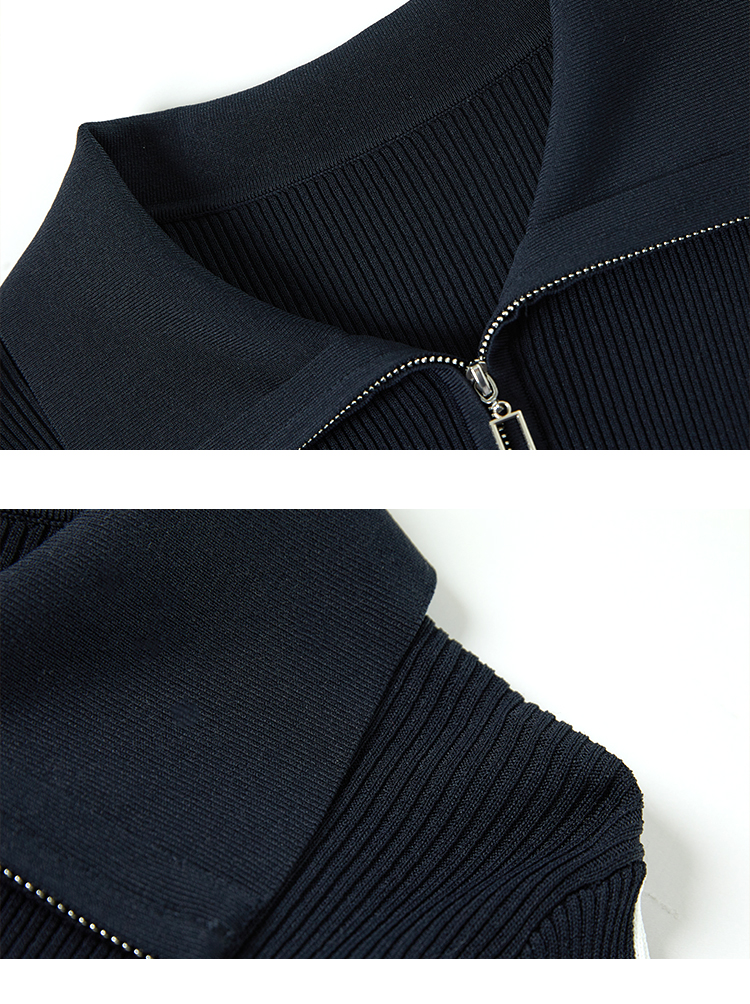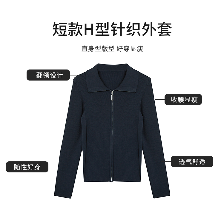 【商场同款】CNR4361 “藏蓝双开拉链直身毛衫” 减龄富有动感的条纹装饰 整体好穿好搭配 休闲摩登时髦单品 细密坑条针织外套