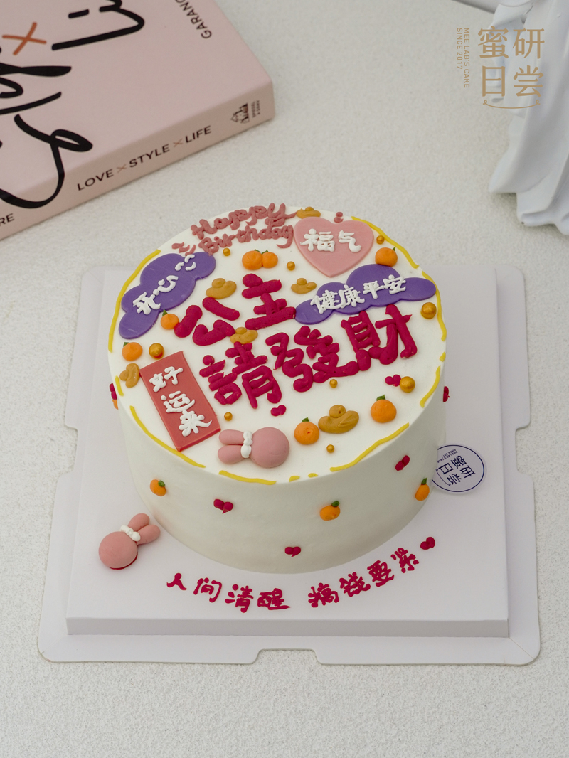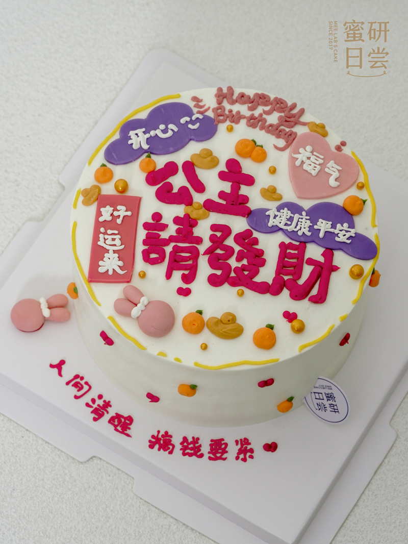 P005"公主请发财" 手绘蛋糕
