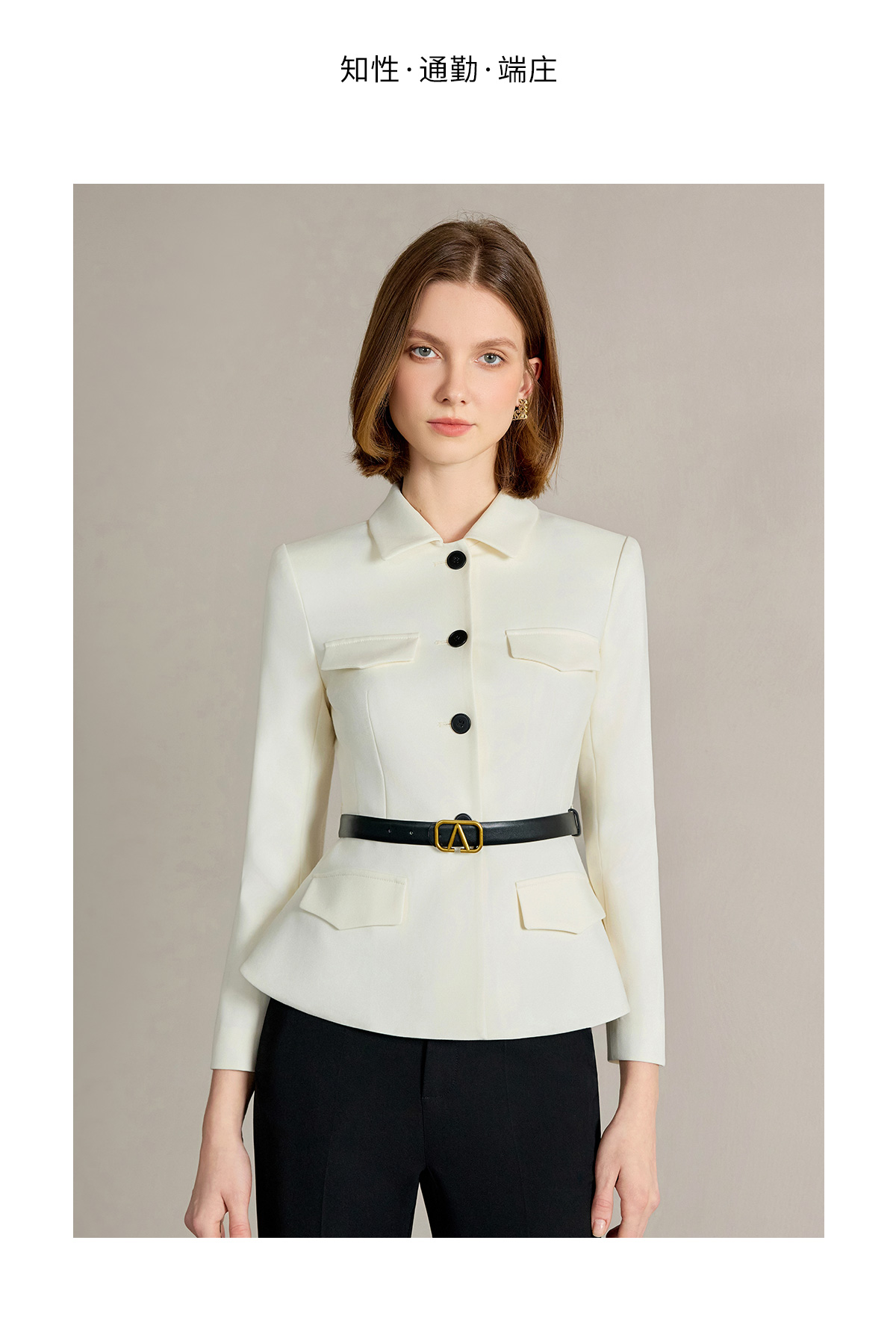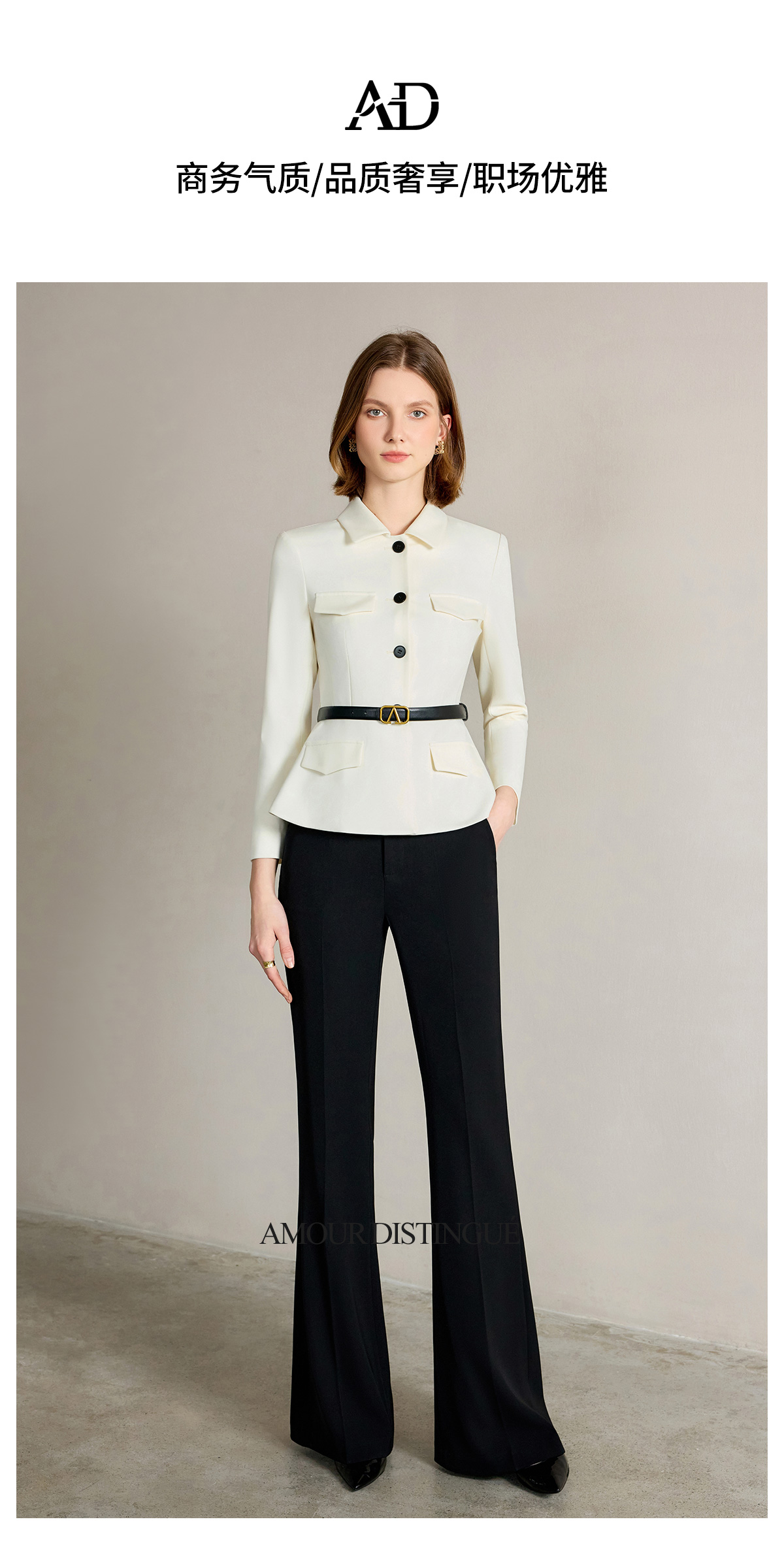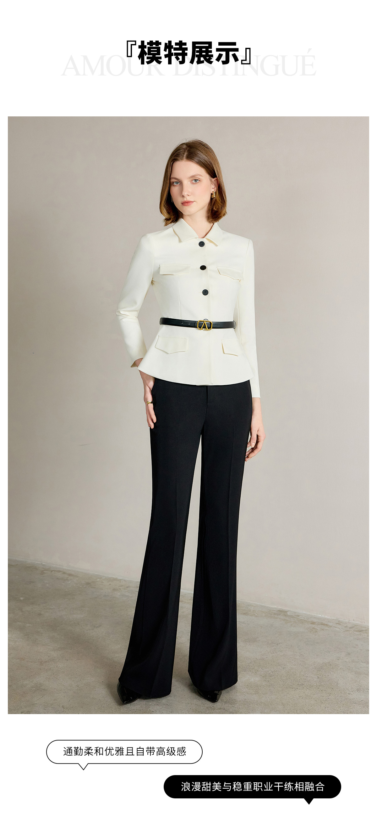 IWY/米白色西装套装【橄榄石午后】早春新款正式场合西装阔腿裤套装新款CP2242