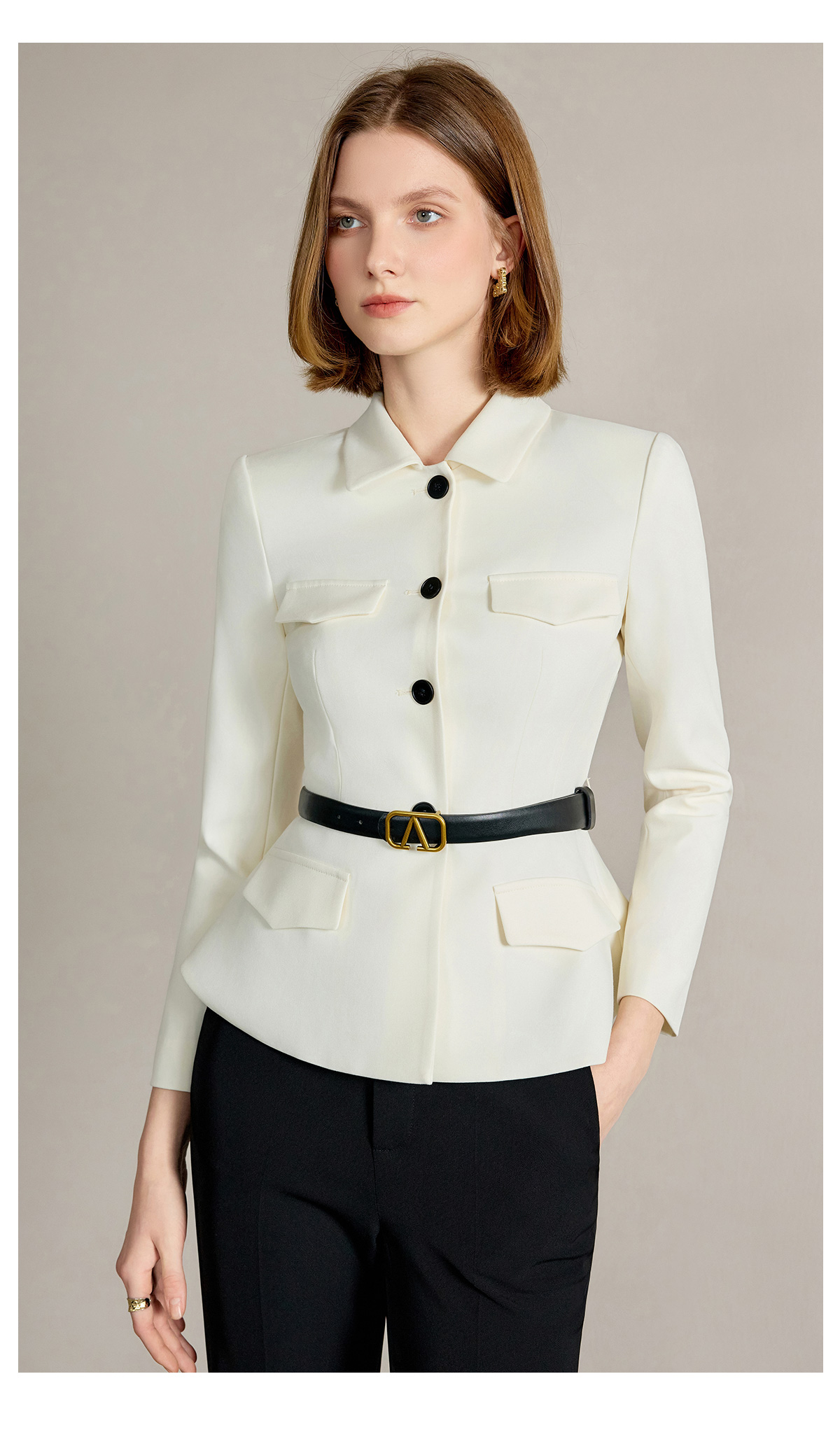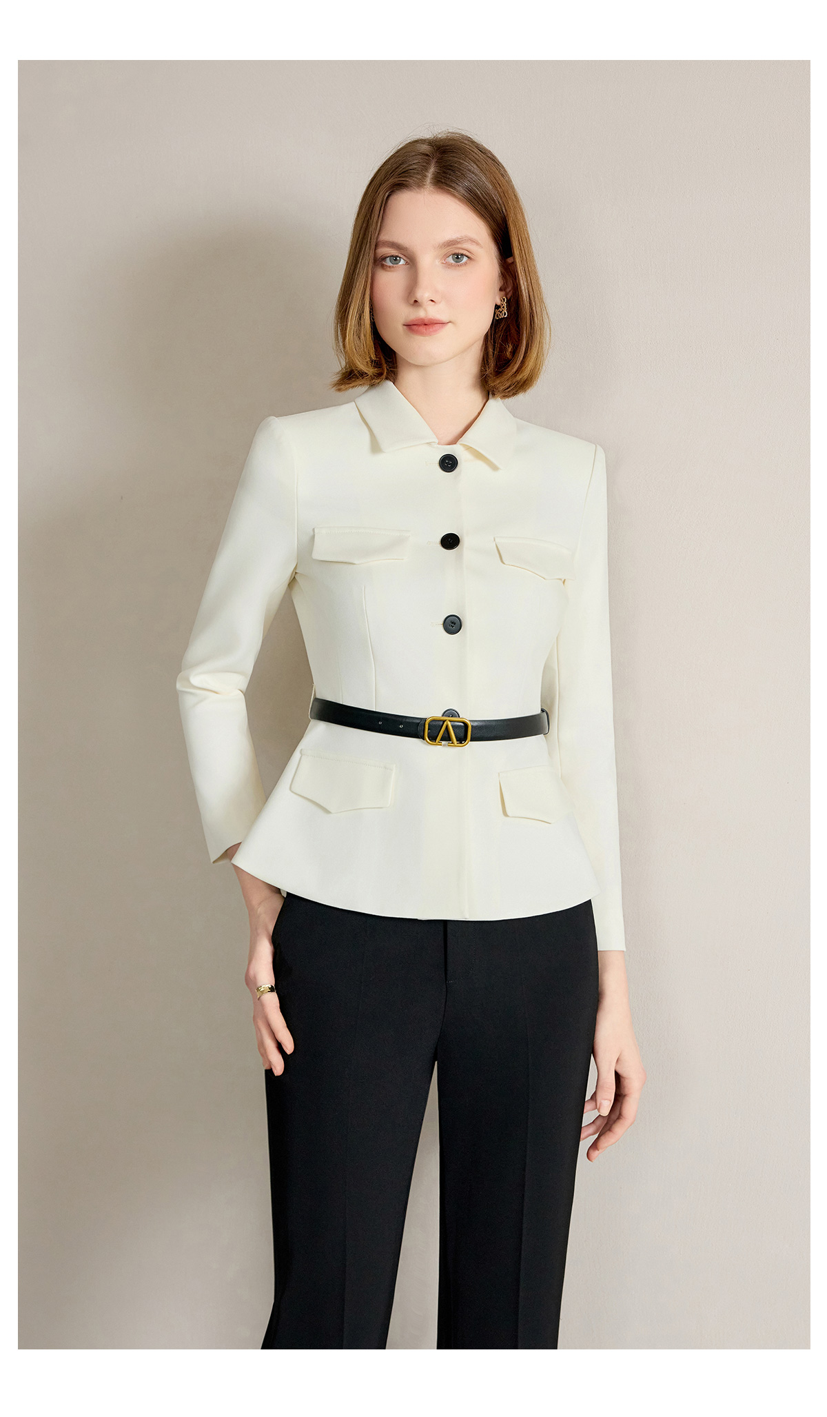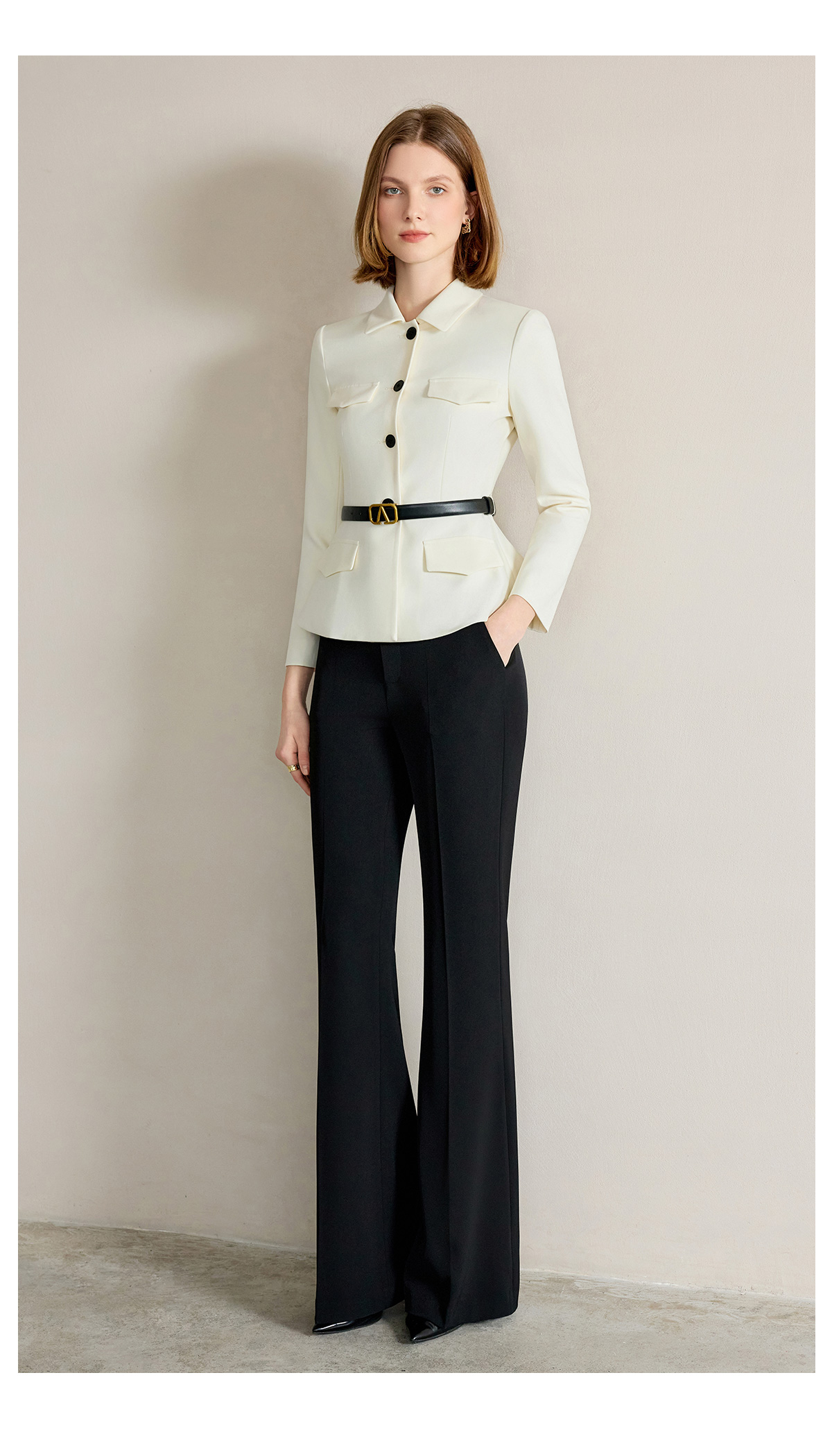 IWY/米白色西装套装【橄榄石午后】早春新款正式场合西装阔腿裤套装新款CP2242