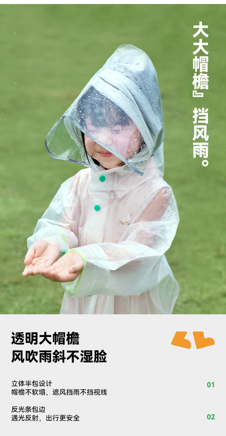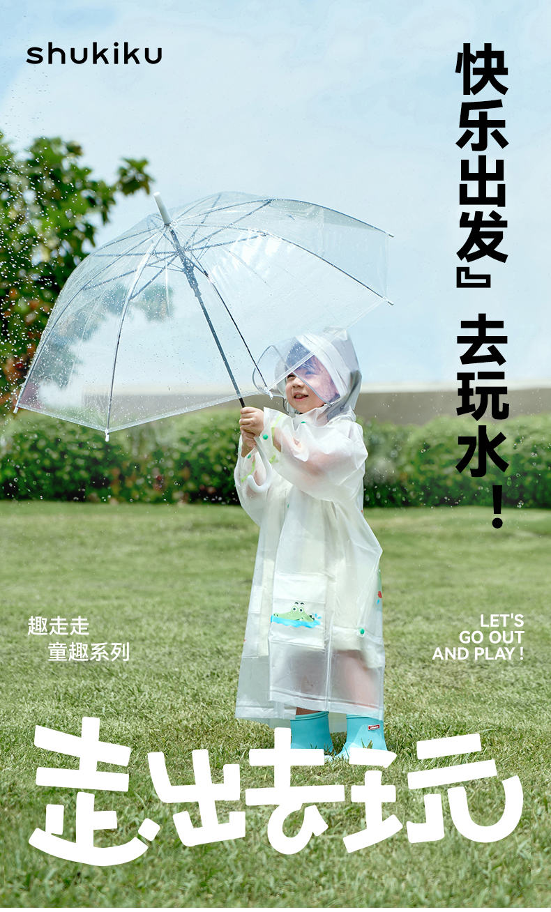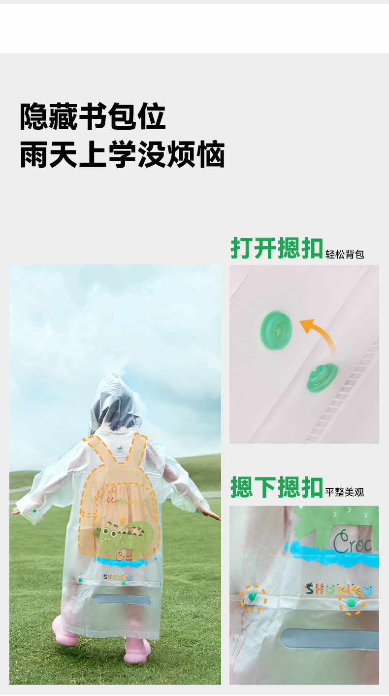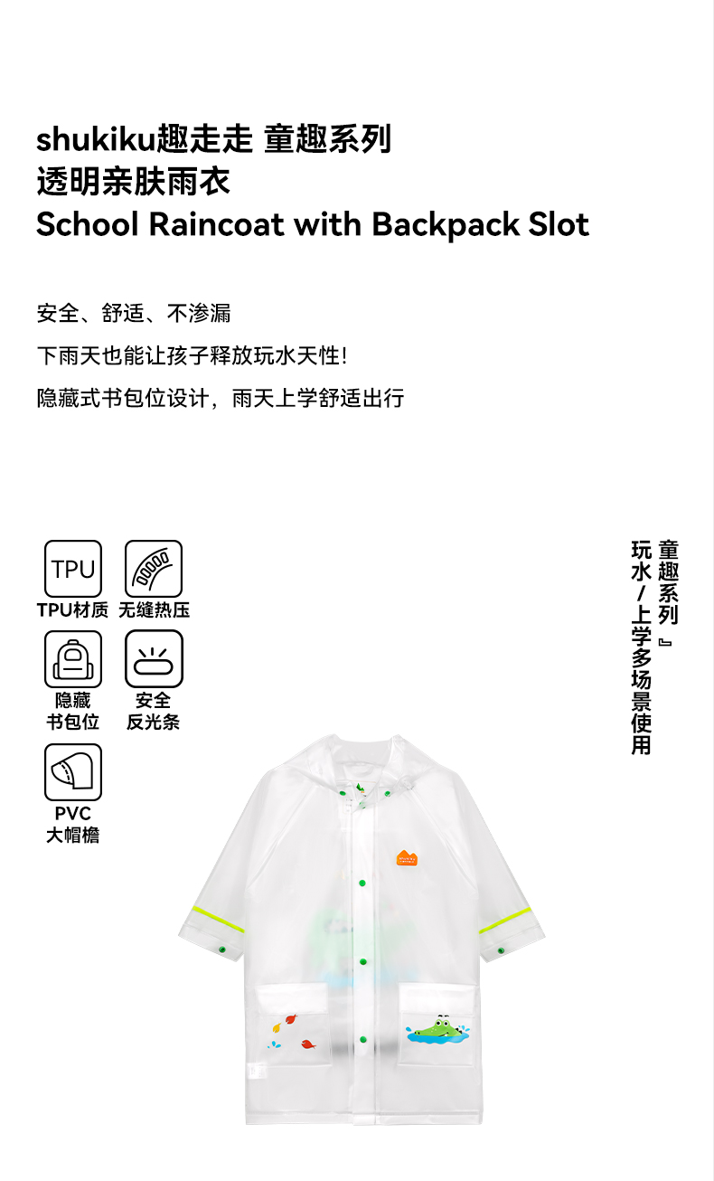 SHUKIKU儿童雨衣女童幼儿园小孩全身防水男童雨披长款防暴雨