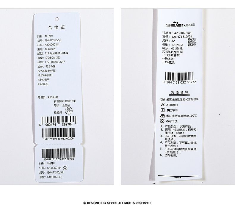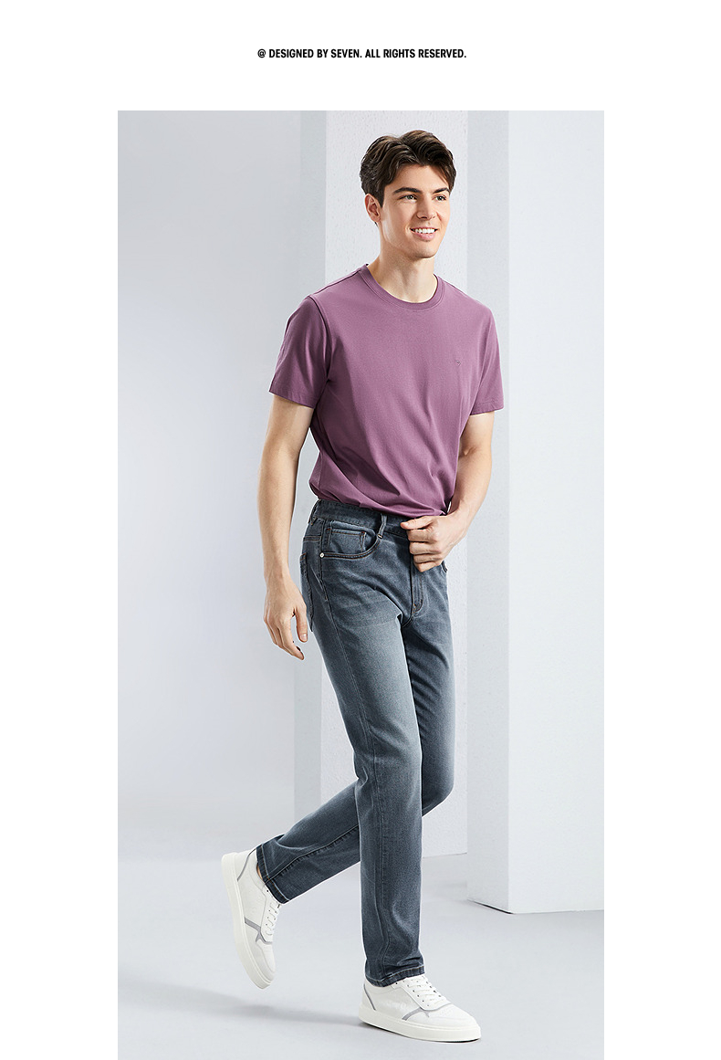 【含莱赛尔】柒牌直筒牛仔裤男2024春夏新款商务休闲男士九分长裤 126H71310