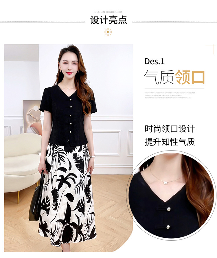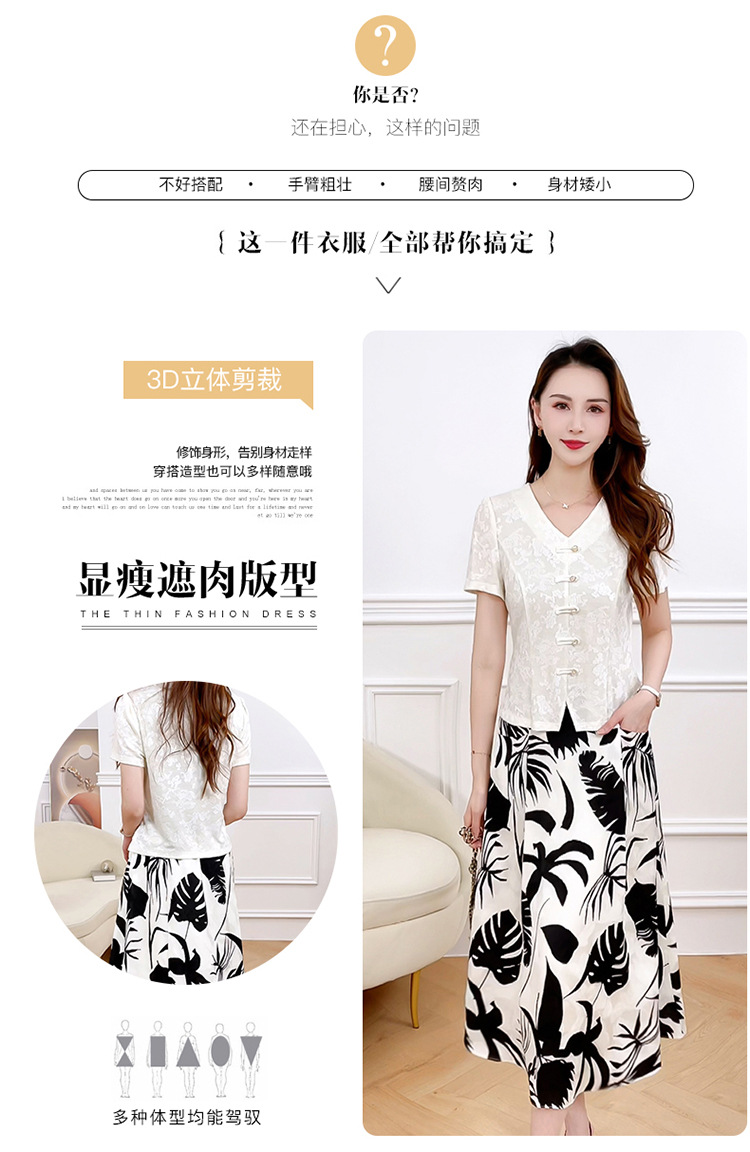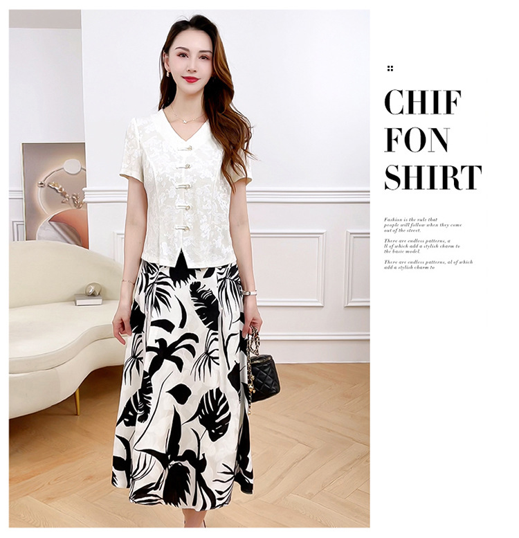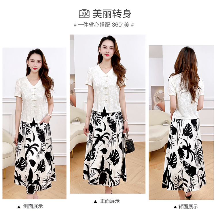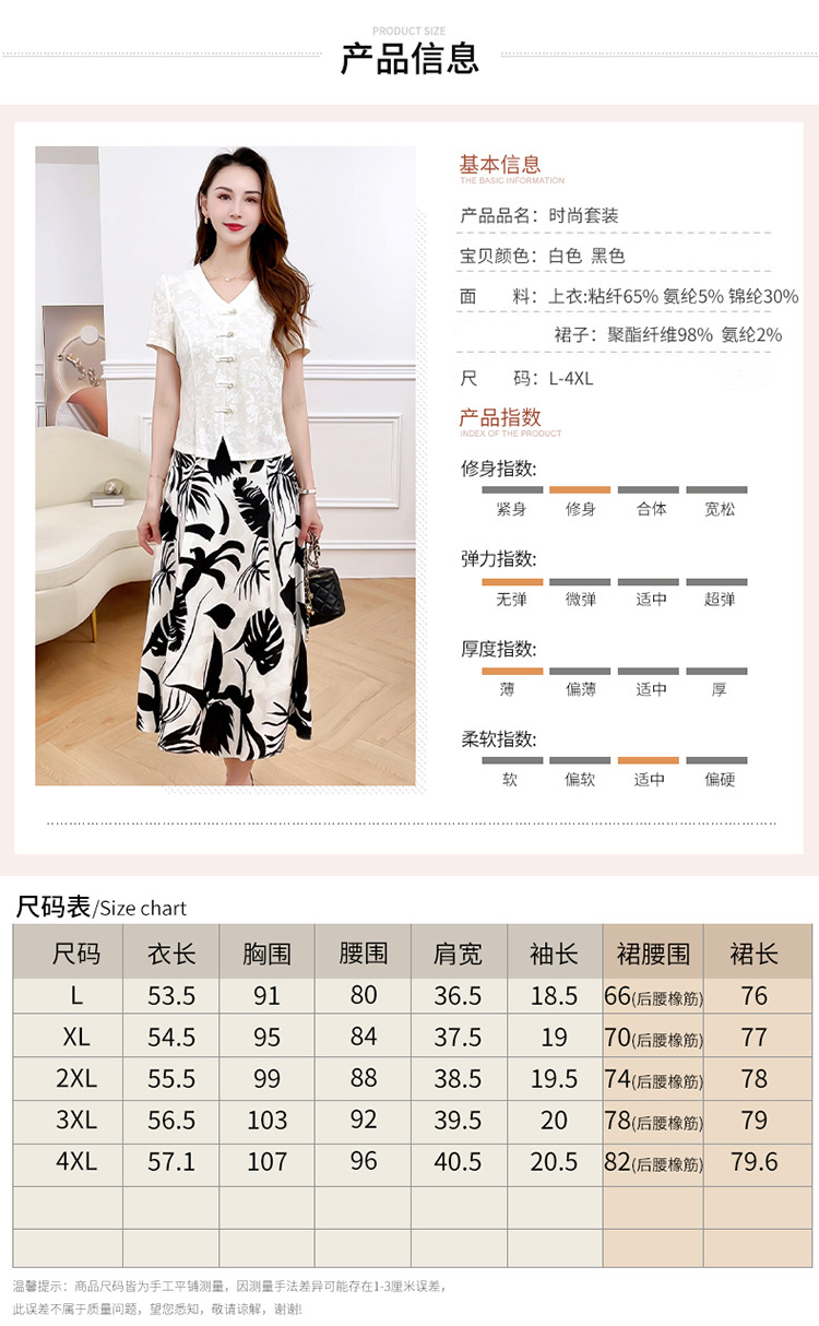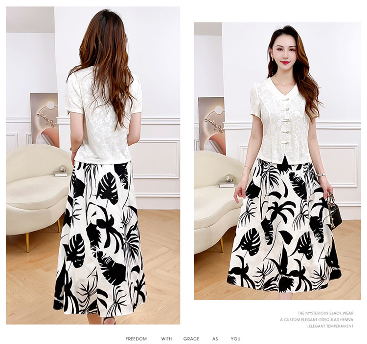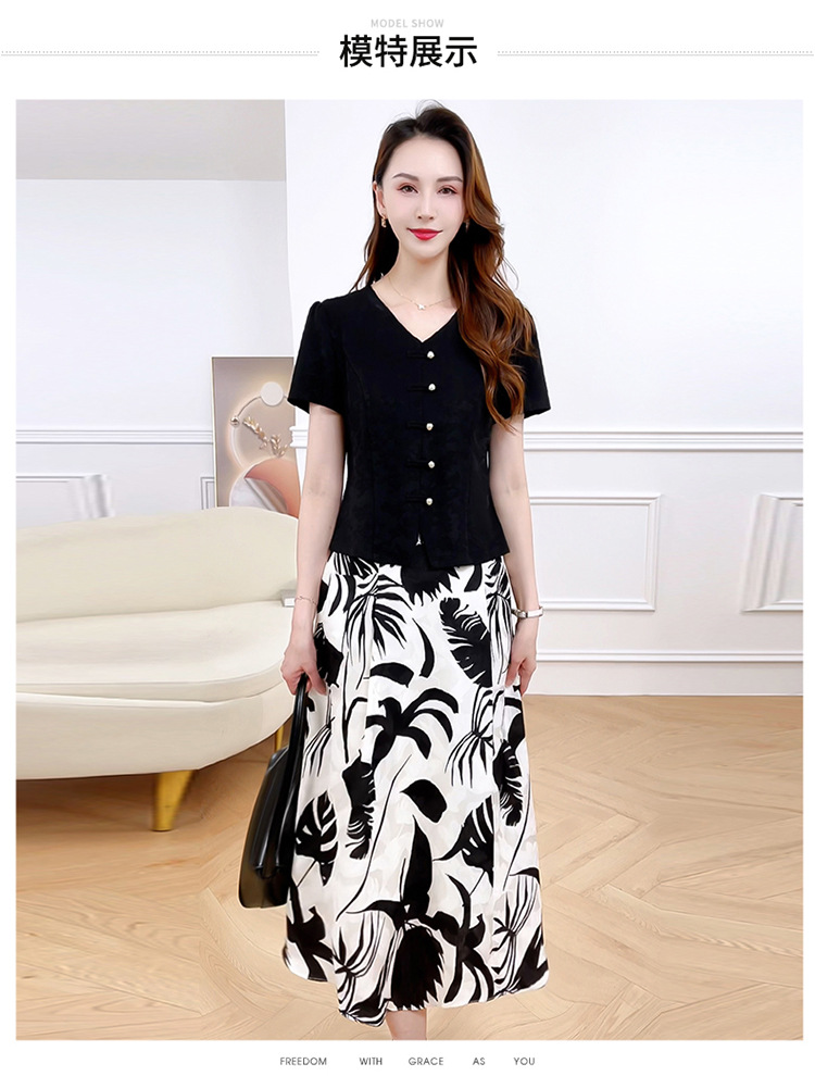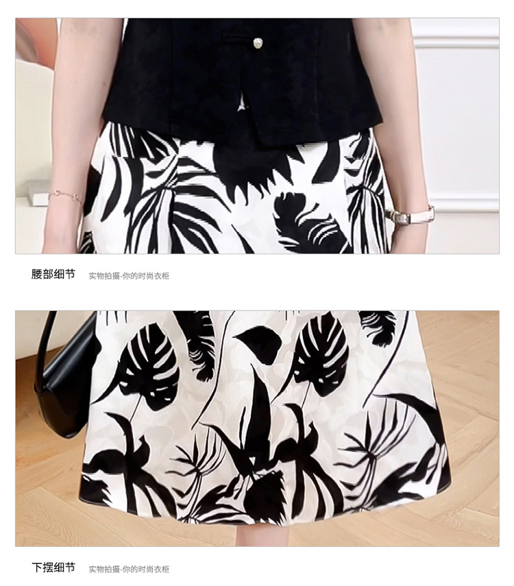 国风修身短袖小衫,印花中长款时尚休闲半身裙两件套QYM-XYKL-48139-L