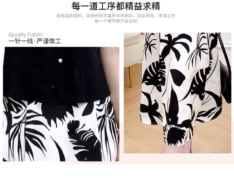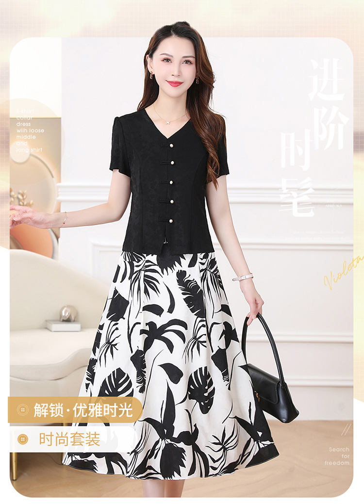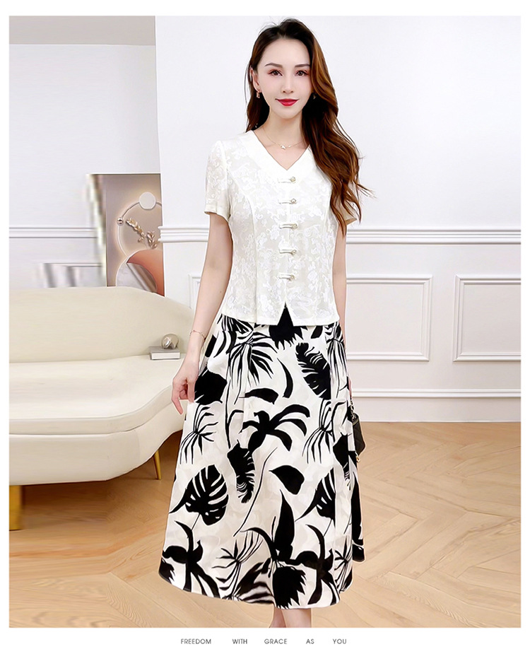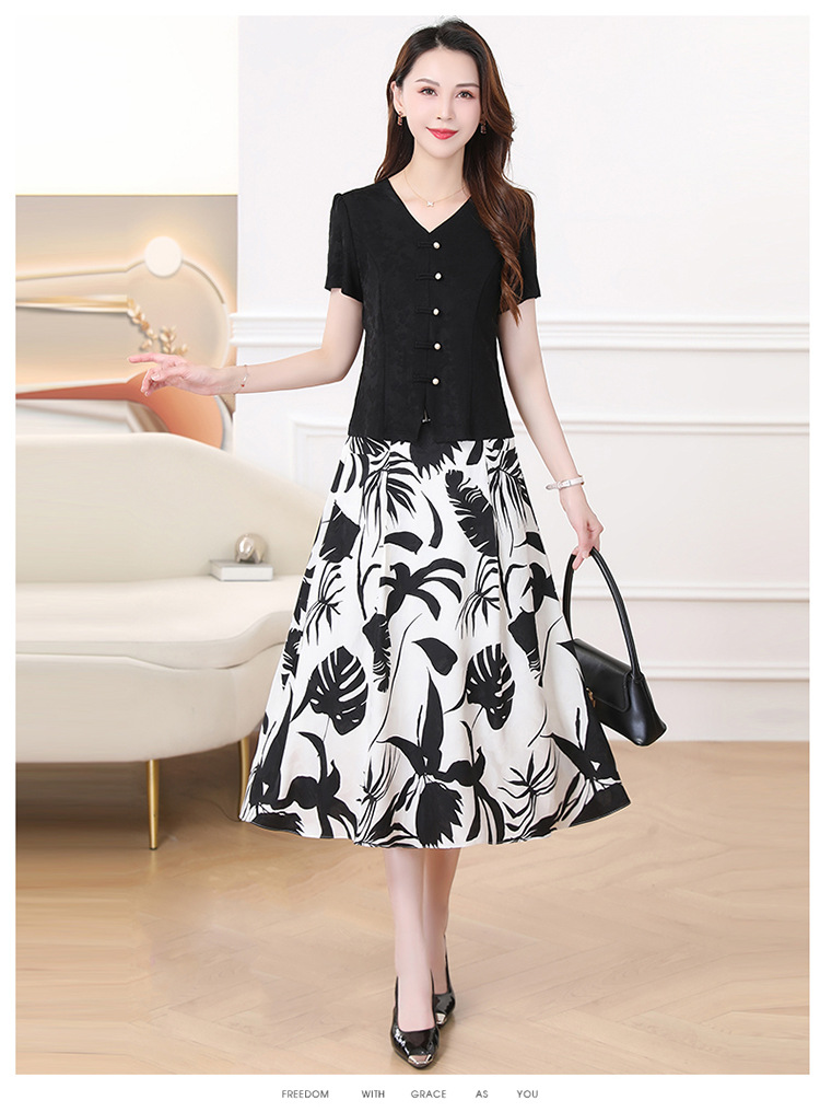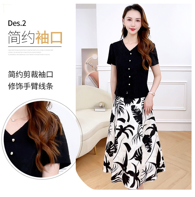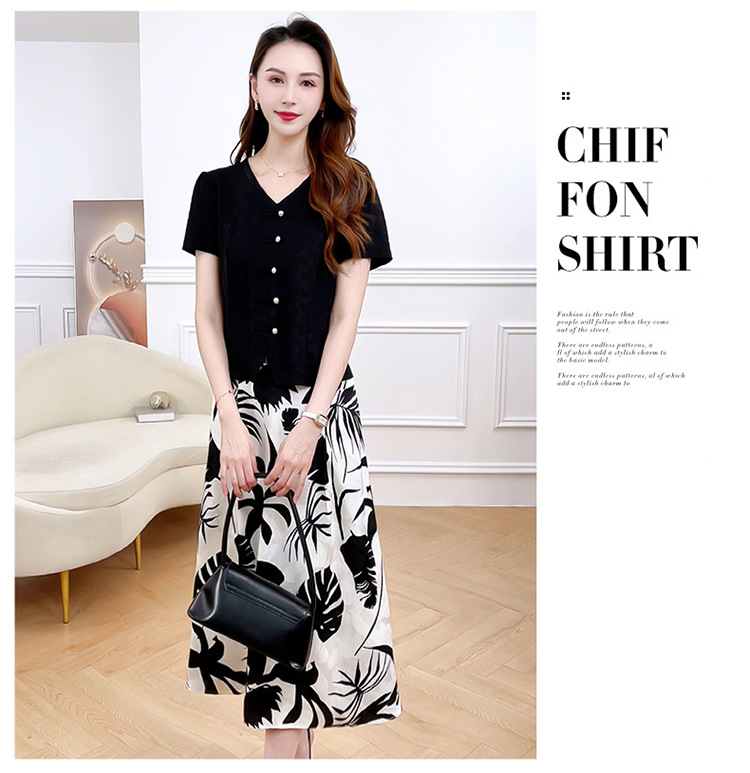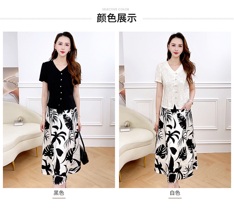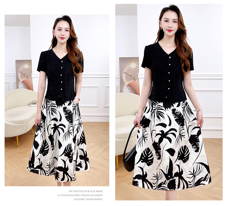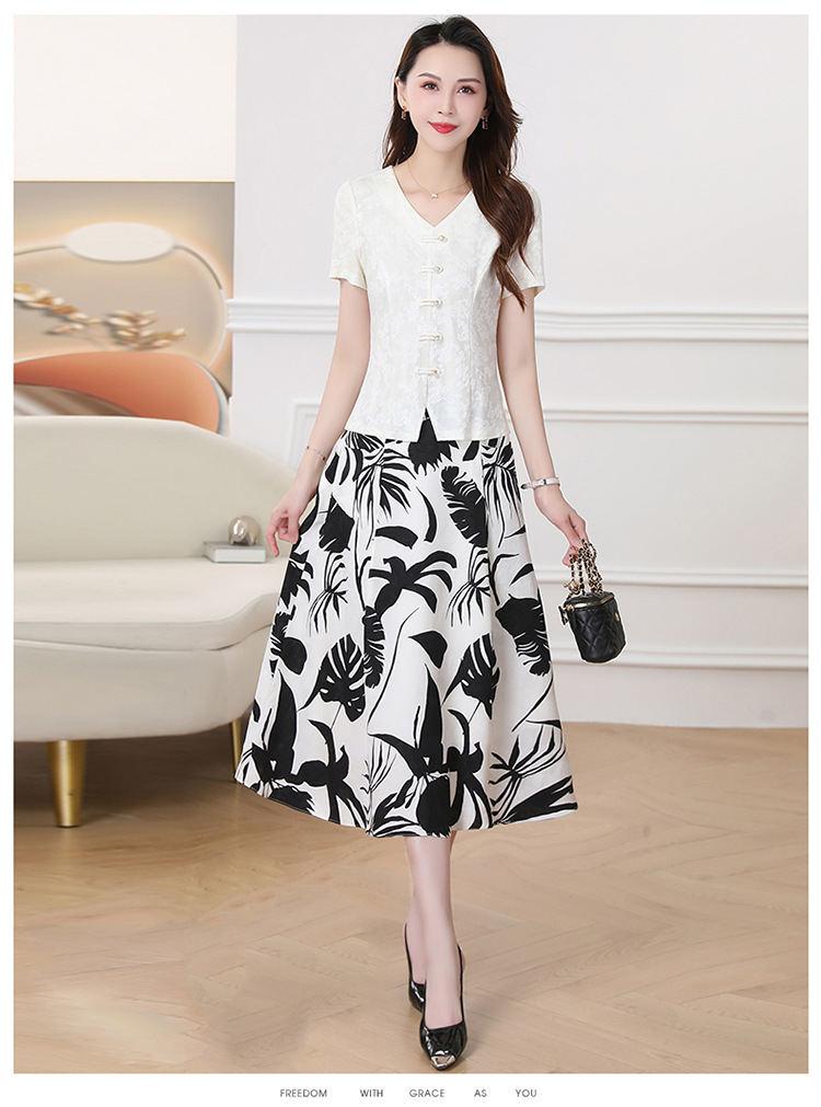 国风修身短袖小衫,印花中长款时尚休闲半身裙两件套QYM-XYKL-48139-L