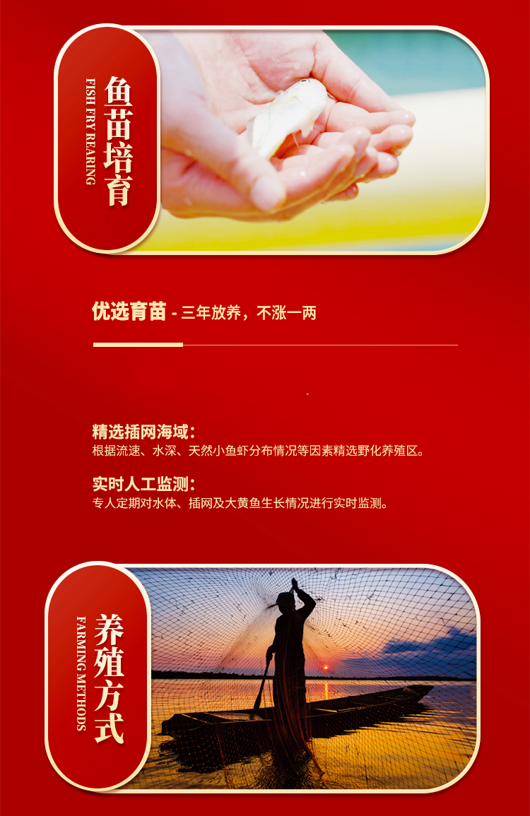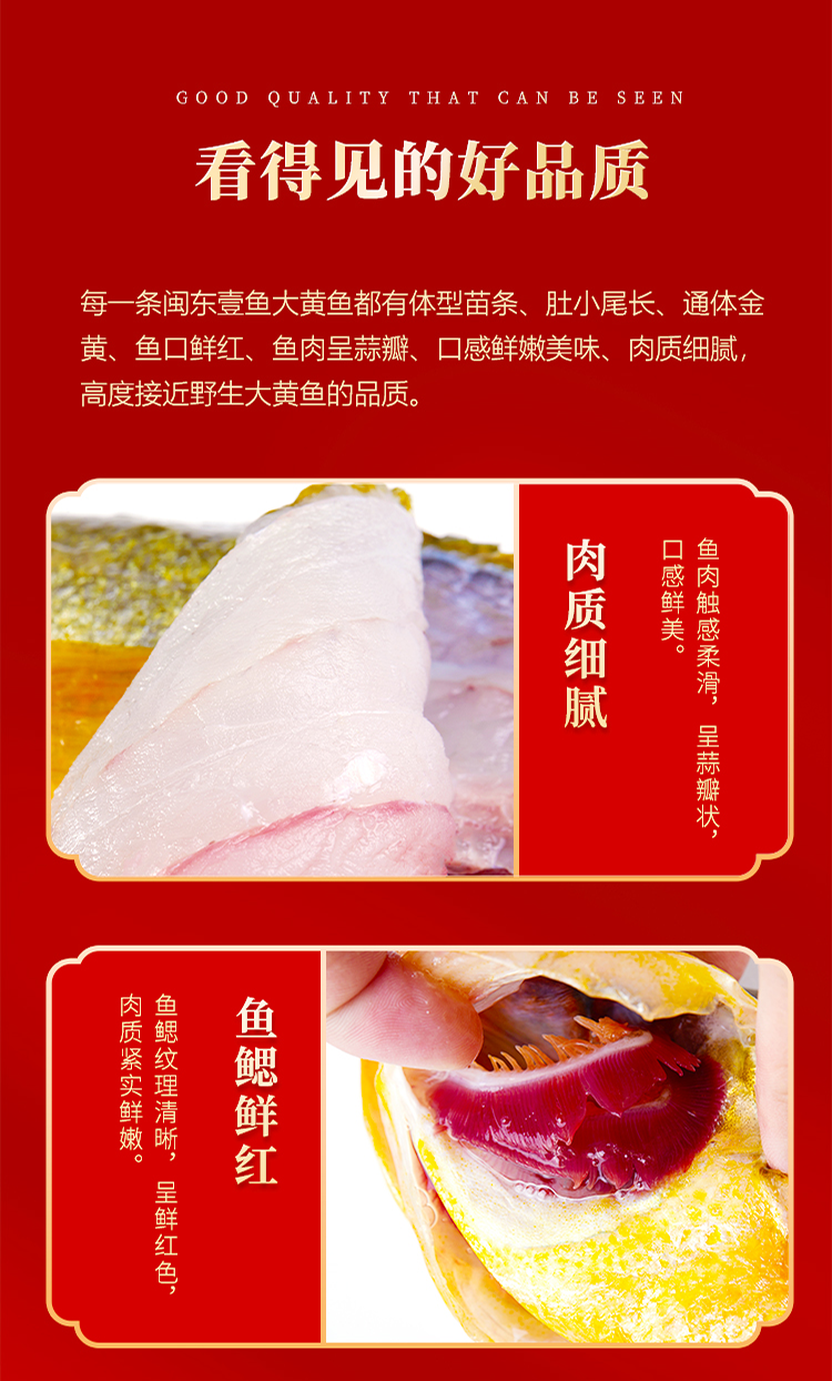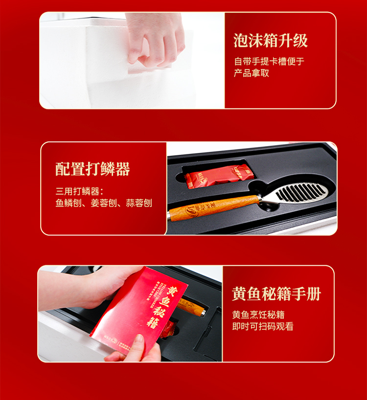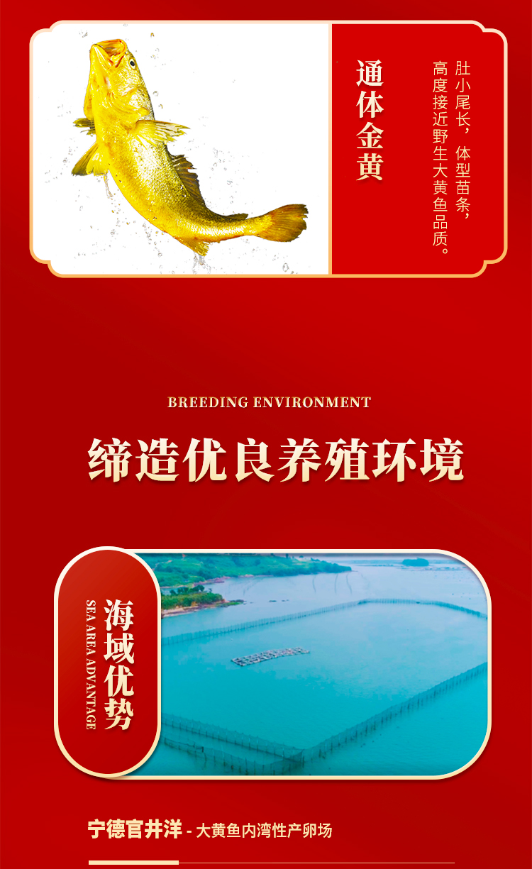 本礼盒严选产自闽东壹鱼的精品大黄鱼,凭借优越的地理优势与严格的养殖方式,只为您提供来自舌尖上的珍馐美味,带您感受那份来自大海的馈赠。