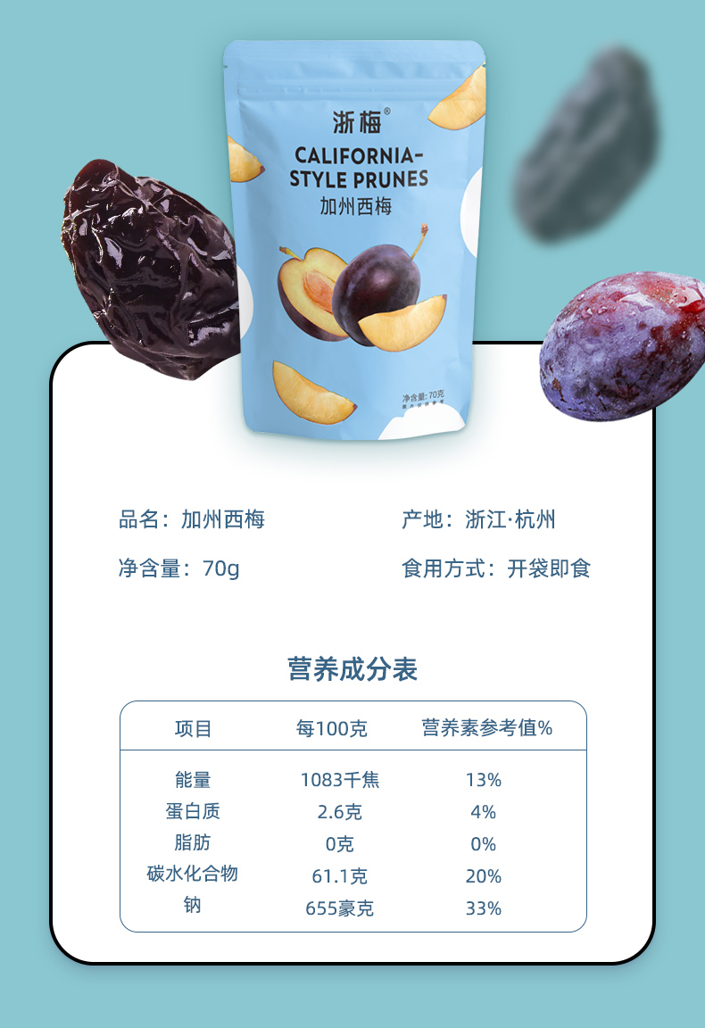 浙梅大西梅70g/袋*5袋 办公室蜜饯零食加州西梅