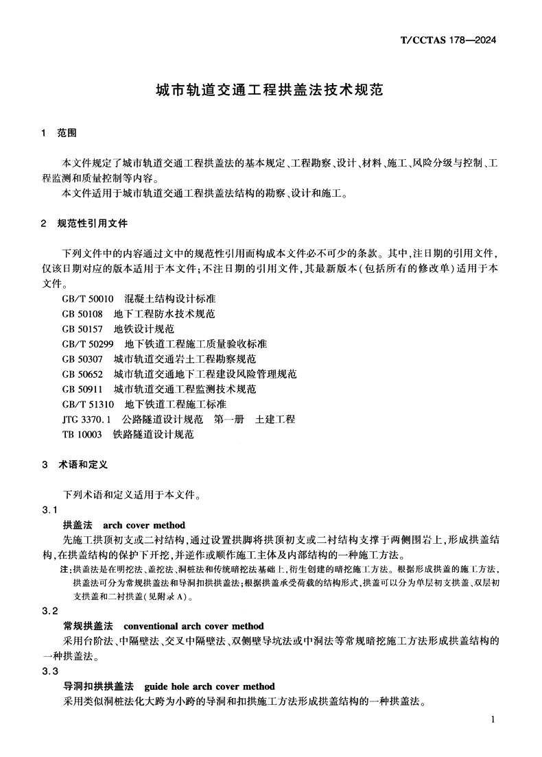 书名:城市轨道交通工程拱盖法技术规范T/CCTAS 178—2024