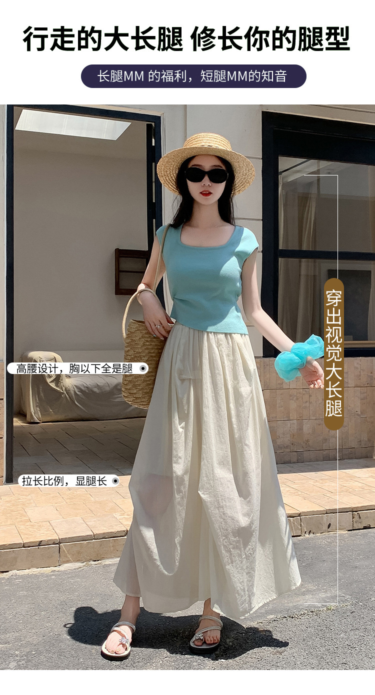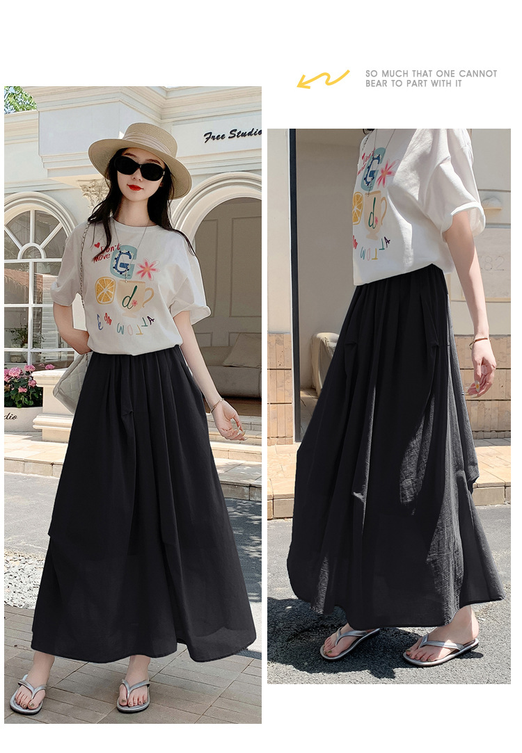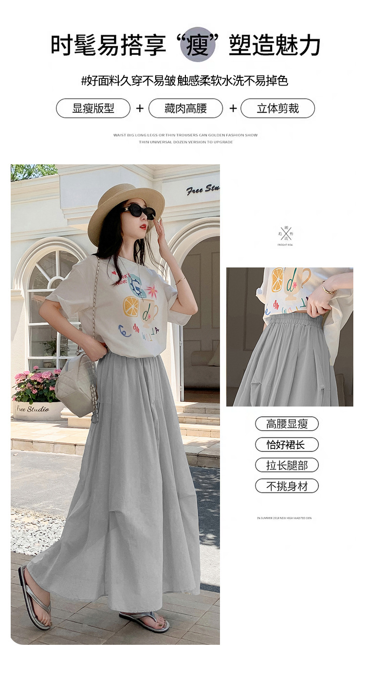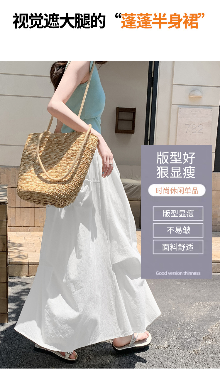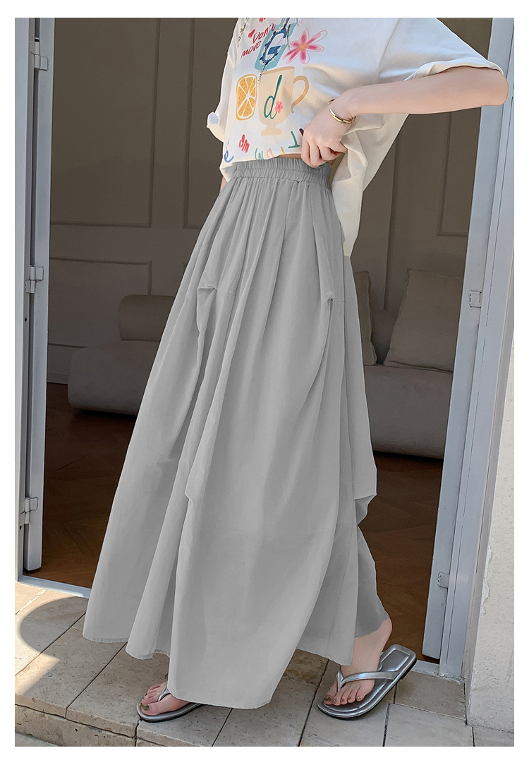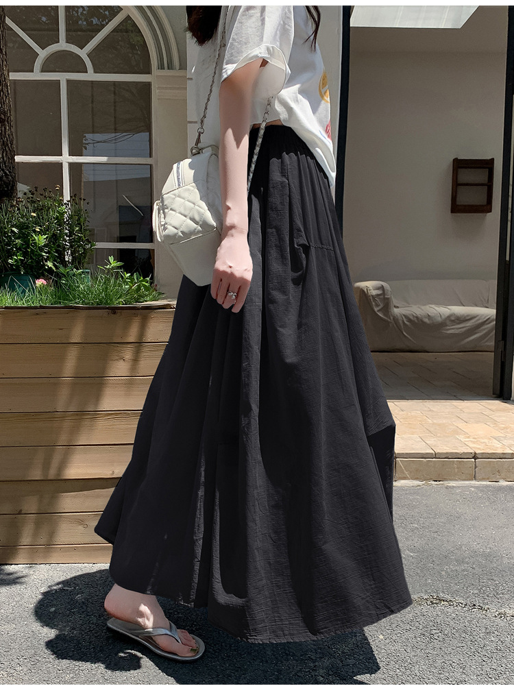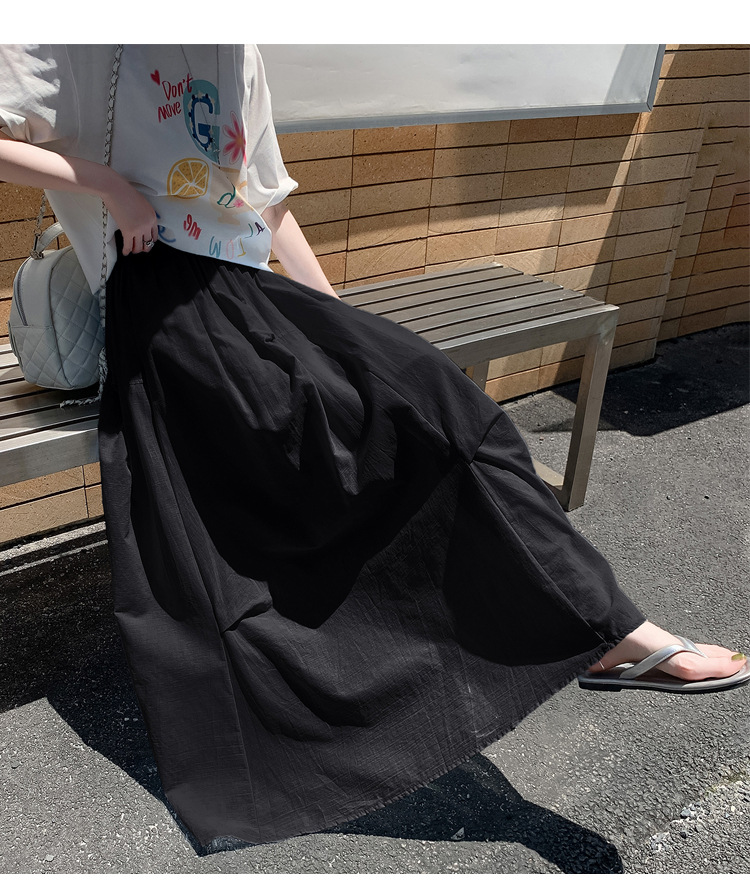 复古不规则半身裙 夏季松紧高腰显瘦休闲百搭垂坠感A字大摆半裙