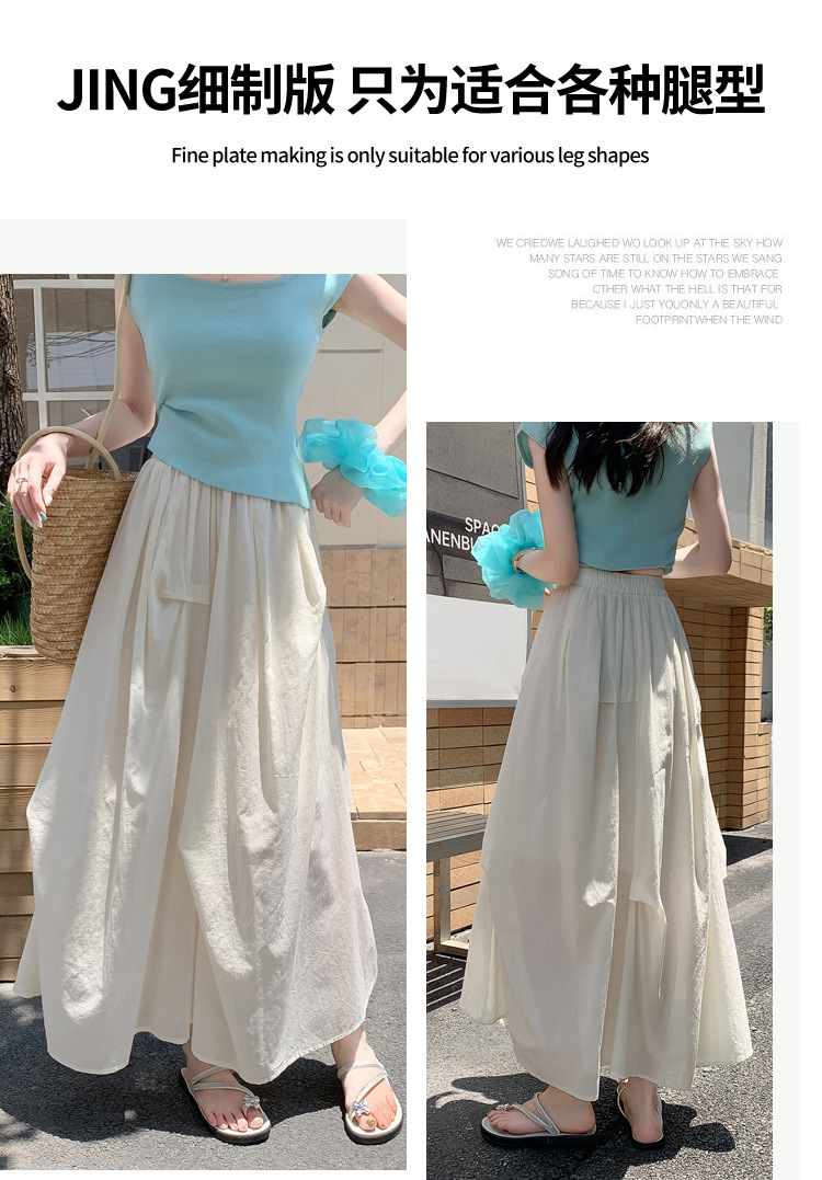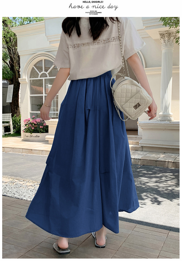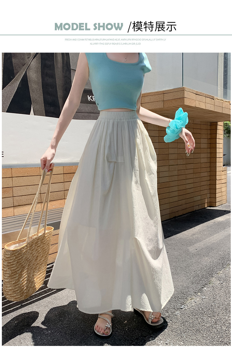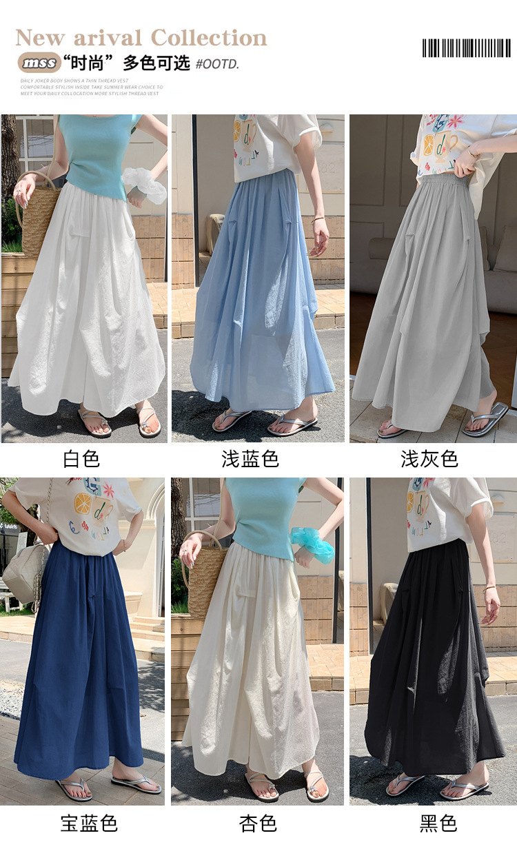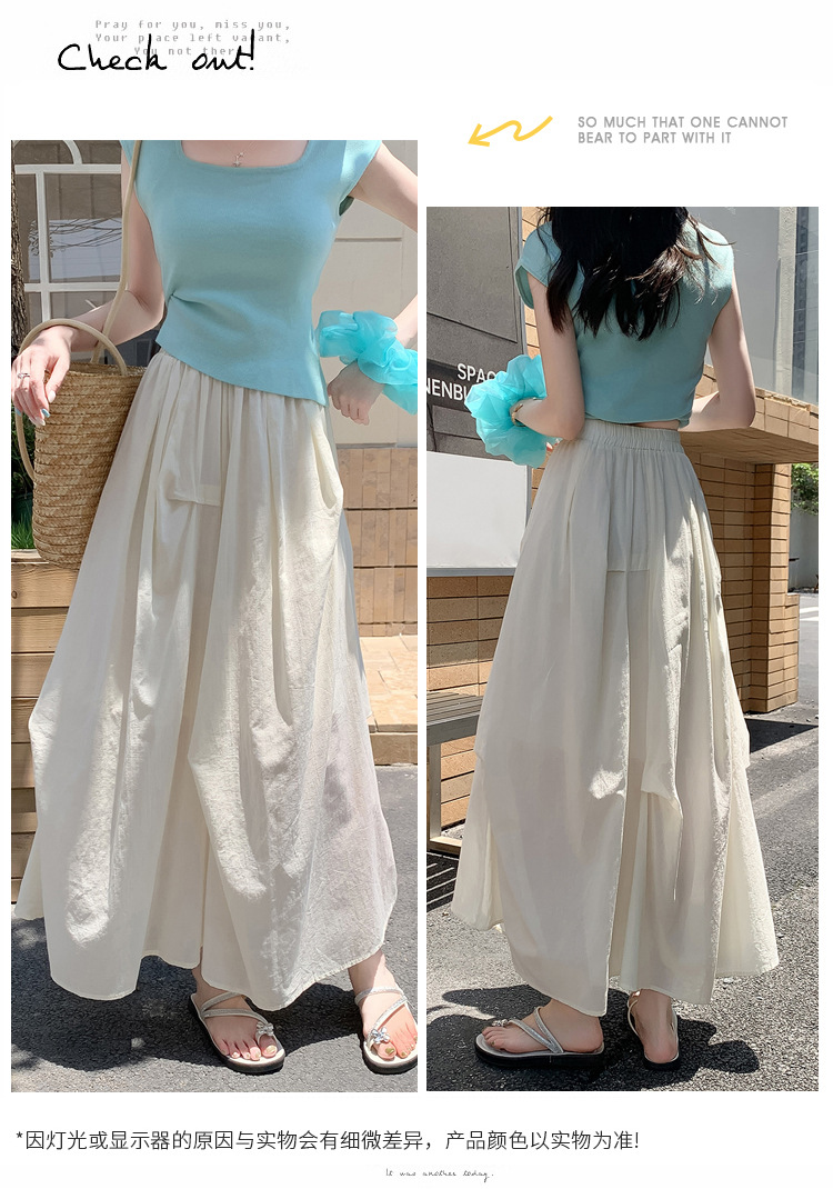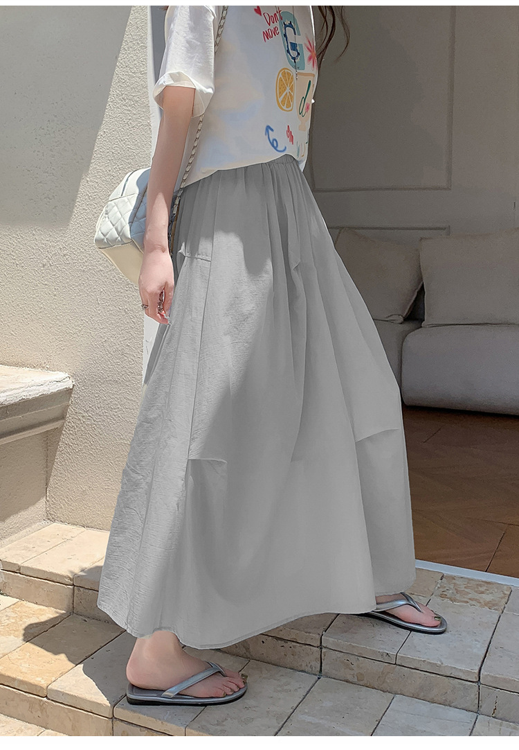 复古不规则半身裙 夏季松紧高腰显瘦休闲百搭垂坠感A字大摆半裙