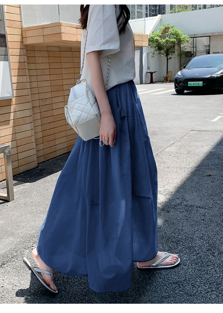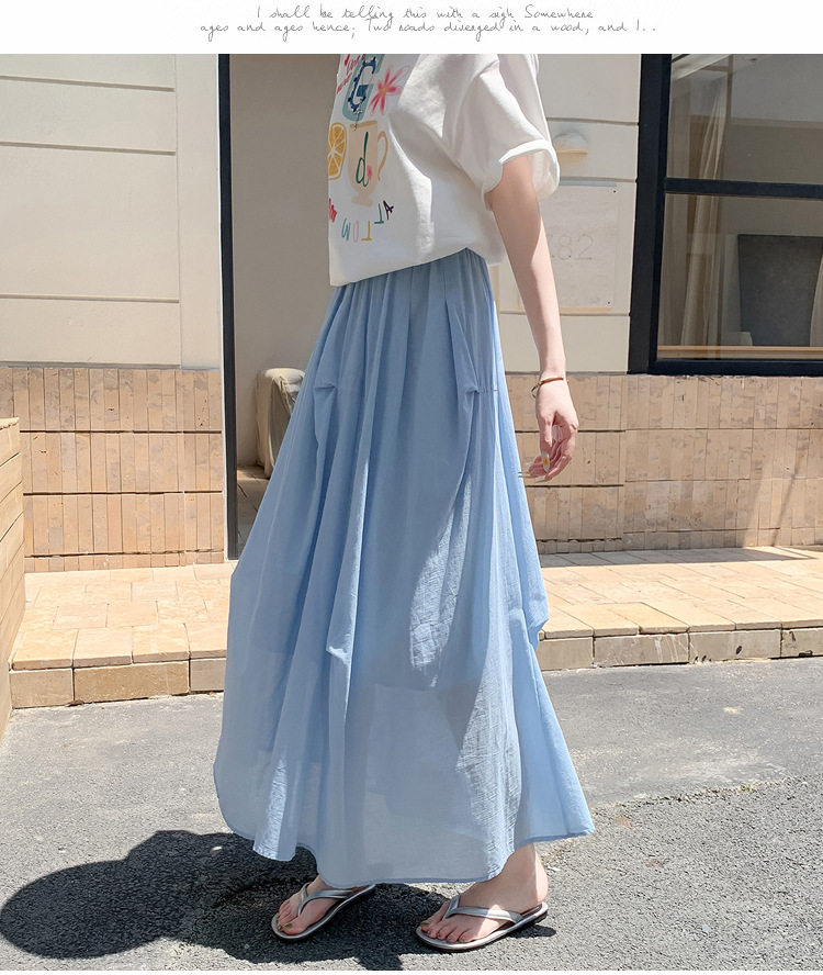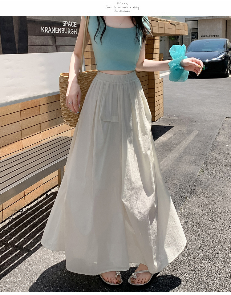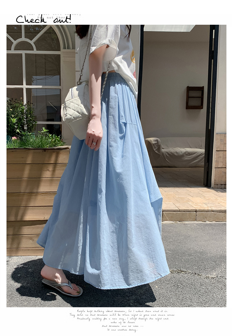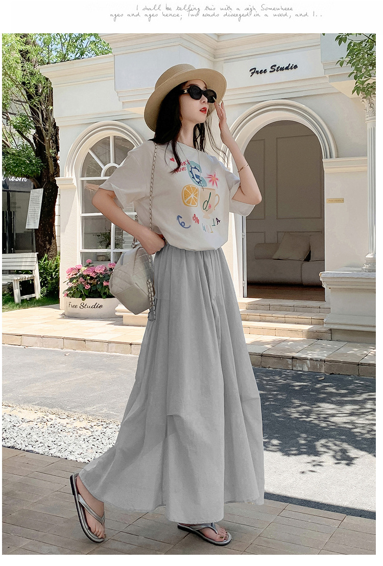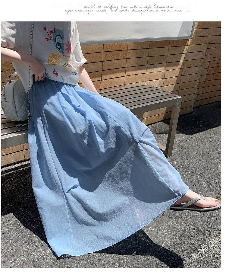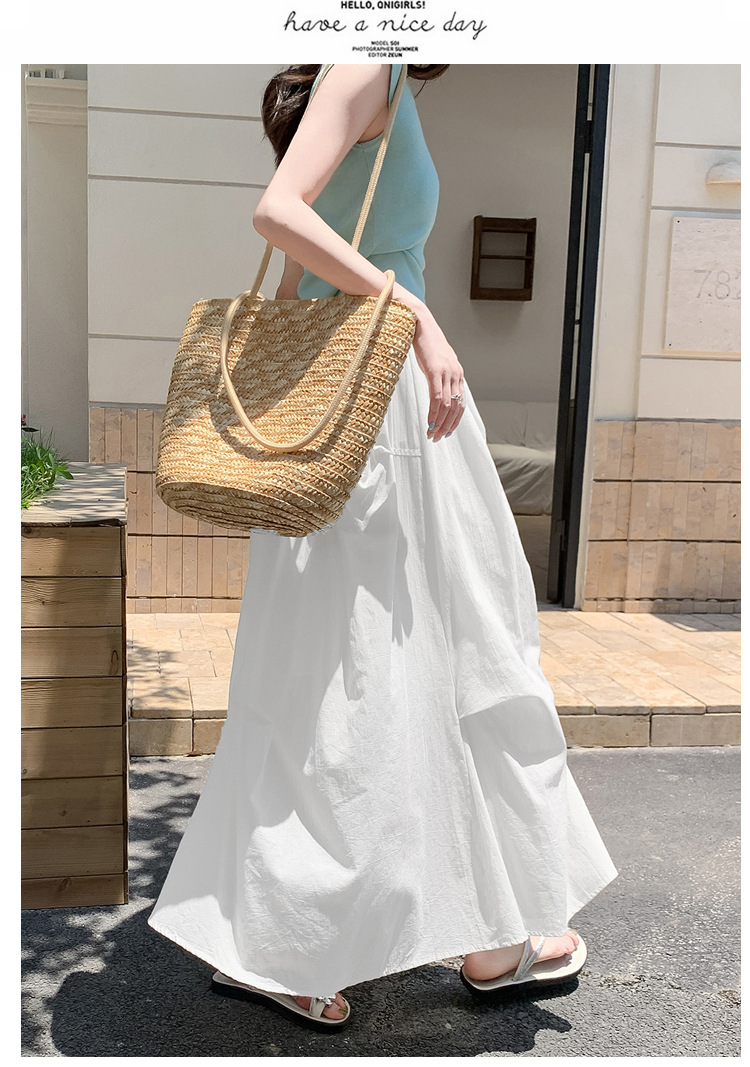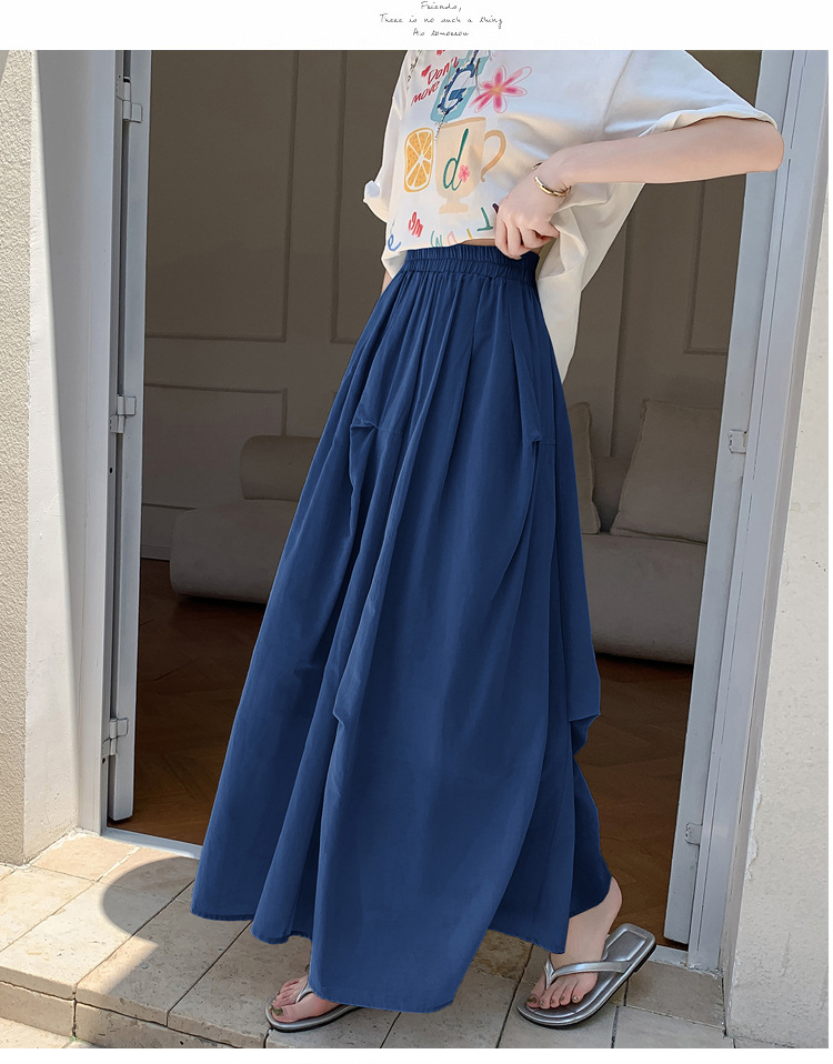 复古不规则半身裙 夏季松紧高腰显瘦休闲百搭垂坠感A字大摆半裙