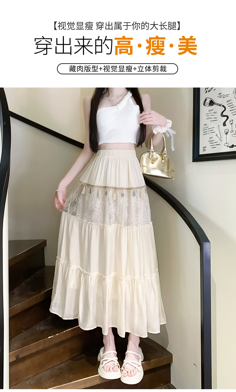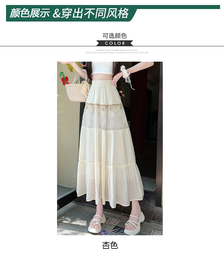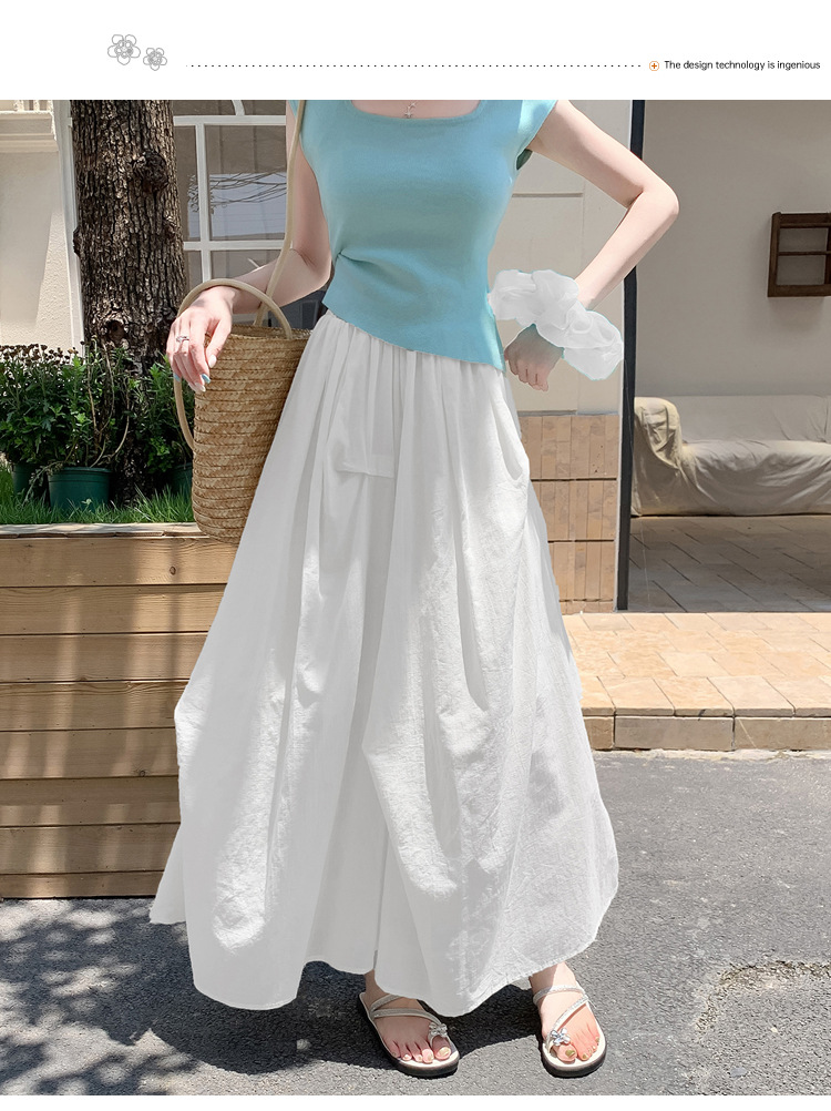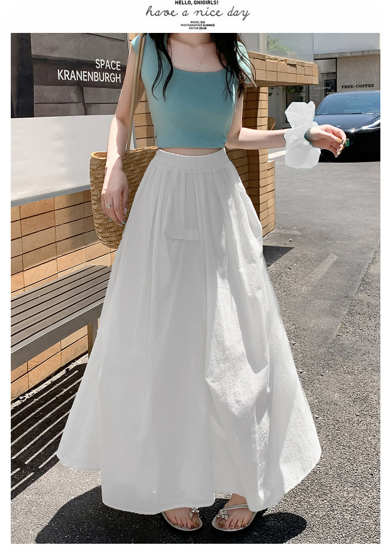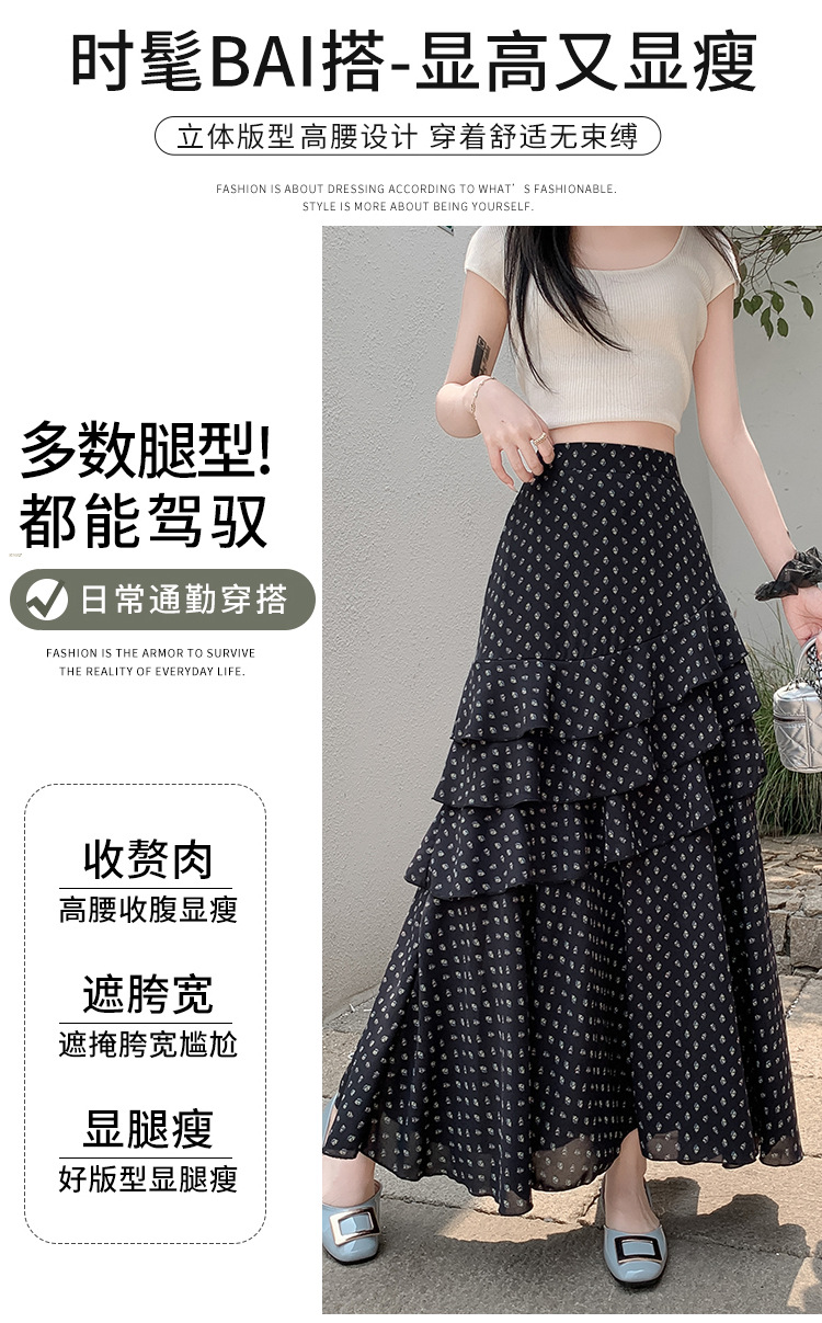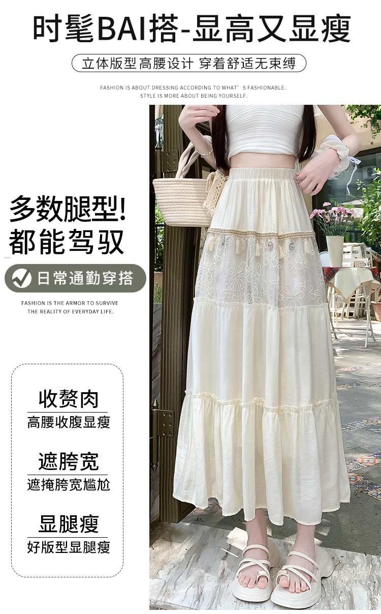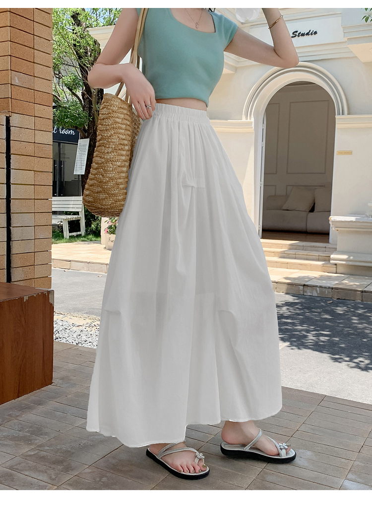 复古不规则半身裙 夏季松紧高腰显瘦休闲百搭垂坠感A字大摆半裙