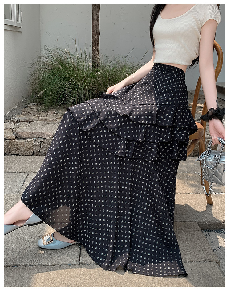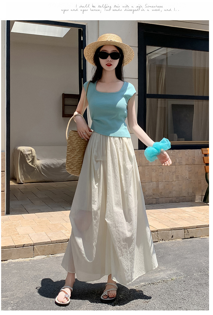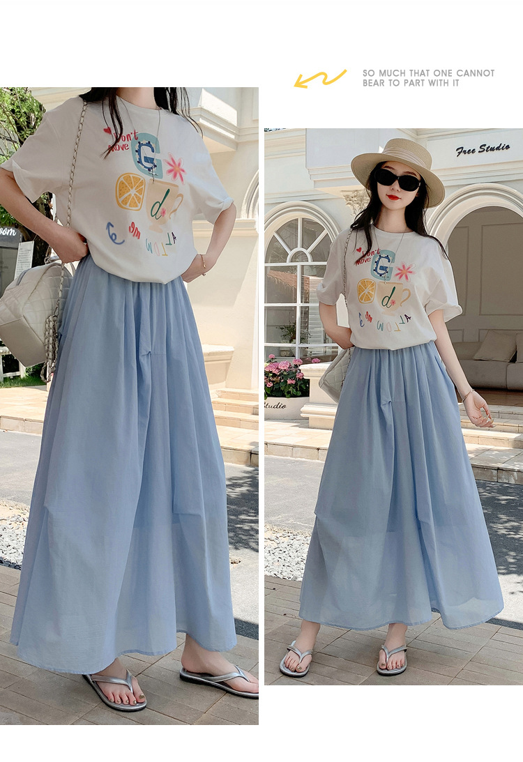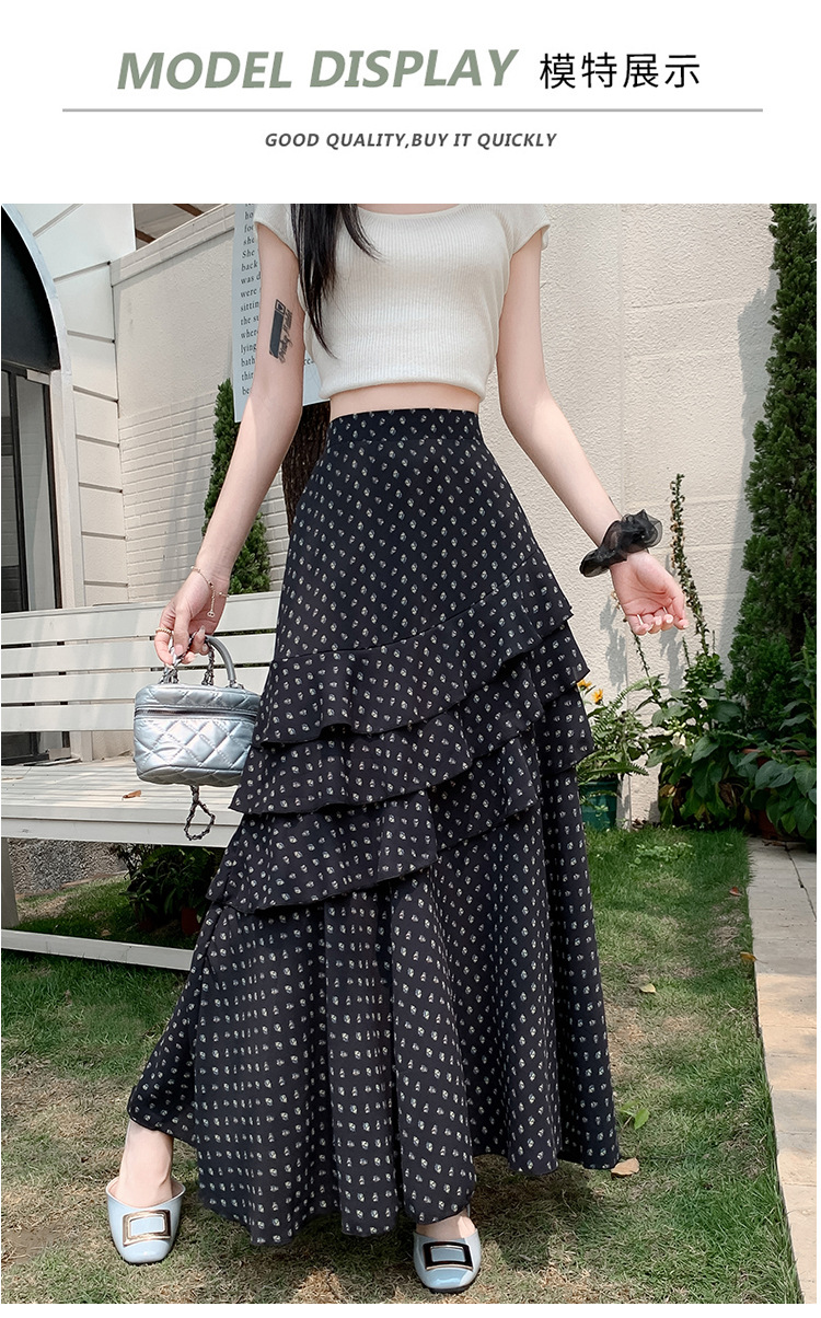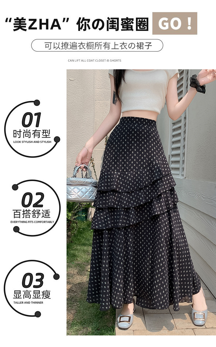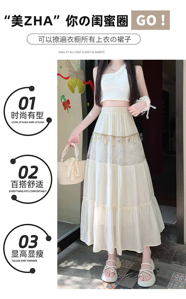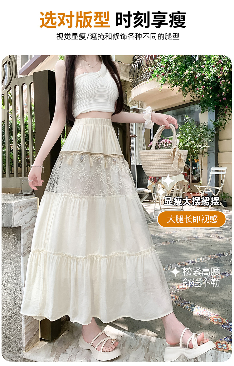 复古不规则半身裙 夏季松紧高腰显瘦休闲百搭垂坠感A字大摆半裙