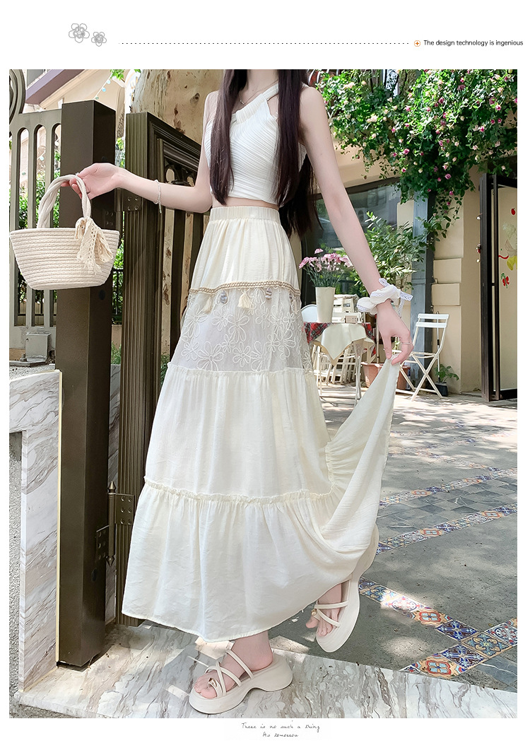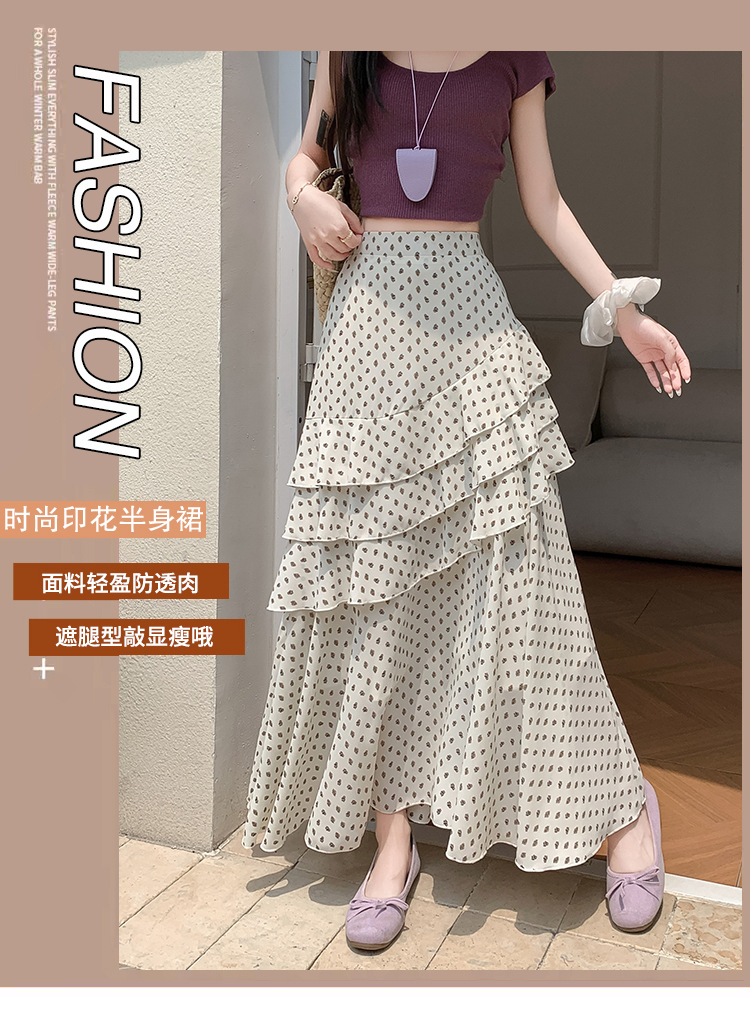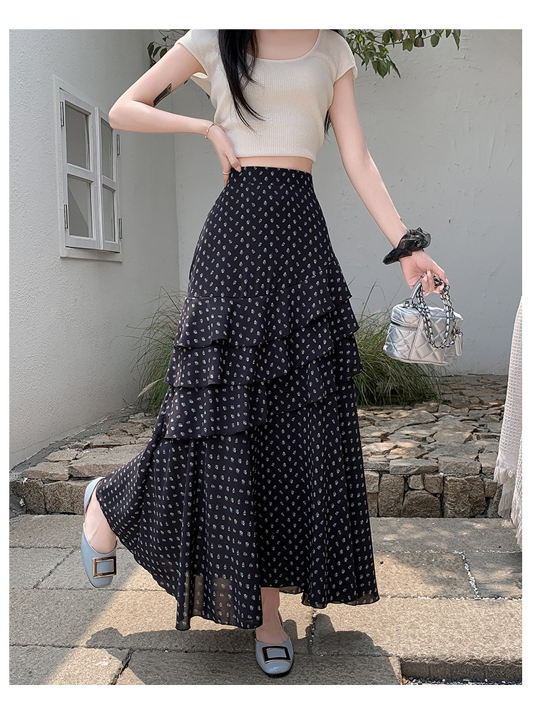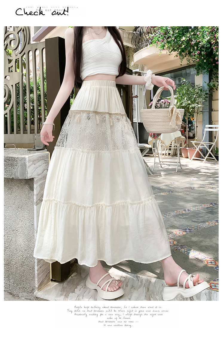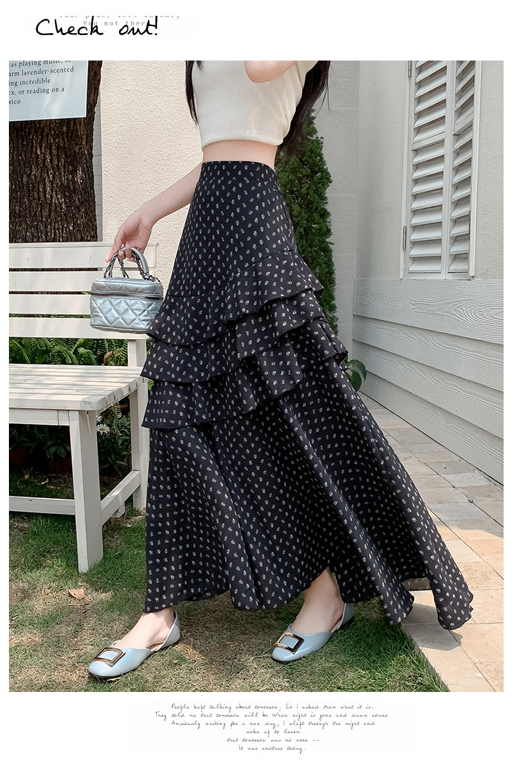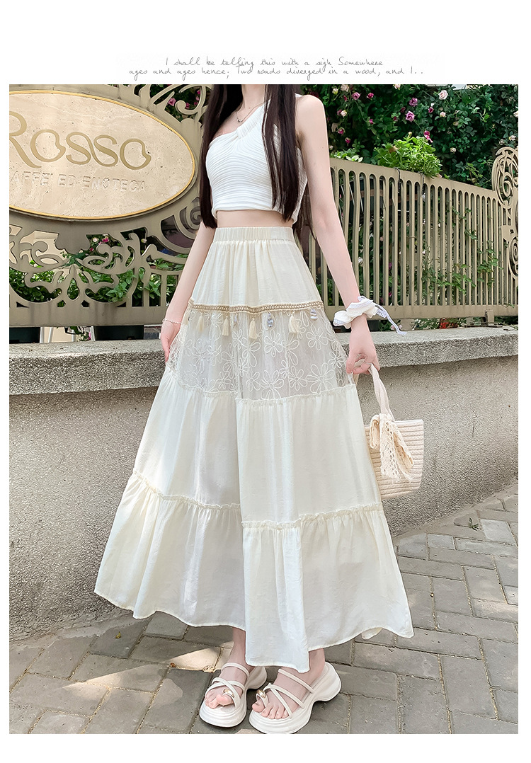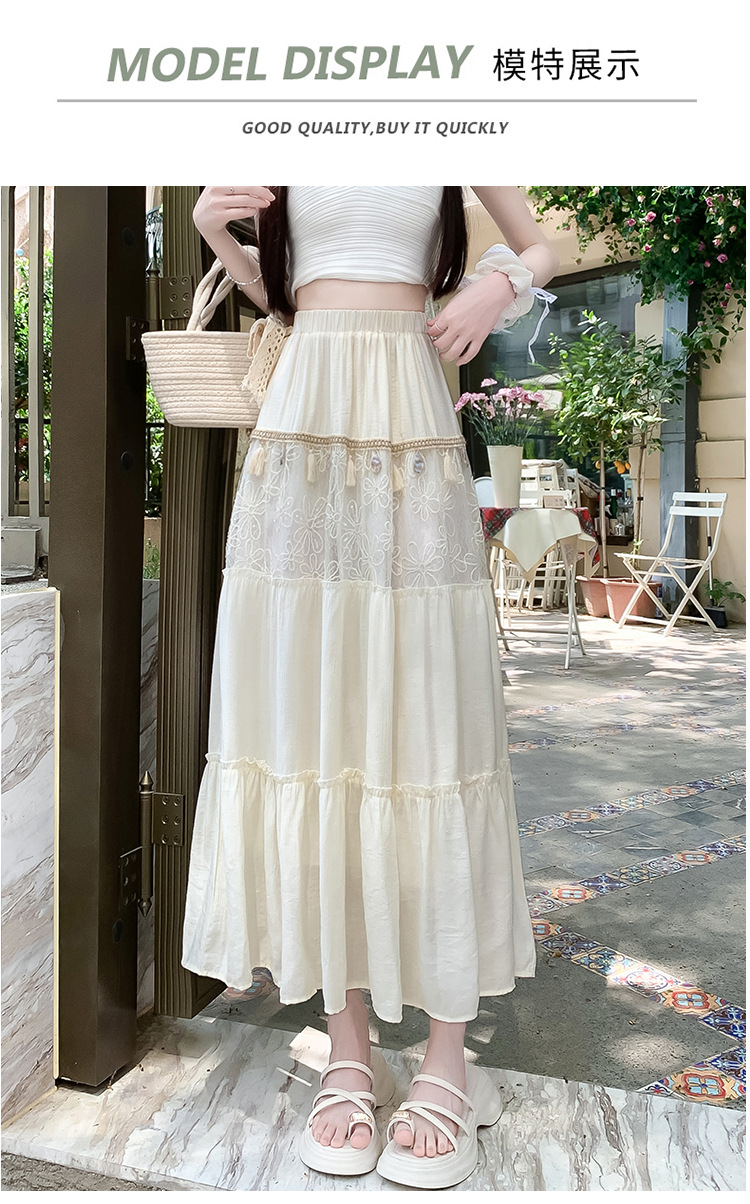 复古不规则半身裙 夏季松紧高腰显瘦休闲百搭垂坠感A字大摆半裙