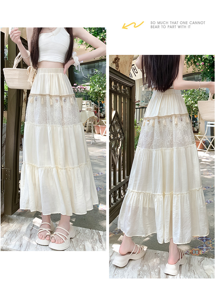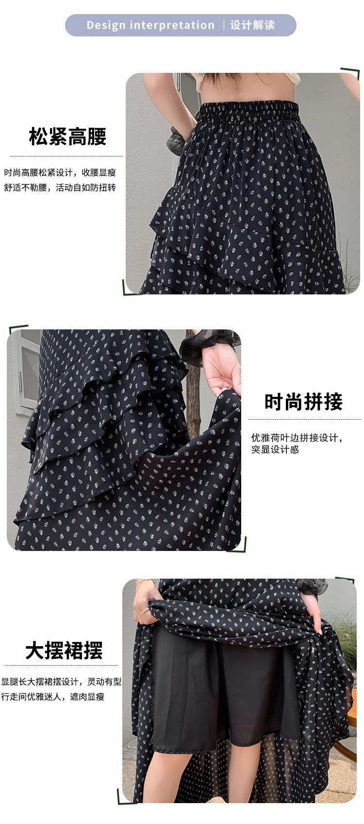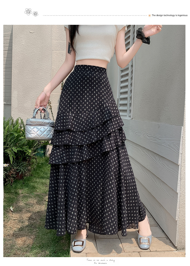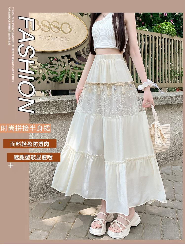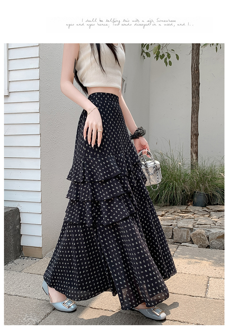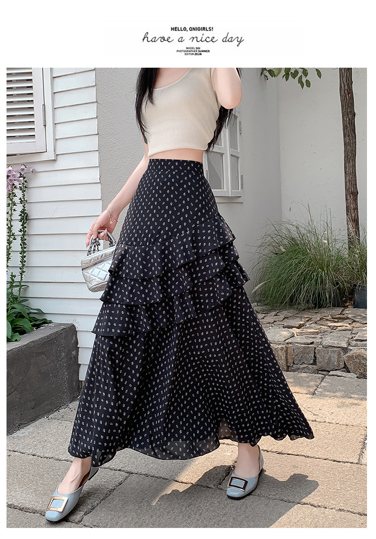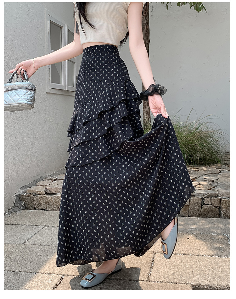 复古不规则半身裙 夏季松紧高腰显瘦休闲百搭垂坠感A字大摆半裙