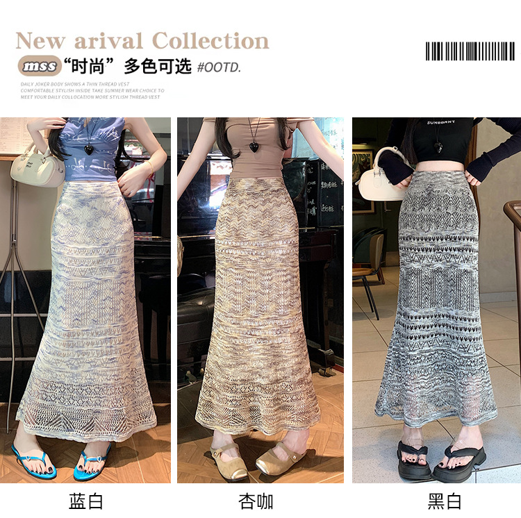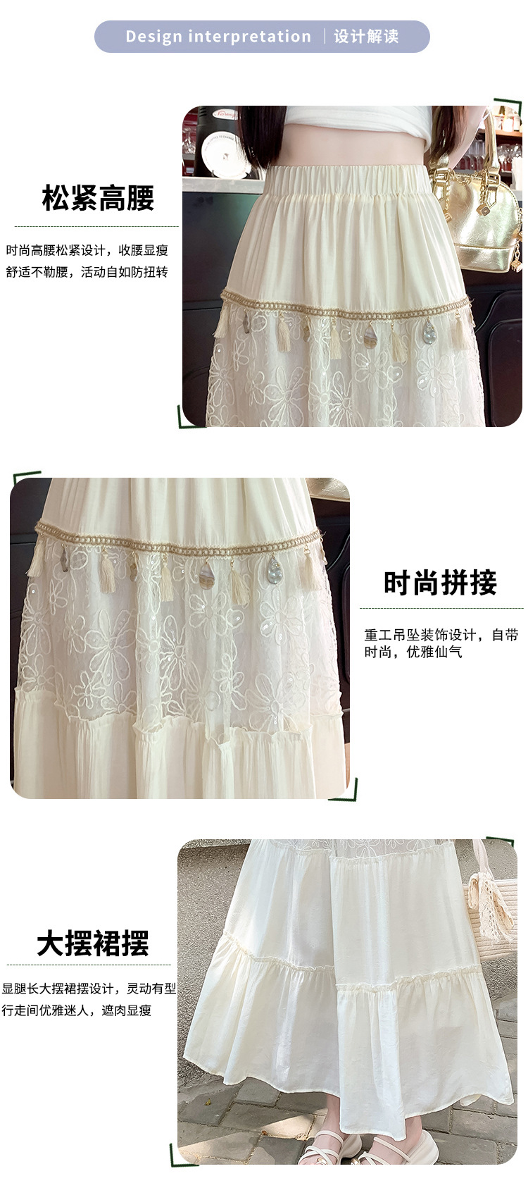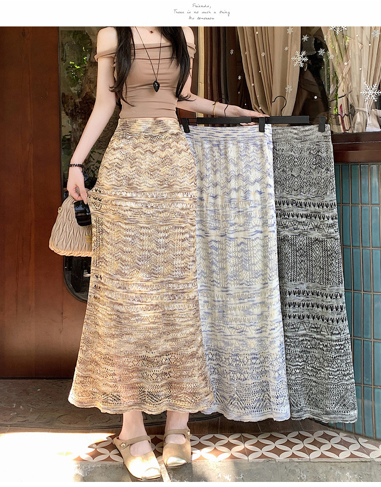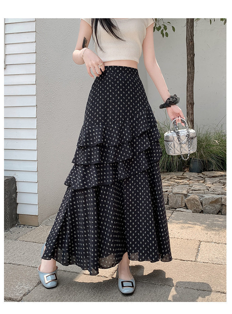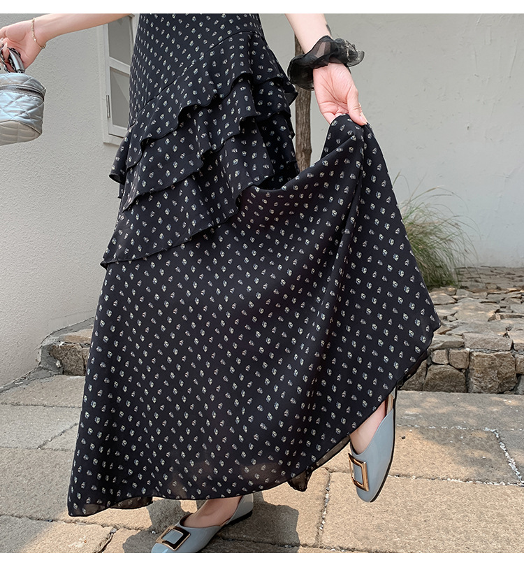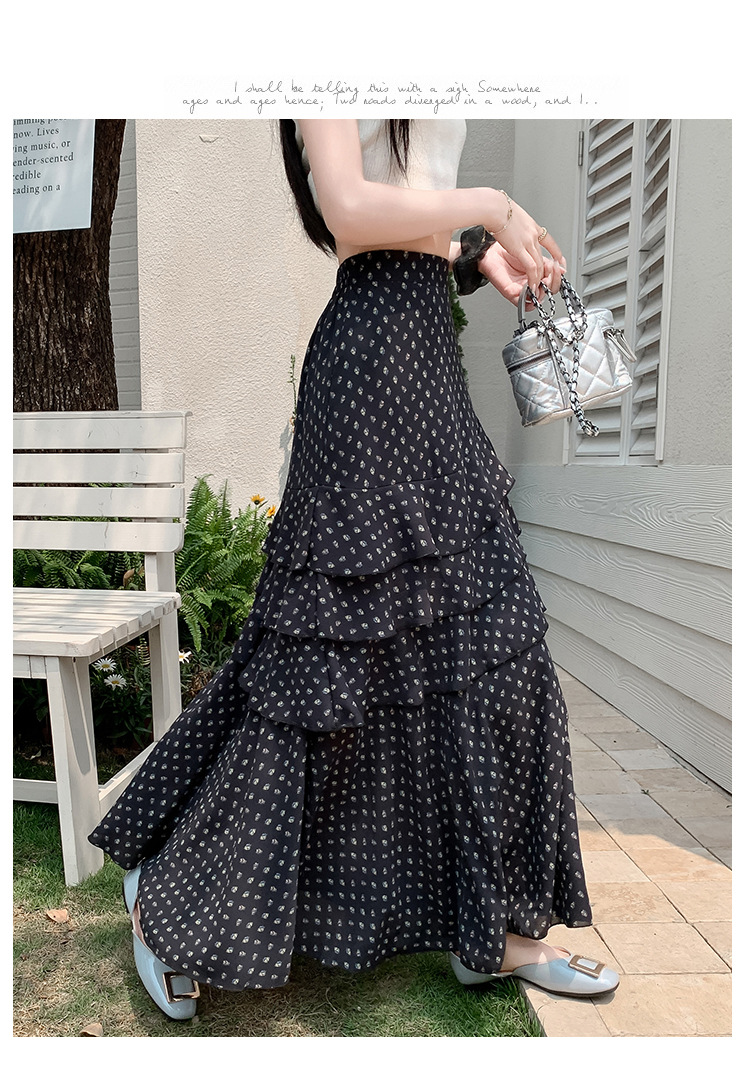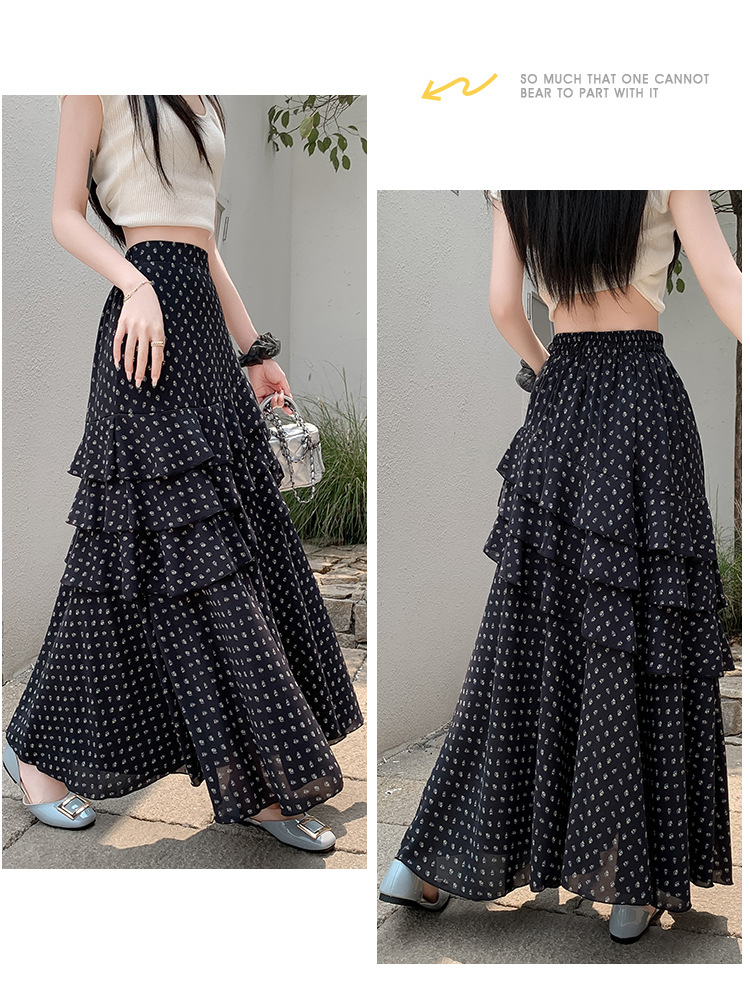 复古不规则半身裙 夏季松紧高腰显瘦休闲百搭垂坠感A字大摆半裙