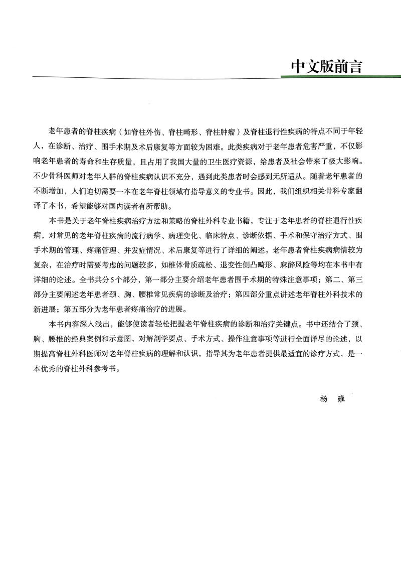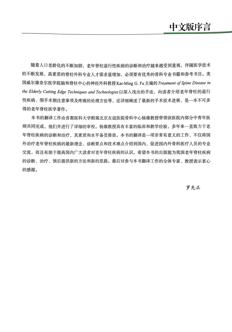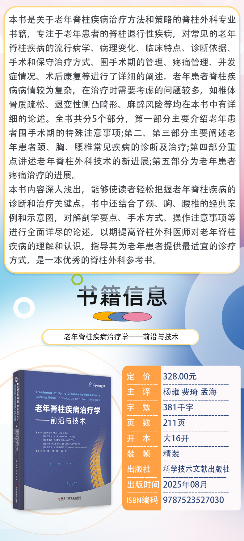 老年脊柱疾病治疗学 前沿与技术 杨雍 费琦 孟海 主译 老年患者围手术期的特殊注意事项 9787523527030 科学技术文献出版社