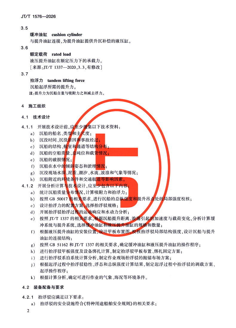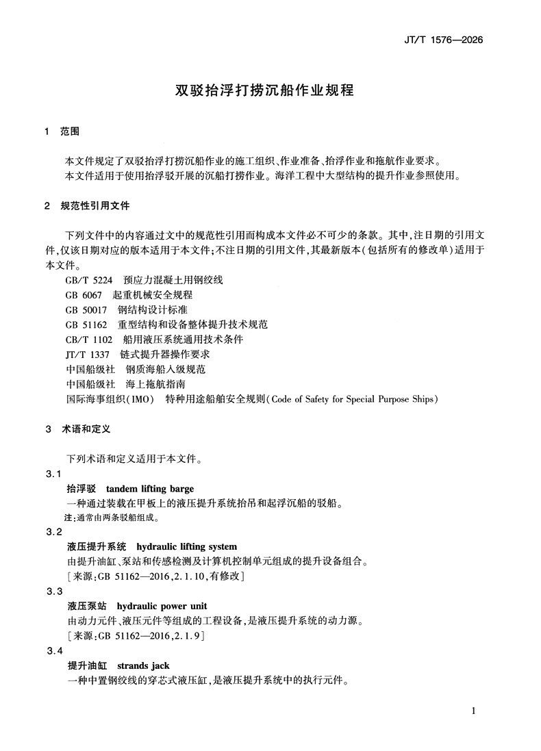 书名:双驳抬浮打捞沉船作业规程(JT/T 1576—2026)