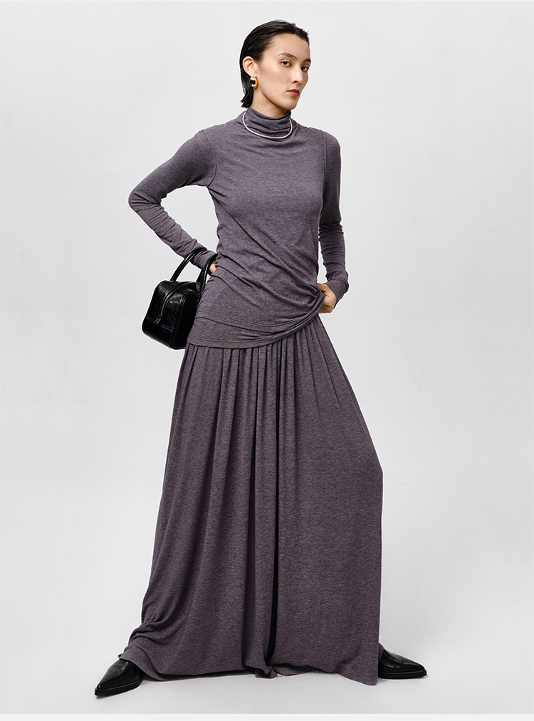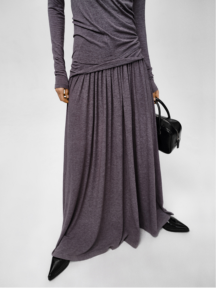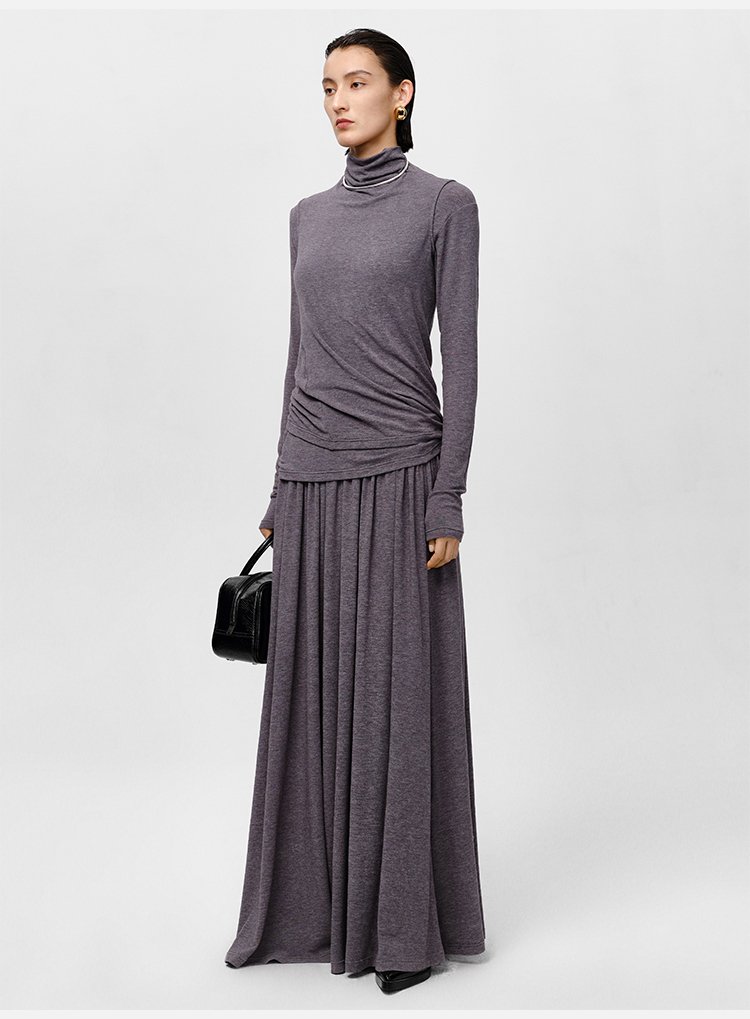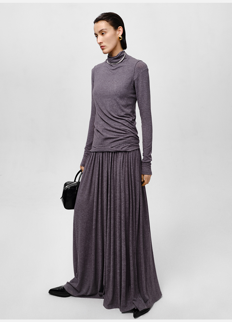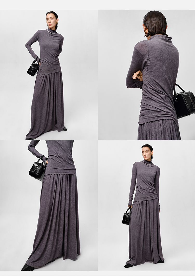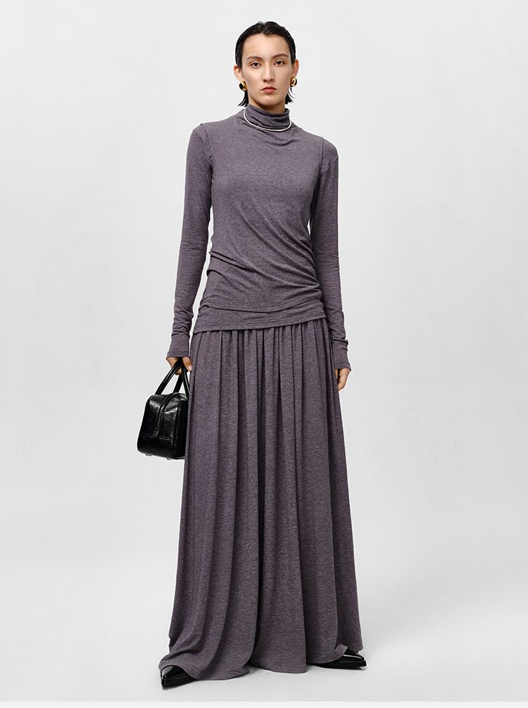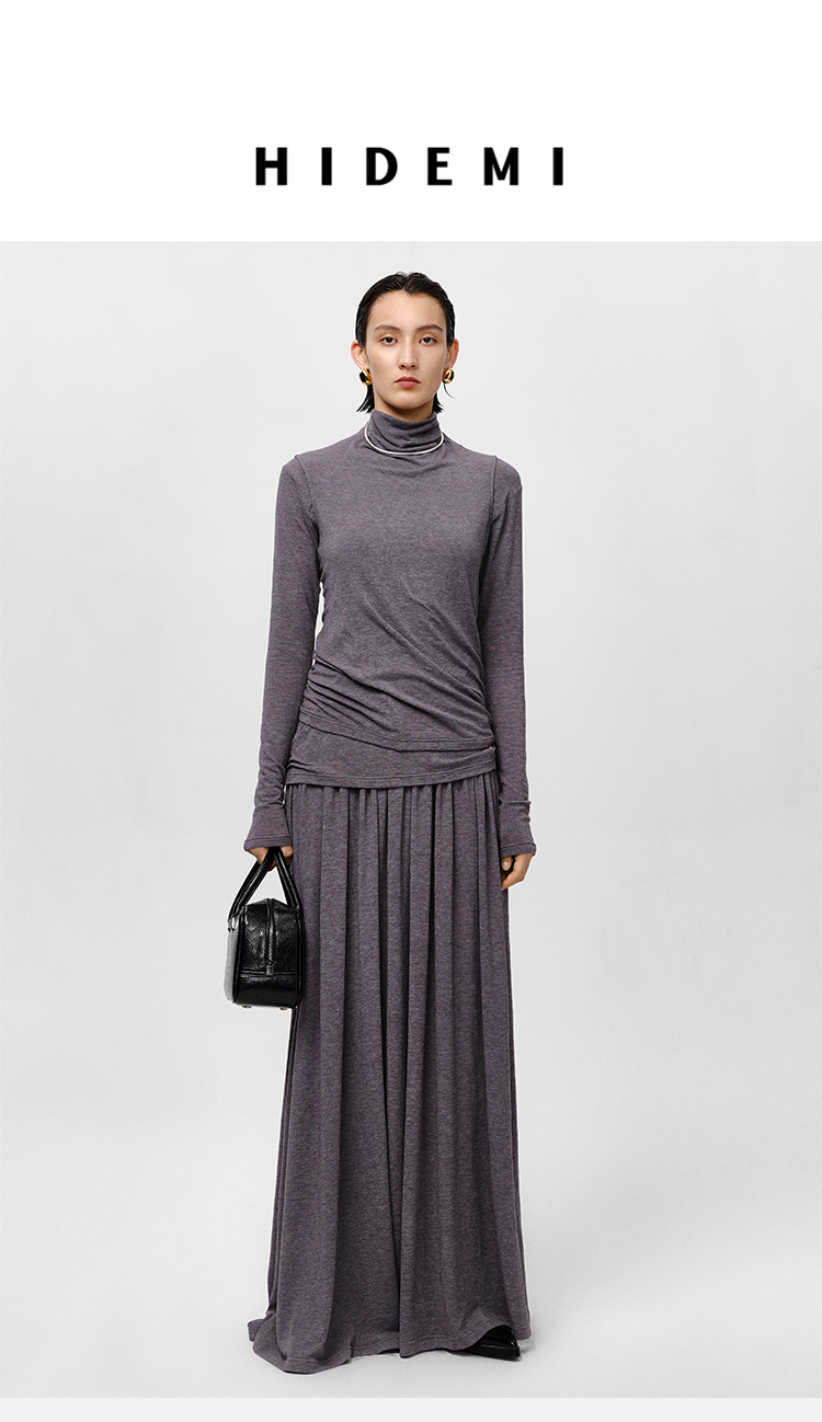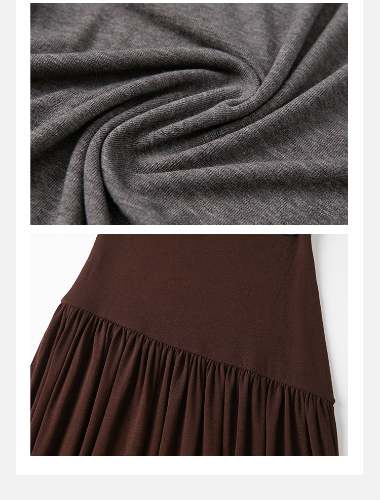 HIDEMI 【董生活同款】云朵系列亲肤柔软薄针织软糯三件套 背心/长袖上衣/百褶半身裙 灰色/巧克力色